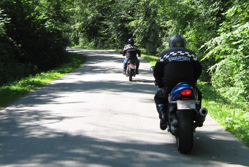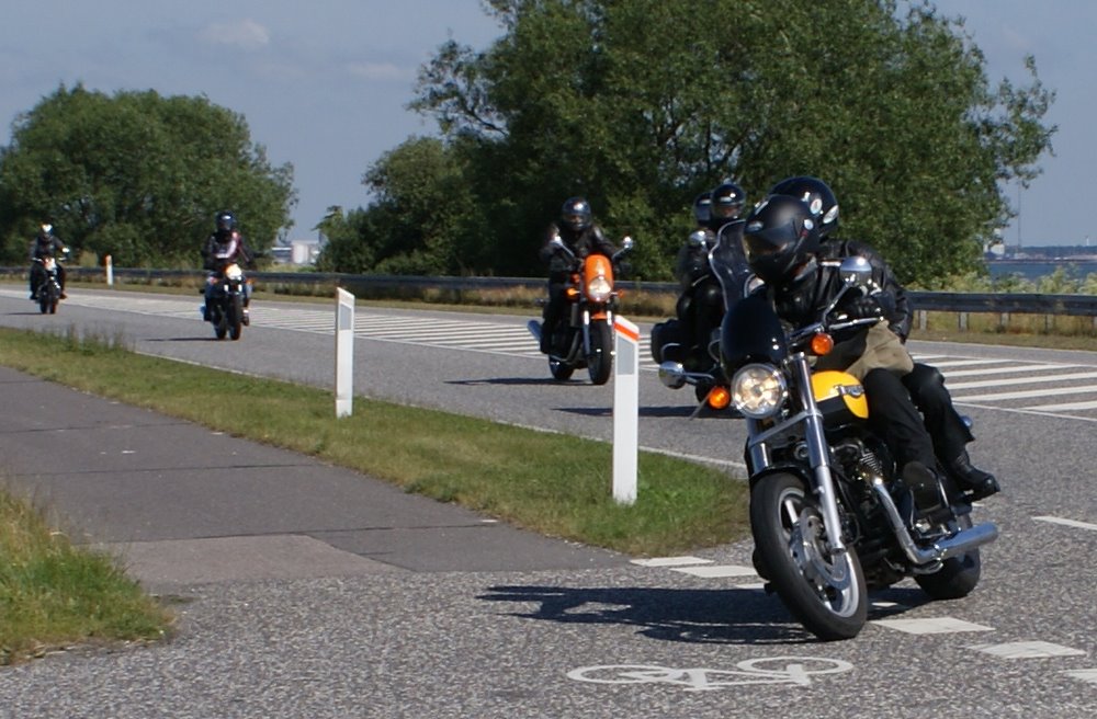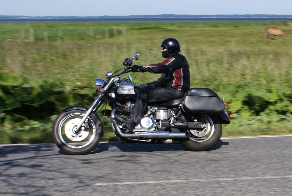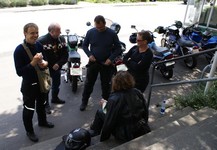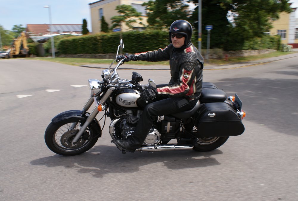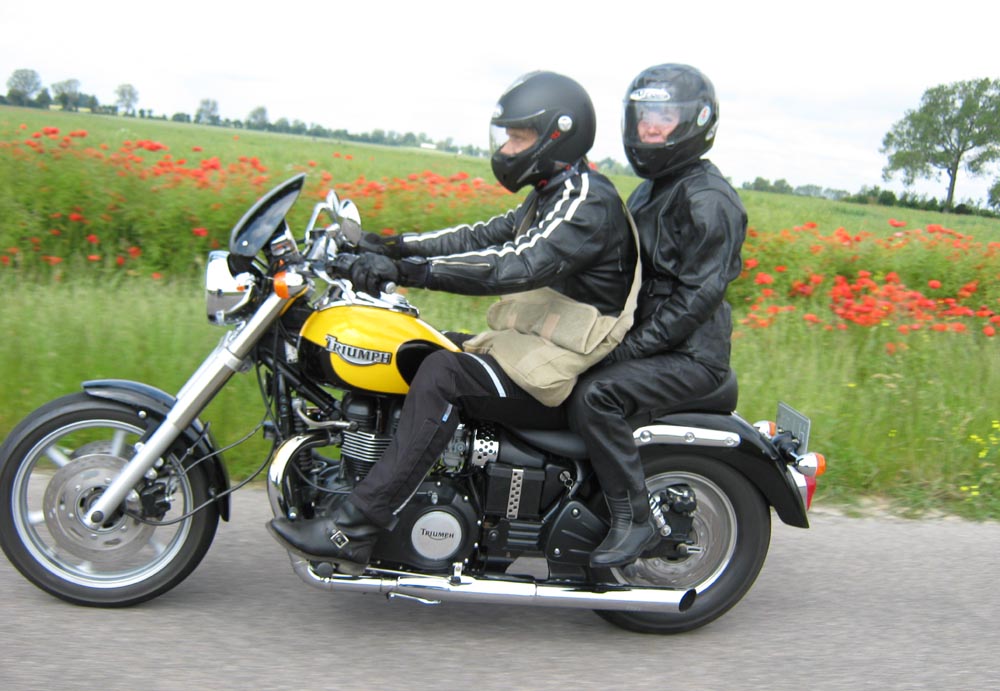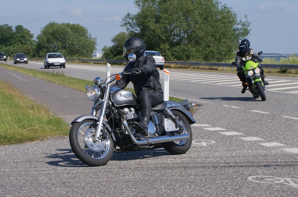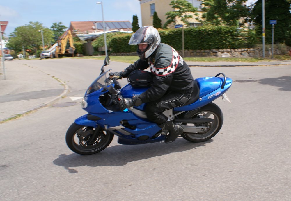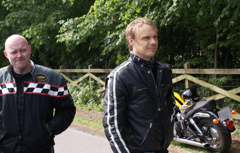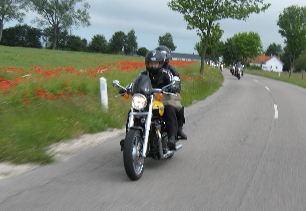 sorte Bonneville -69, Jan på den blå TT600 -02 og Martin på den sorte