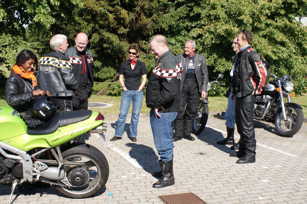 blå Thruxton til turen. Endu mere heldig var jeg at jeg fik lokket med mig