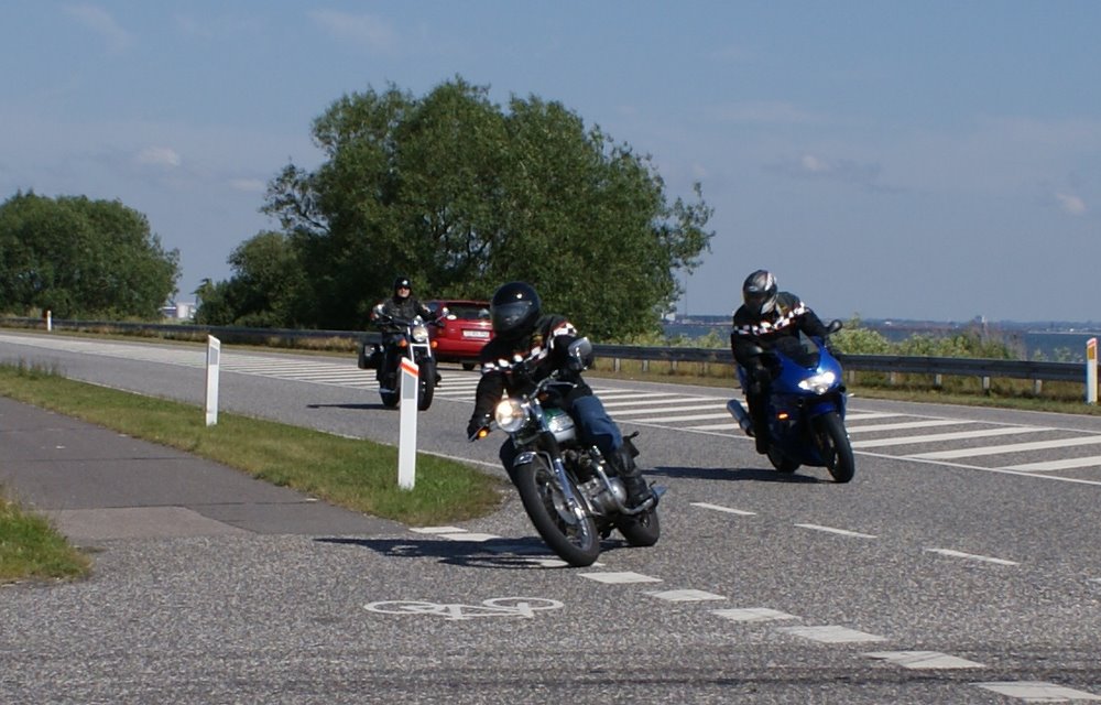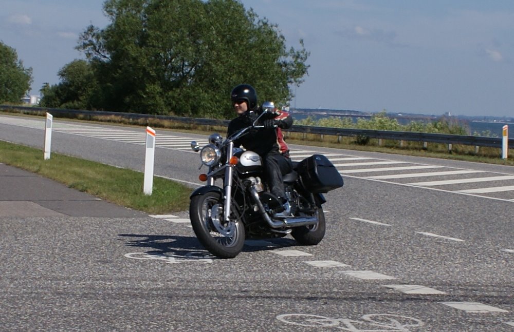 by og videre ud til motorvejen. Her tager vi nordpå over broen til Bogø og næste