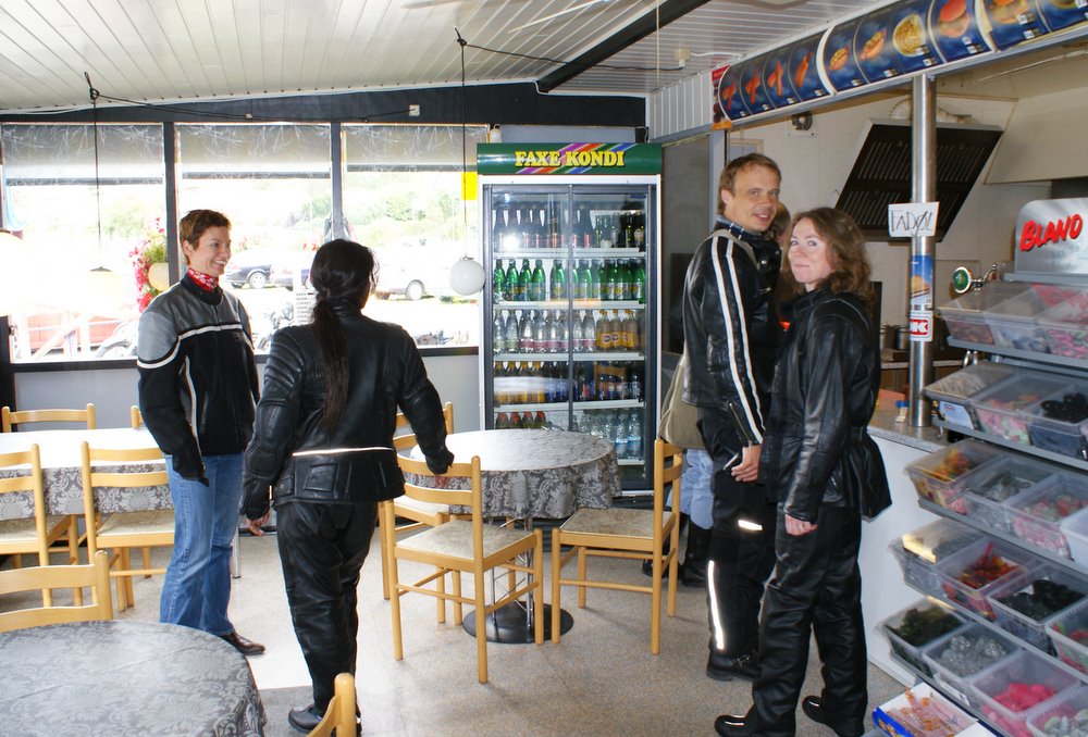 Så ved Kalvehave tog vi et bensinstop, og nogen mente der var en grill nede på