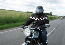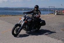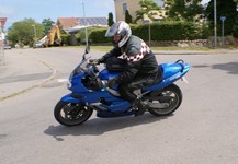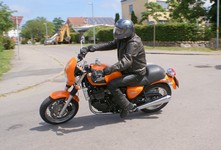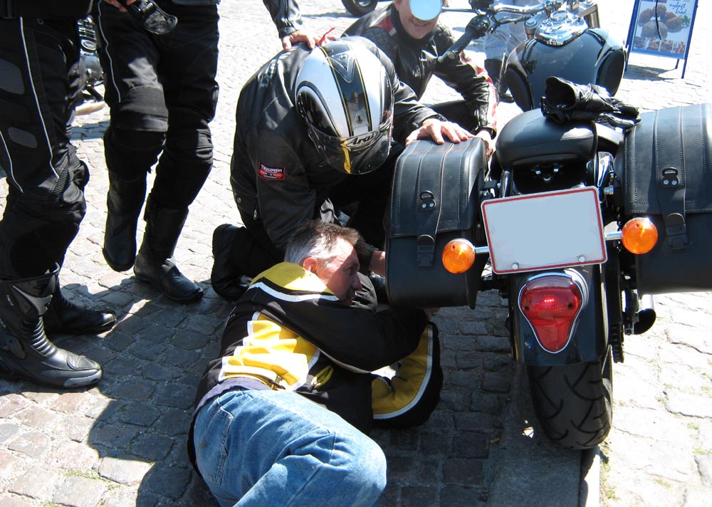 Mikael sku lige lukke jakken og satte motorcyklen ned. Desværre fik han ikke