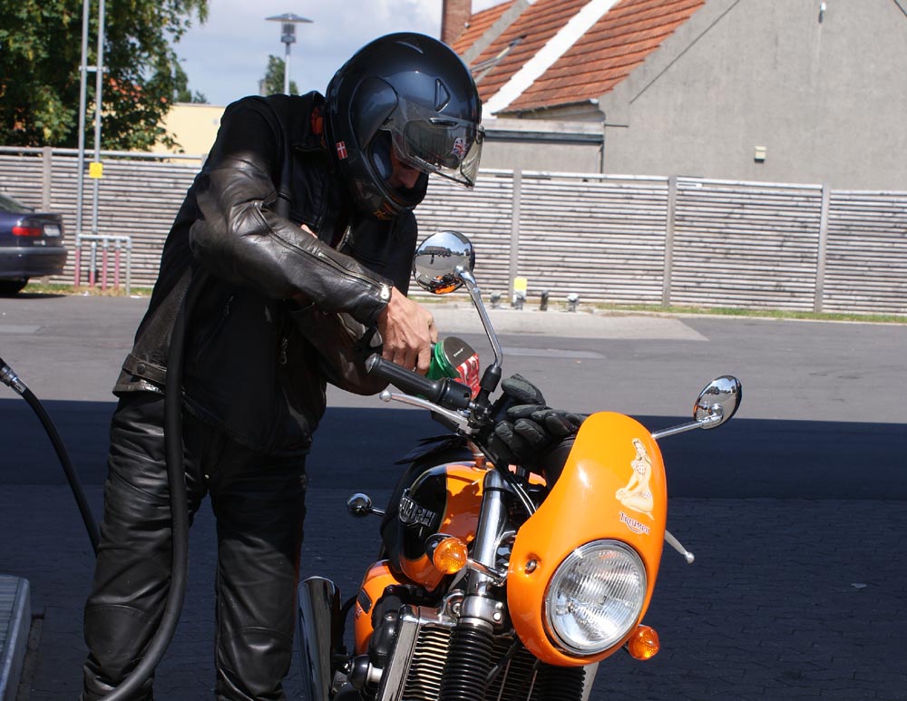 Street Triple ind på tanken med John og Josefine. Godt, to minutter til at