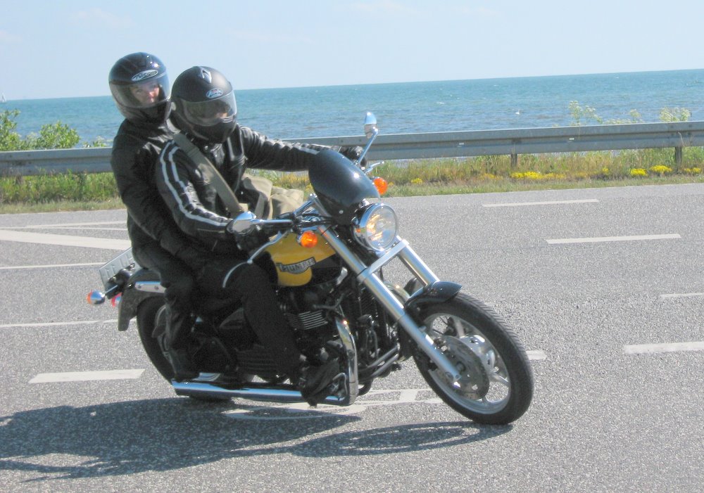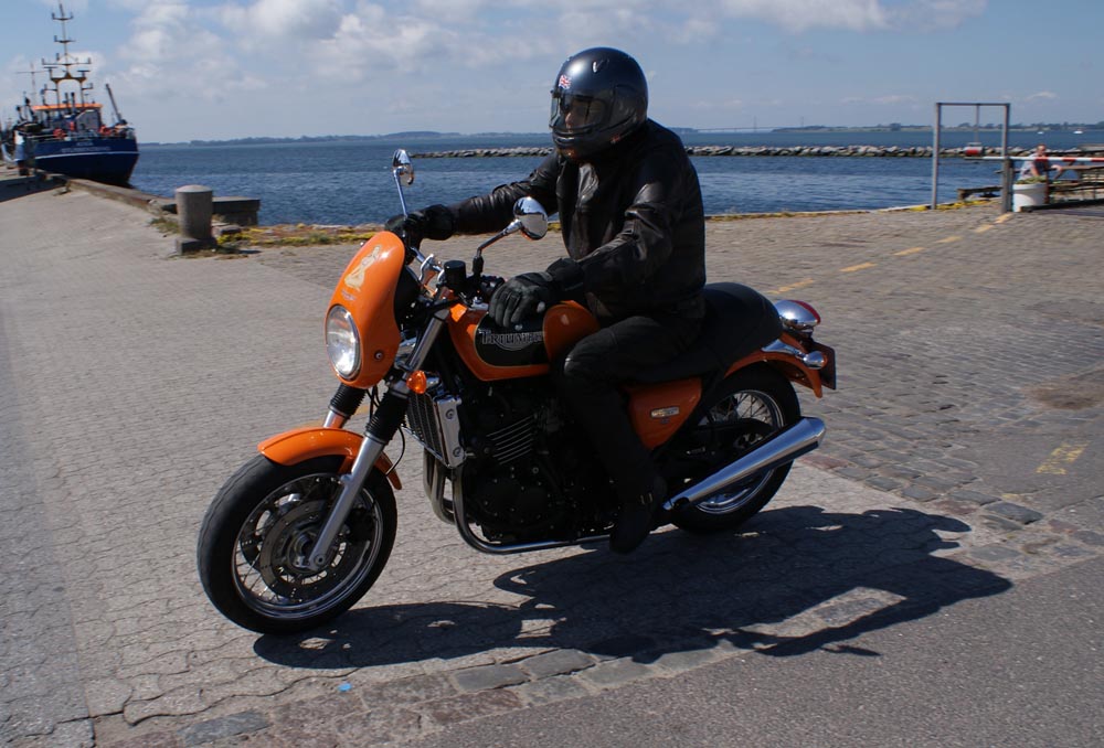 Hvem ventede på os i Køge? Der var Bjørn på den orange Thunderbird Sport -03,