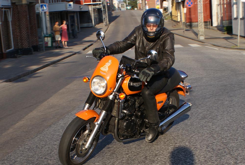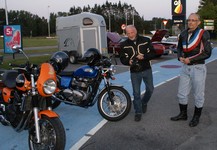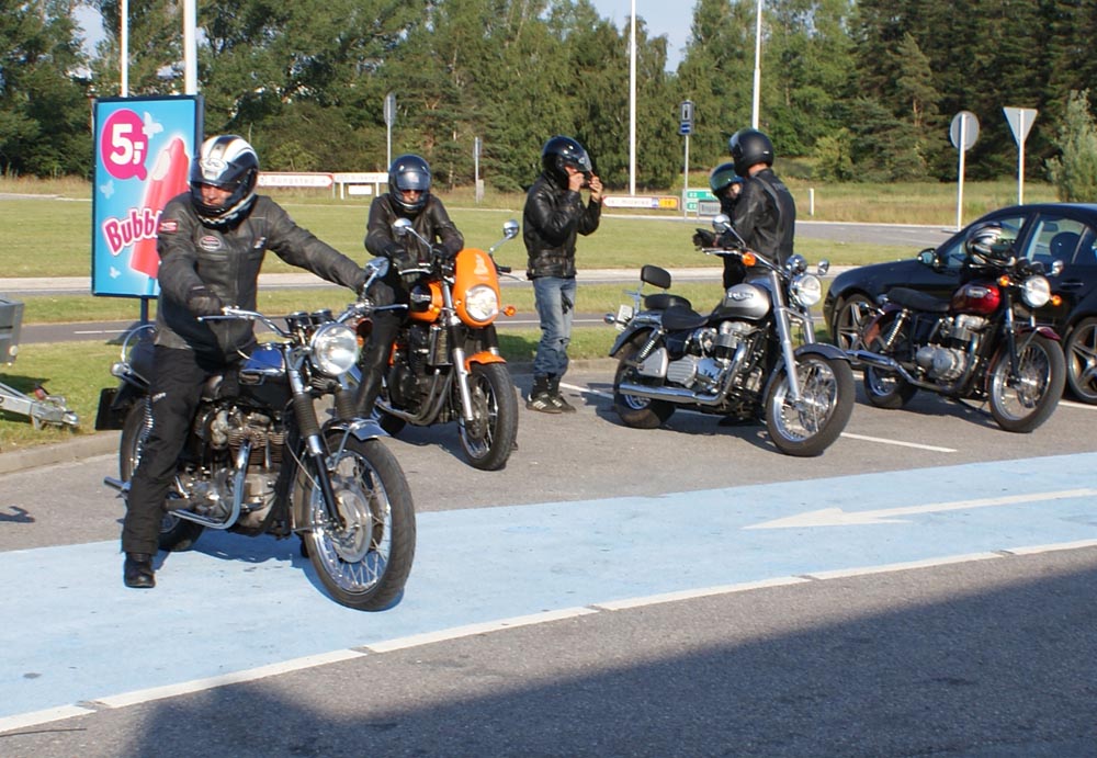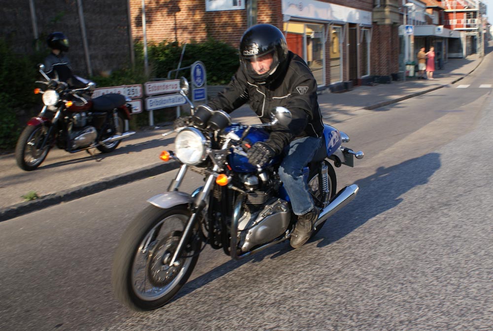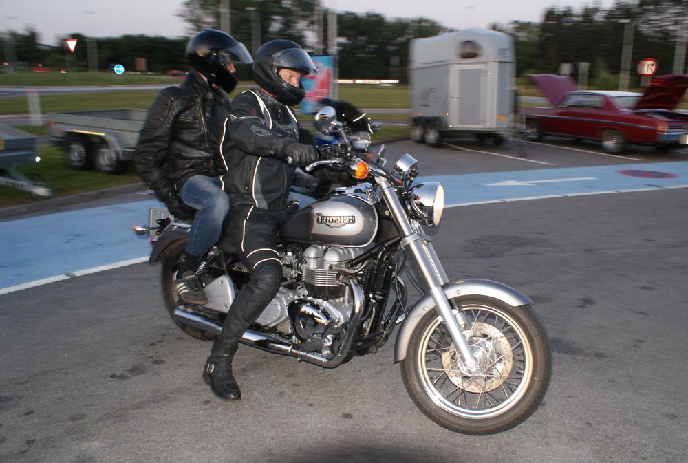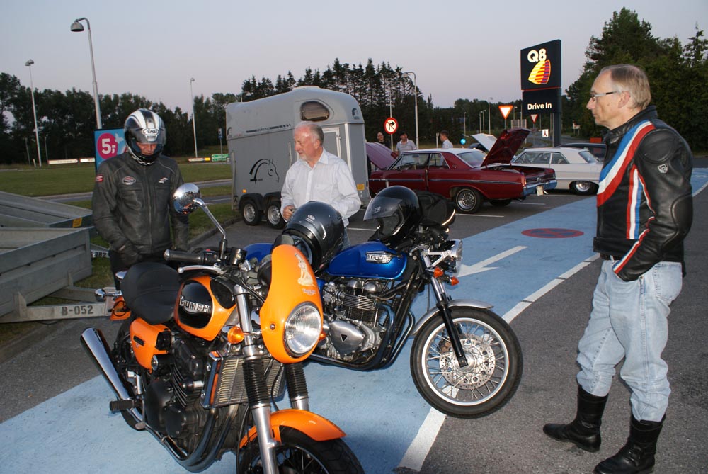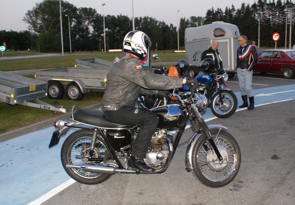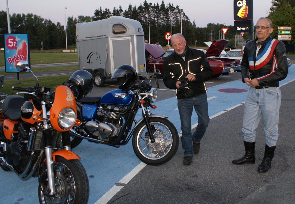 på den orange Thunderbird Sport -03, Preben på den sort/blå Bonneville -69,