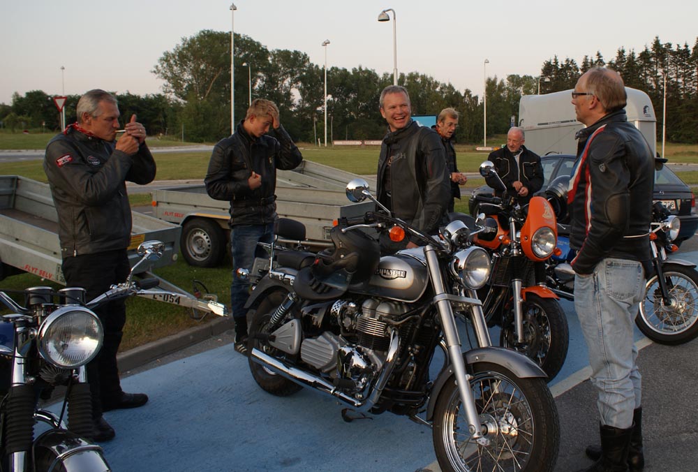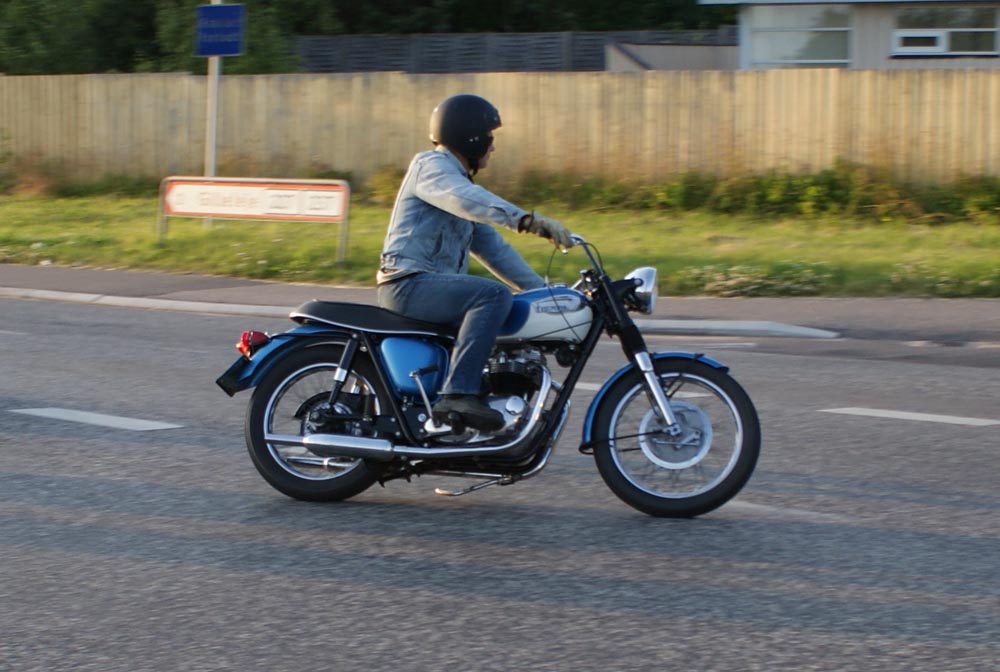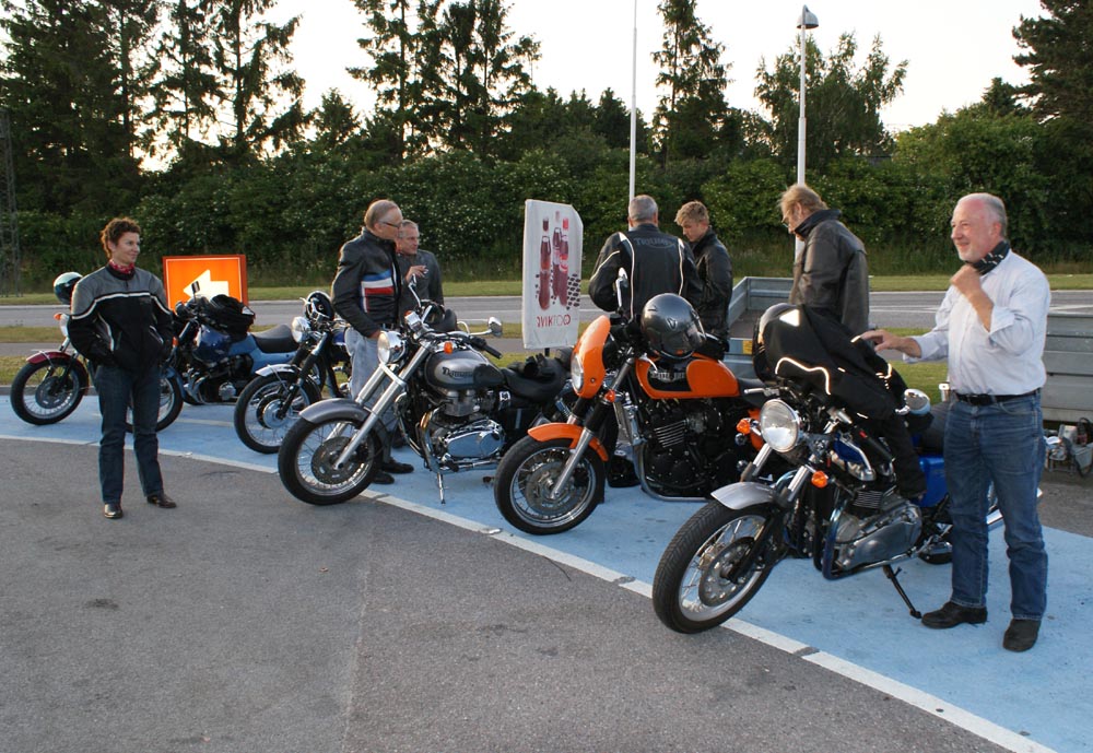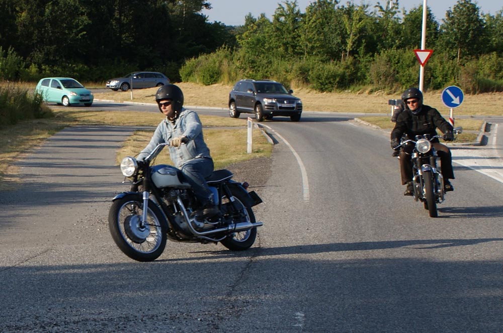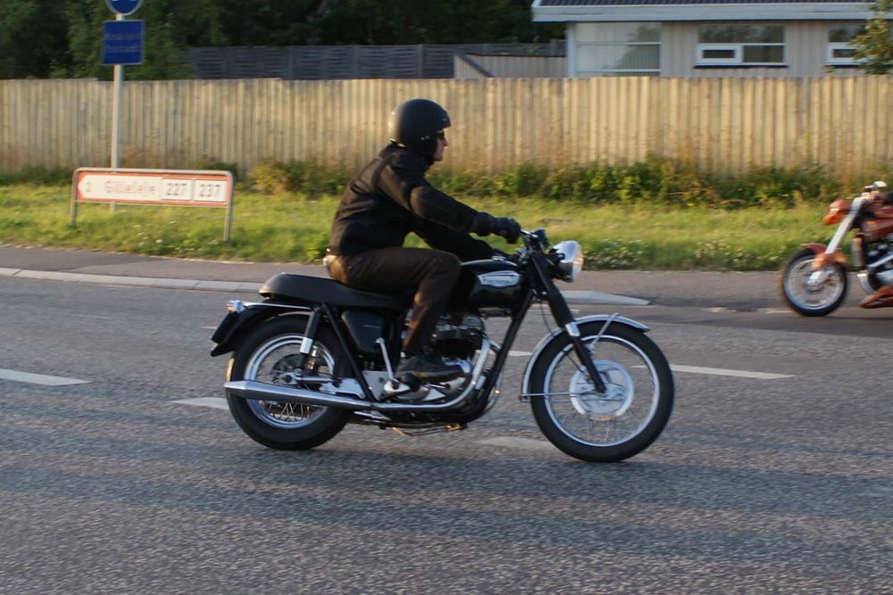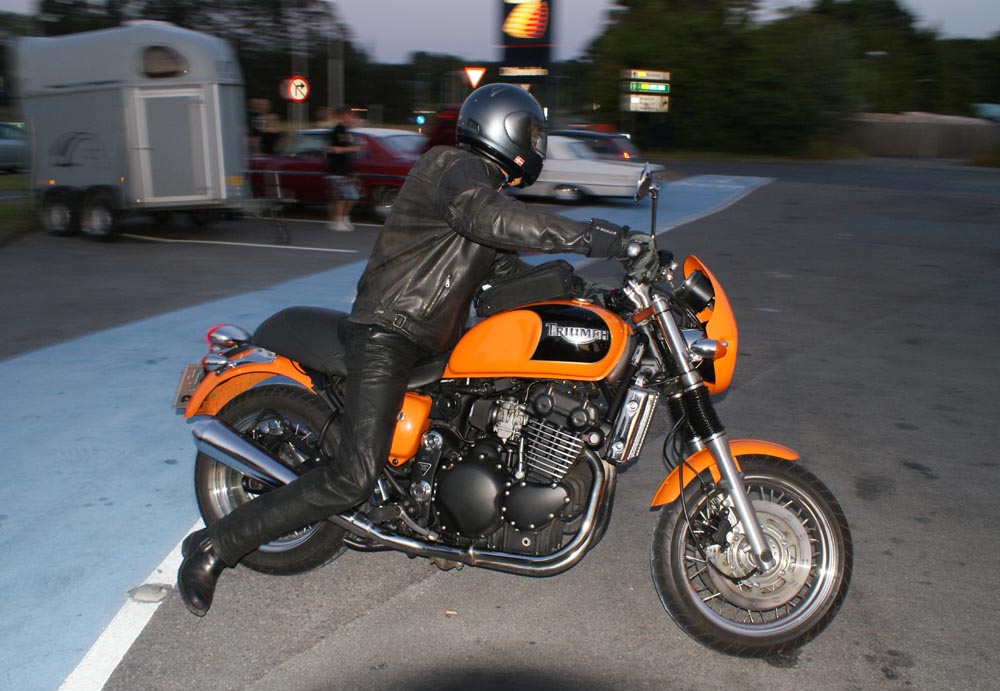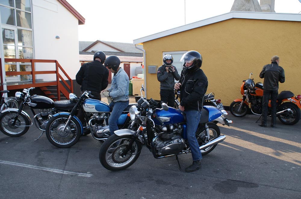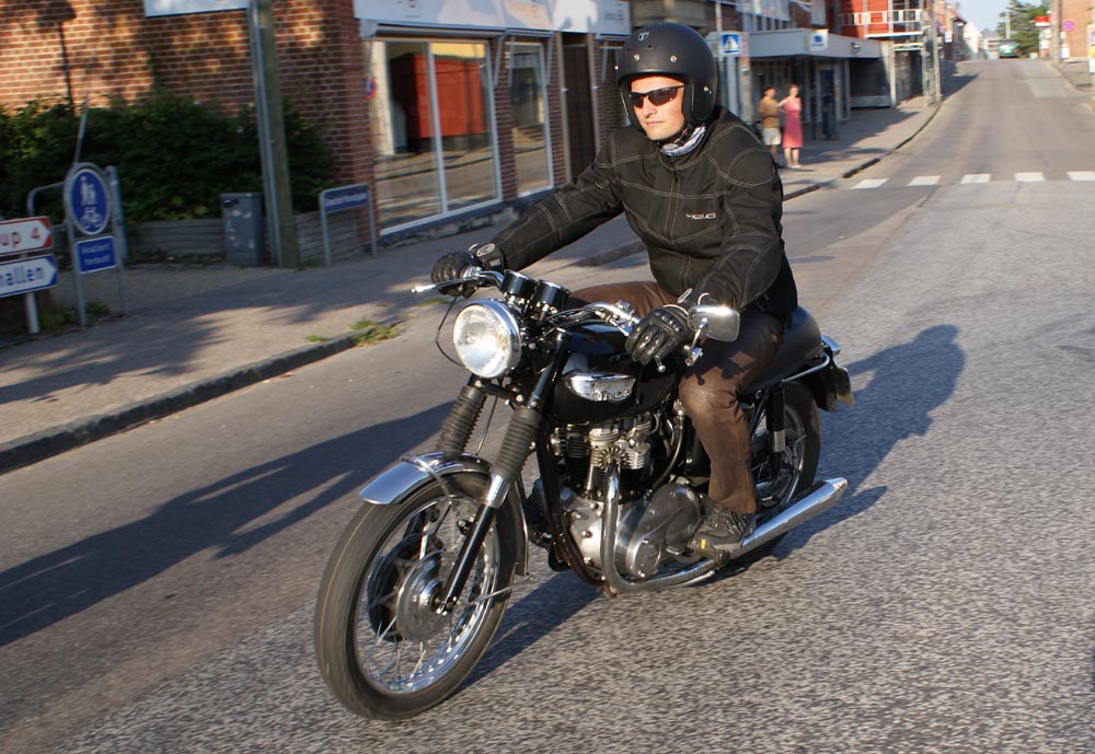 på den orange Thunderbird Sport -03, Preben på den sort/blå Bonneville -69,