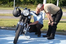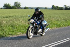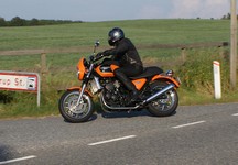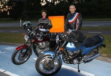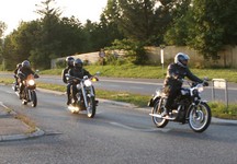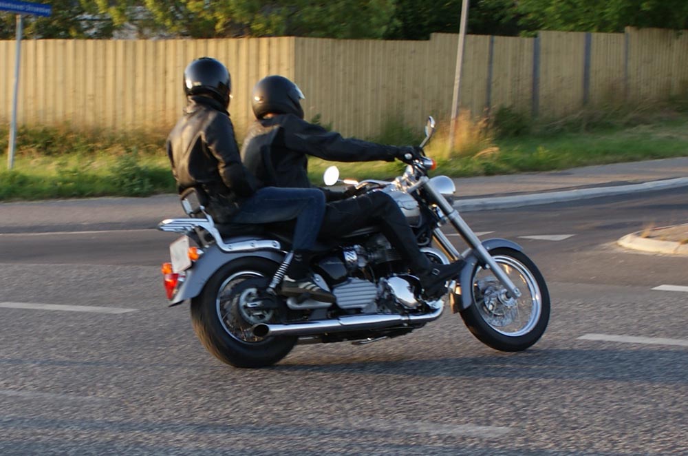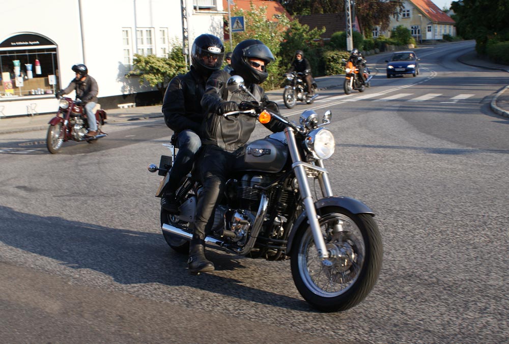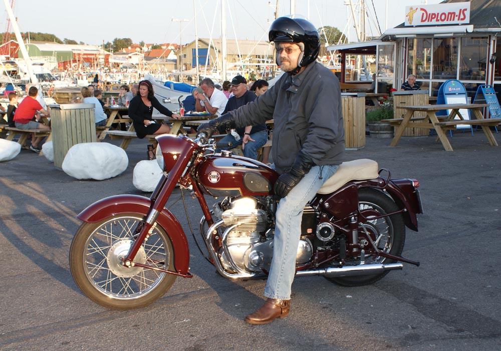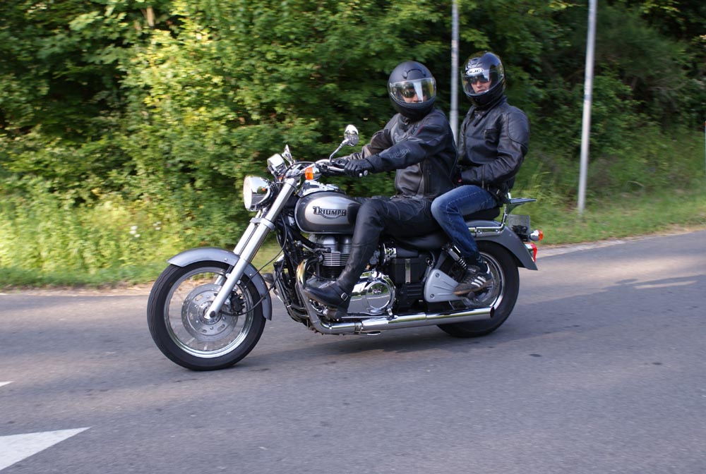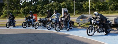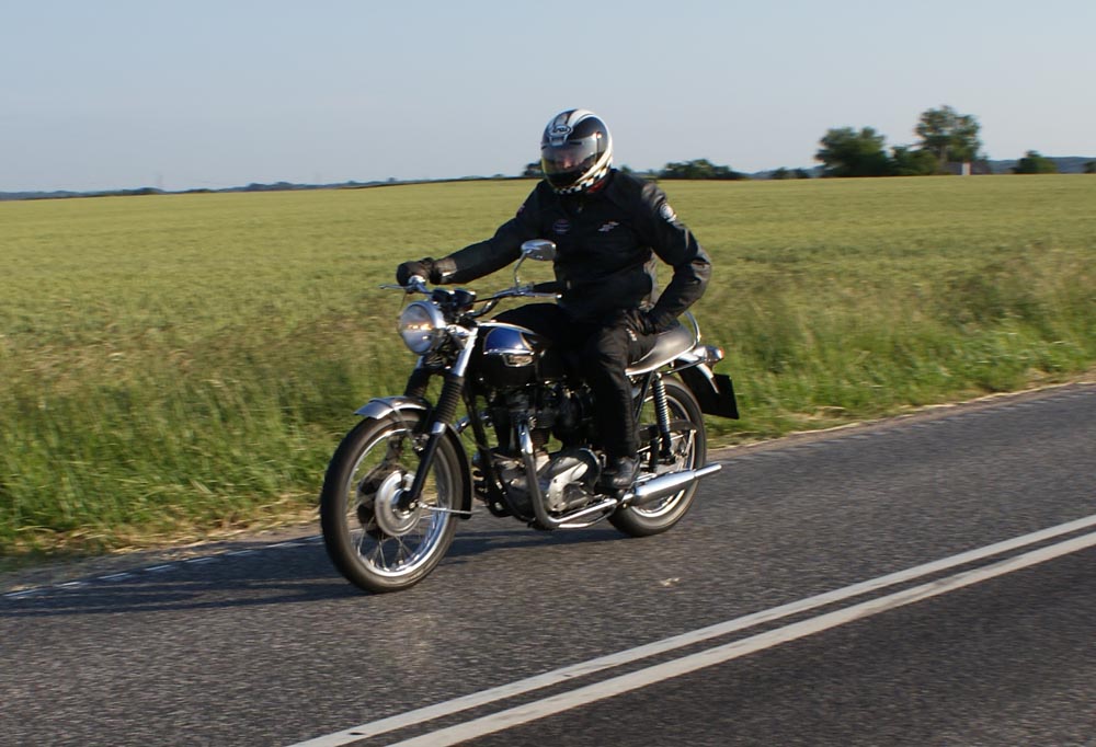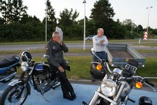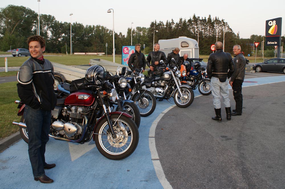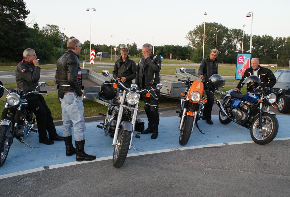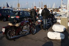 på den orange Thunderbird Sport -03, Preben på den sort/blå Bonneville -69,