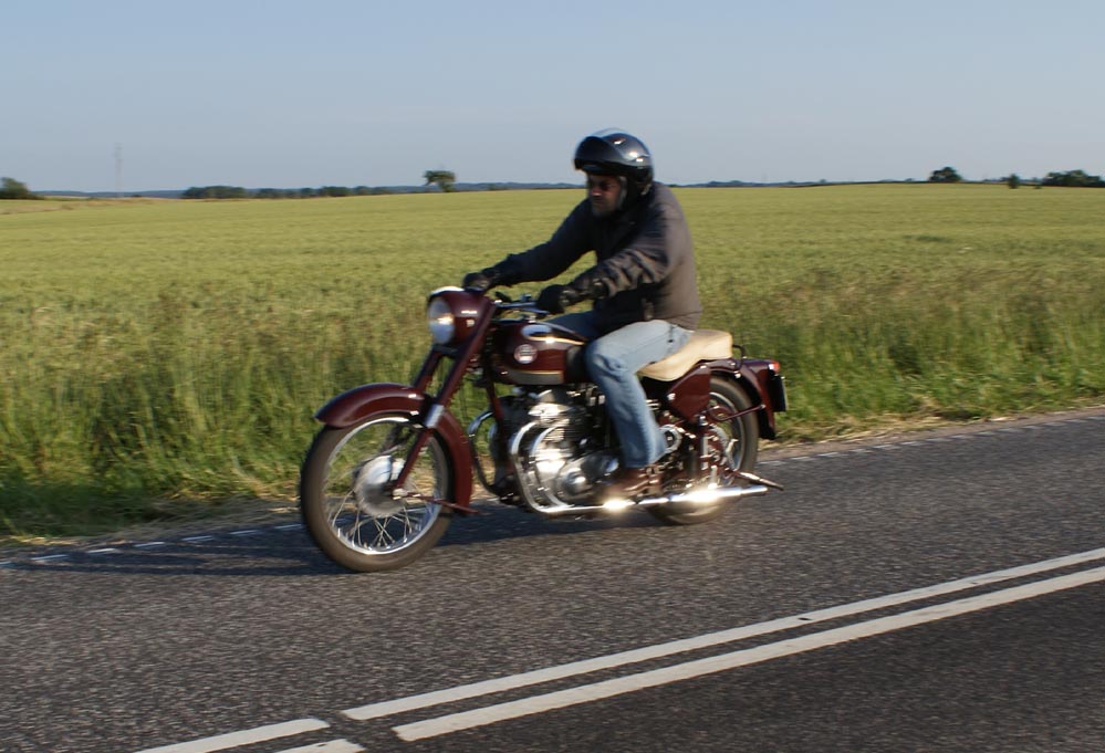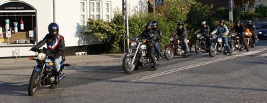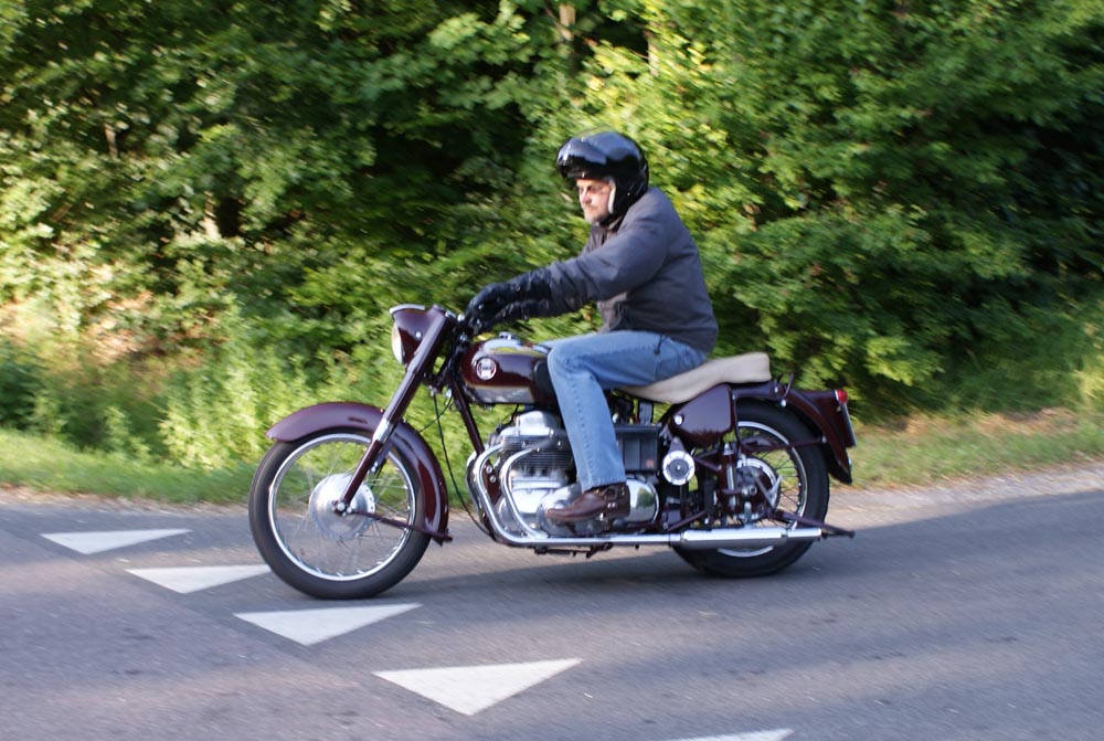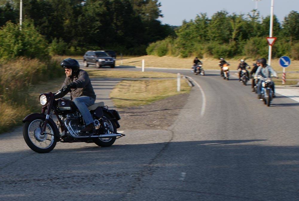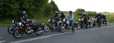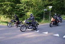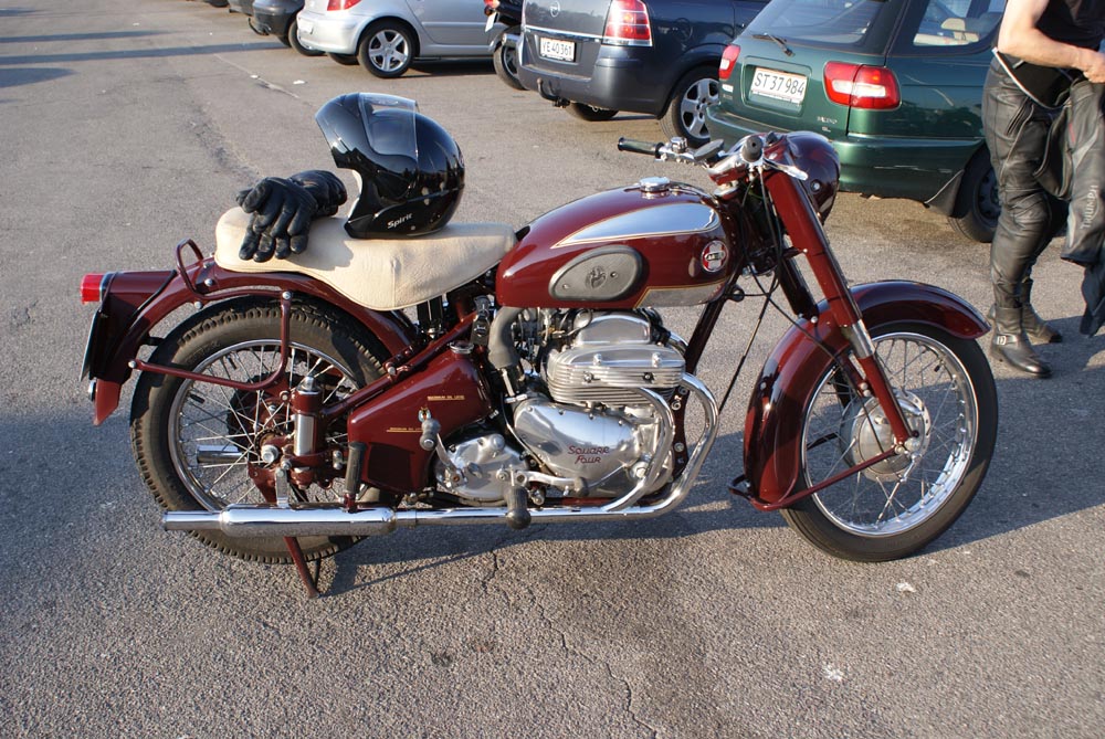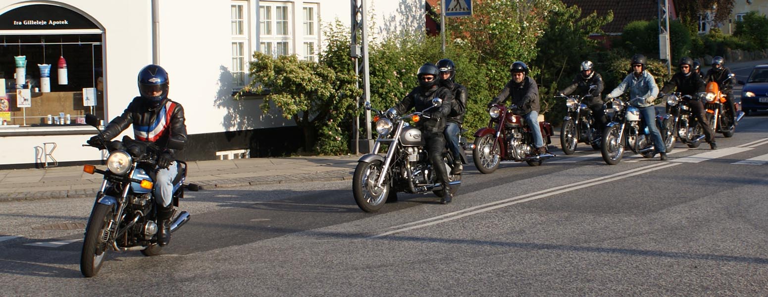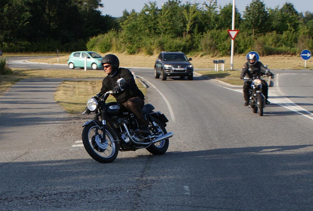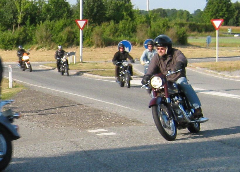 Henrik på en Ariel Square Four 1000cc fra -59, og en anden Henrik på en blå TR6 -66,