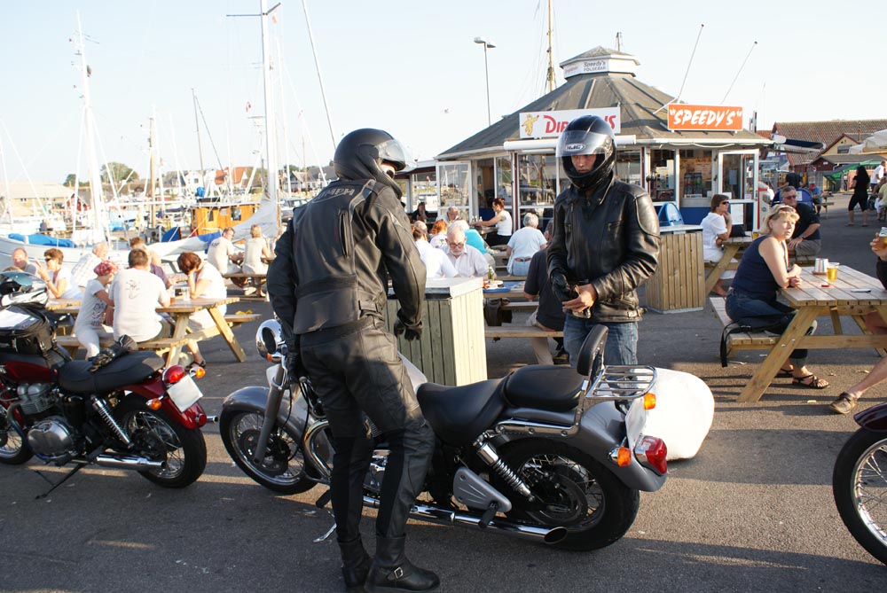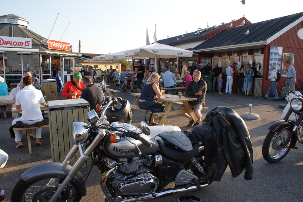 på havnen lige ved både og grillbarer. Det er ju lidt nemmere med MC
