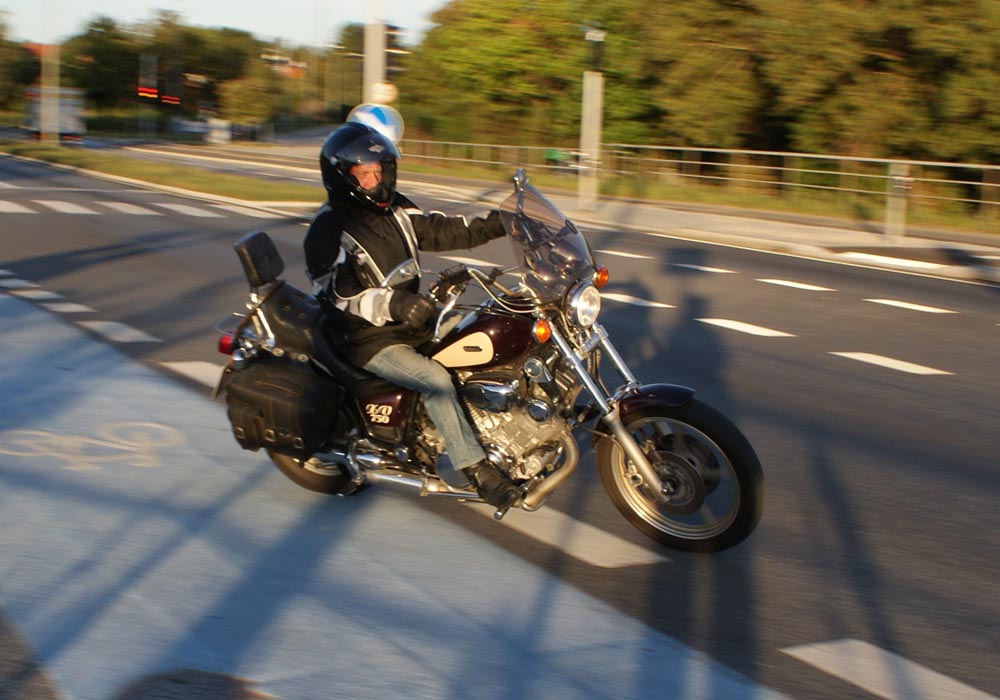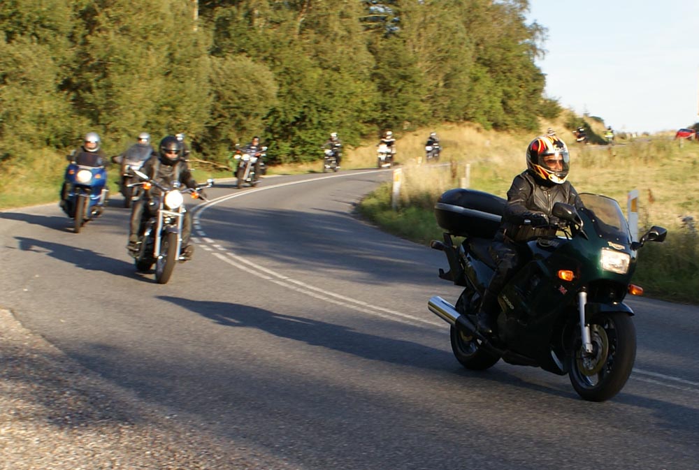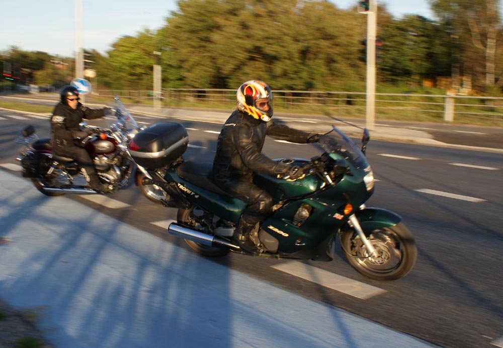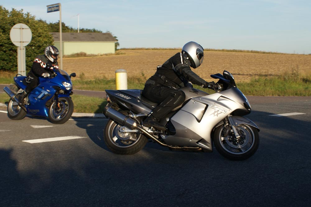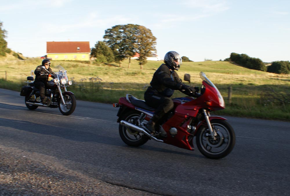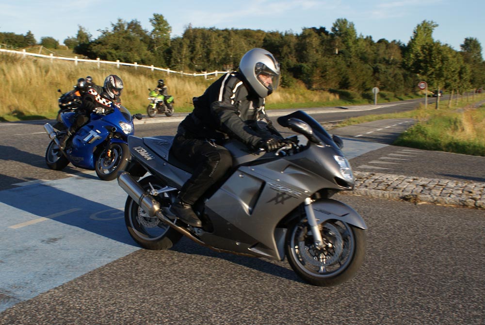Flemming på en Kawa ZZR1400 -08, Poul på en Virago 750 -94, Torbjørn