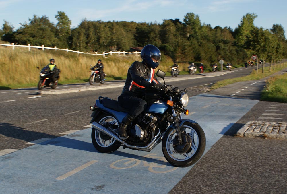 Speed Triple -98, Søren på den blå CBX 550 -86, Peter på en sølv America -06,