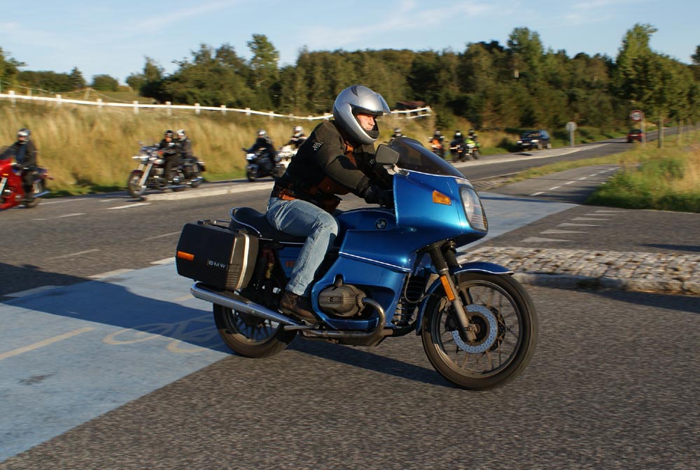 (3-cylinder 885 cc), Tore på en blå BMW R80 -82, Charlotte på en sort
