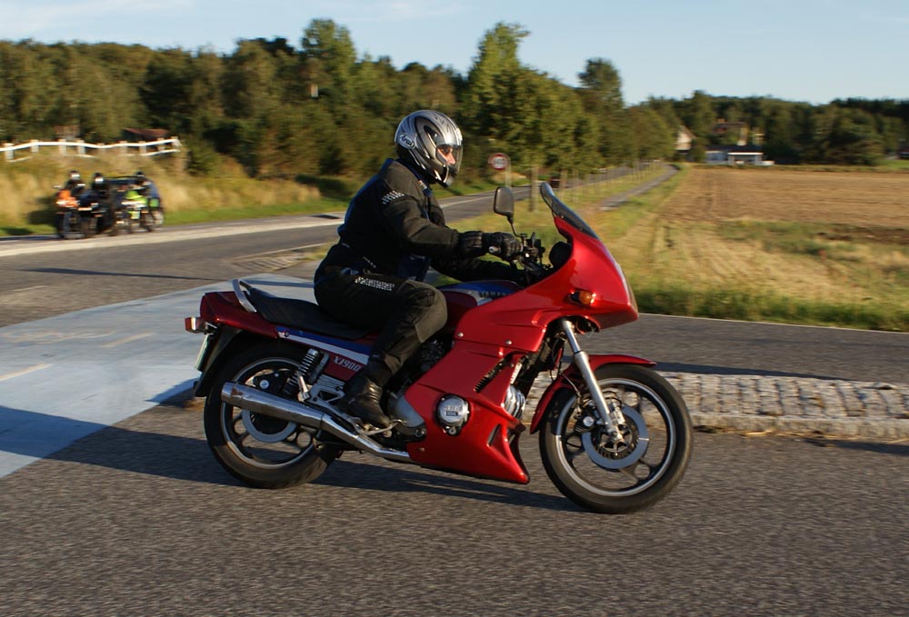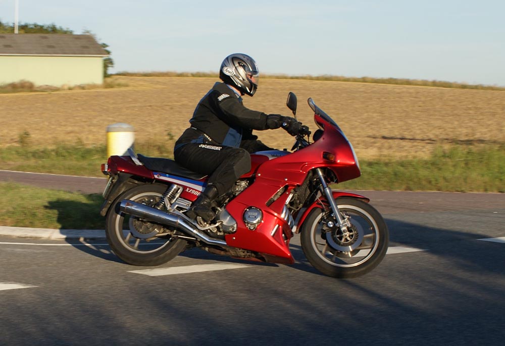 rød Yamaha XJ900 -83 (James Bond motorcyklen), André påe en hvid