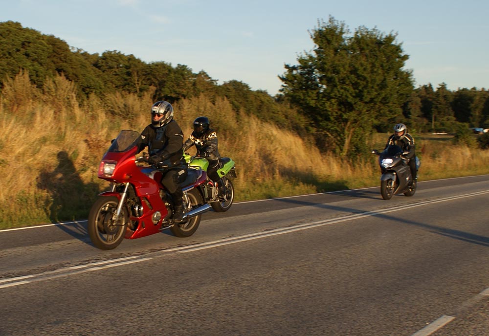 på en sølv Blackbird -06, Jan på en blå TT600 -02, Carsten på en