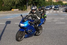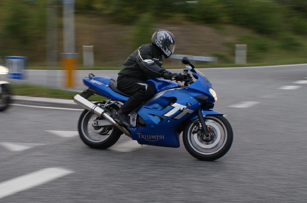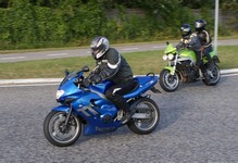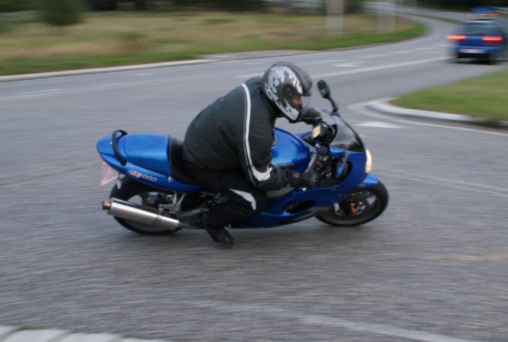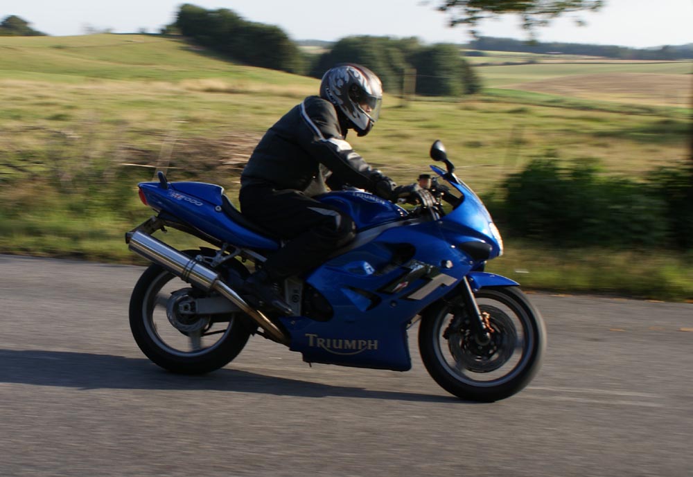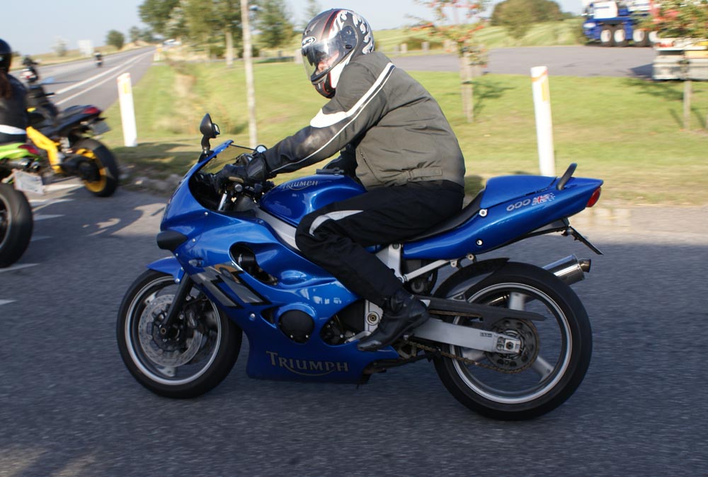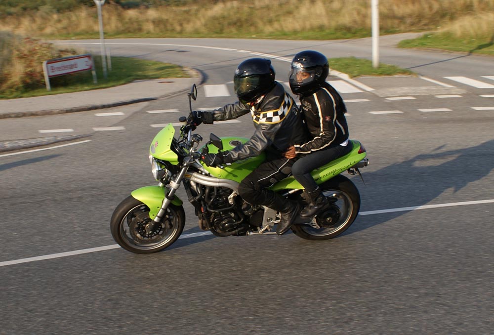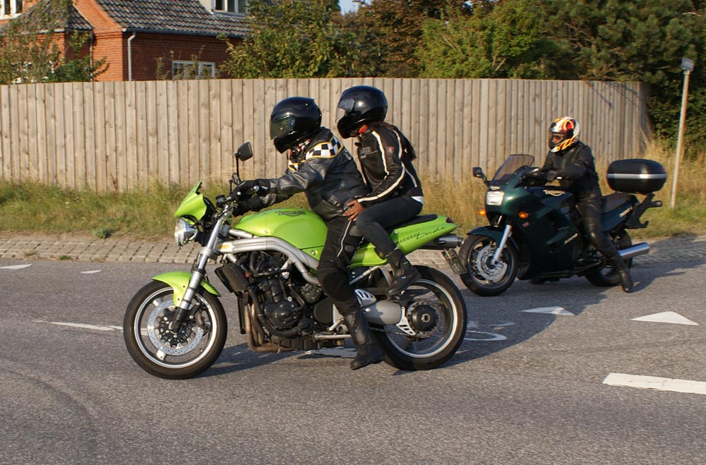 den hvide Street Triple, Jan på den blå TT600, Charlotte på den sorte