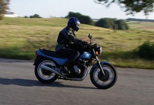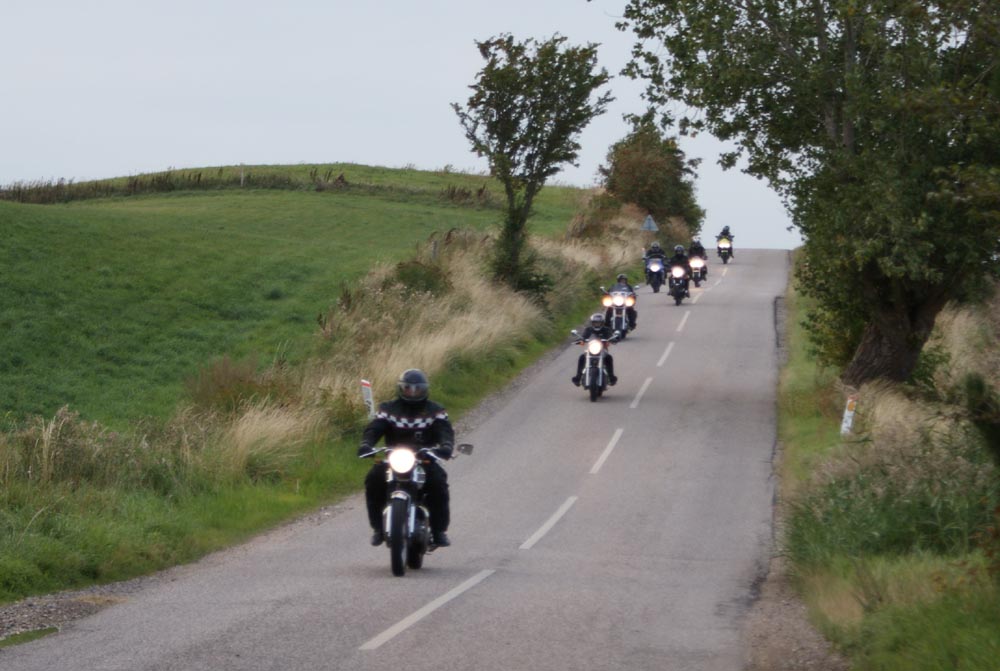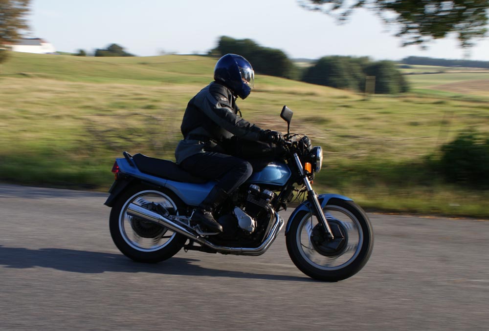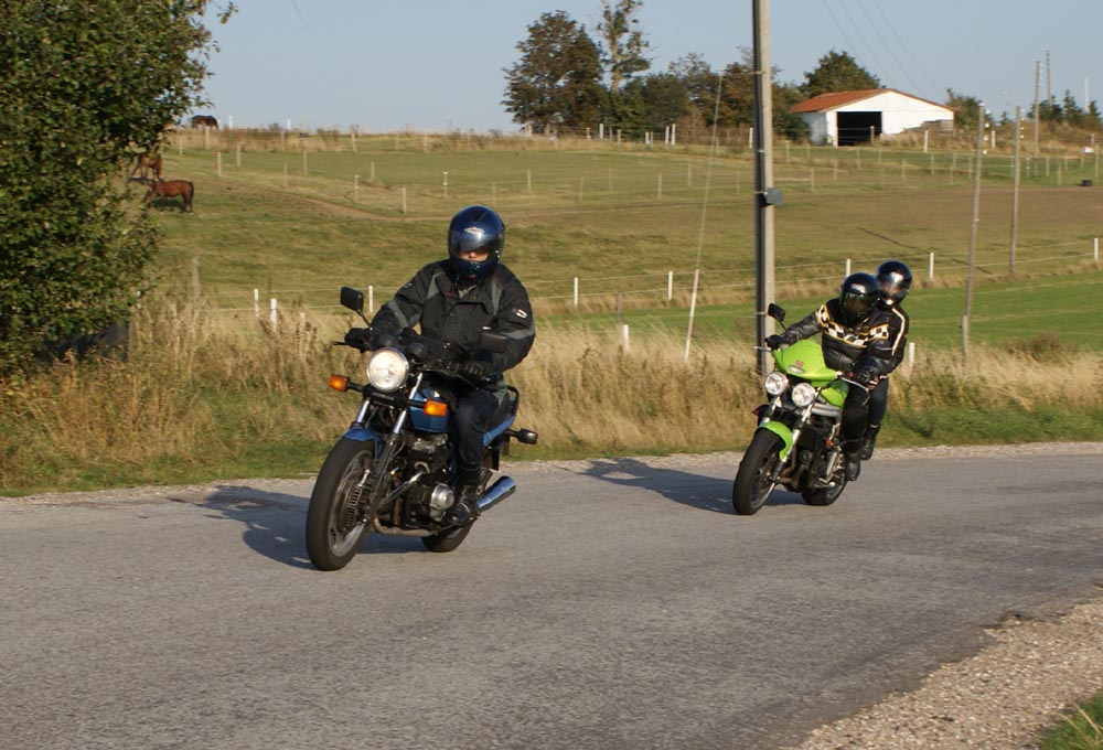 på den grønne Tiger 100s -65, Søren på den blå Honda CBX 550, Klaus på