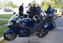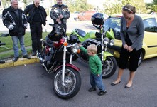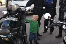 store øjne og stort smil og kikkede og pillede på de flotte motorcykler.