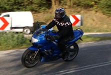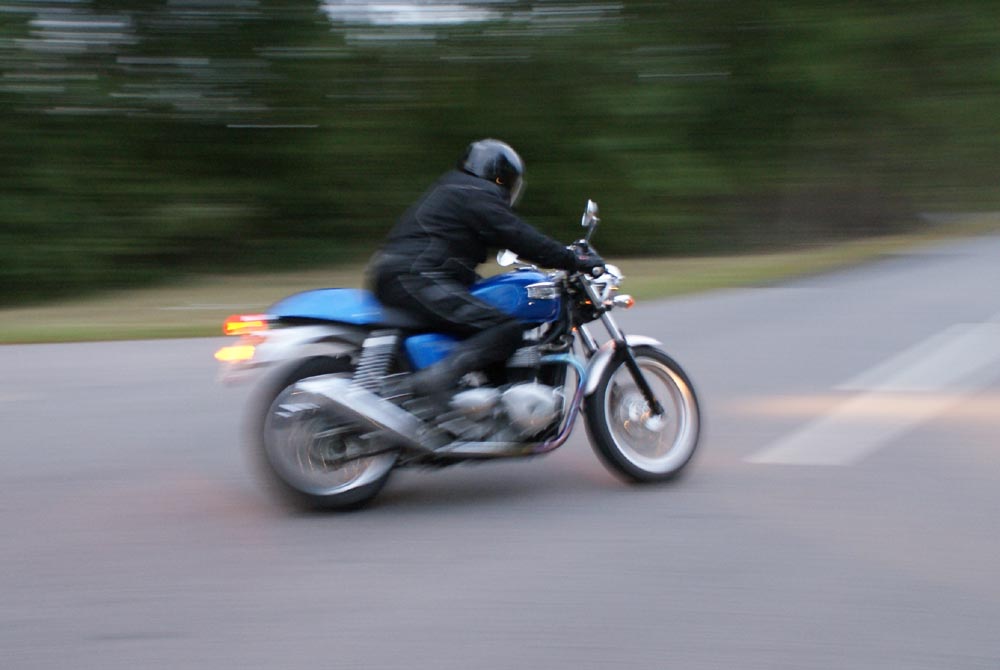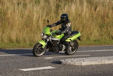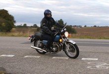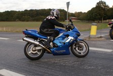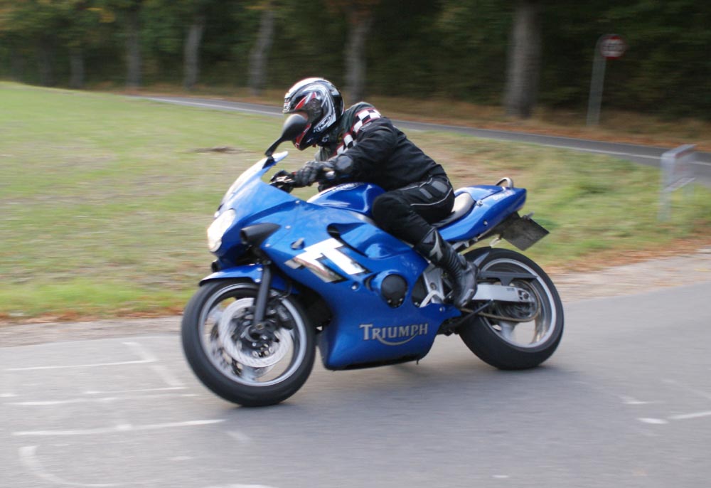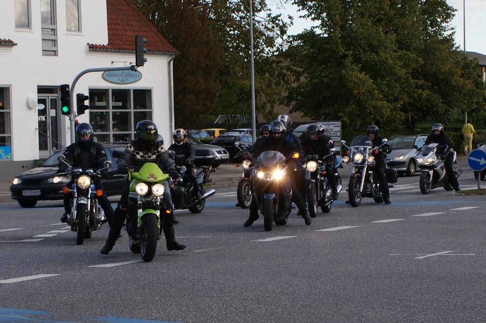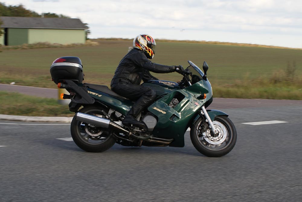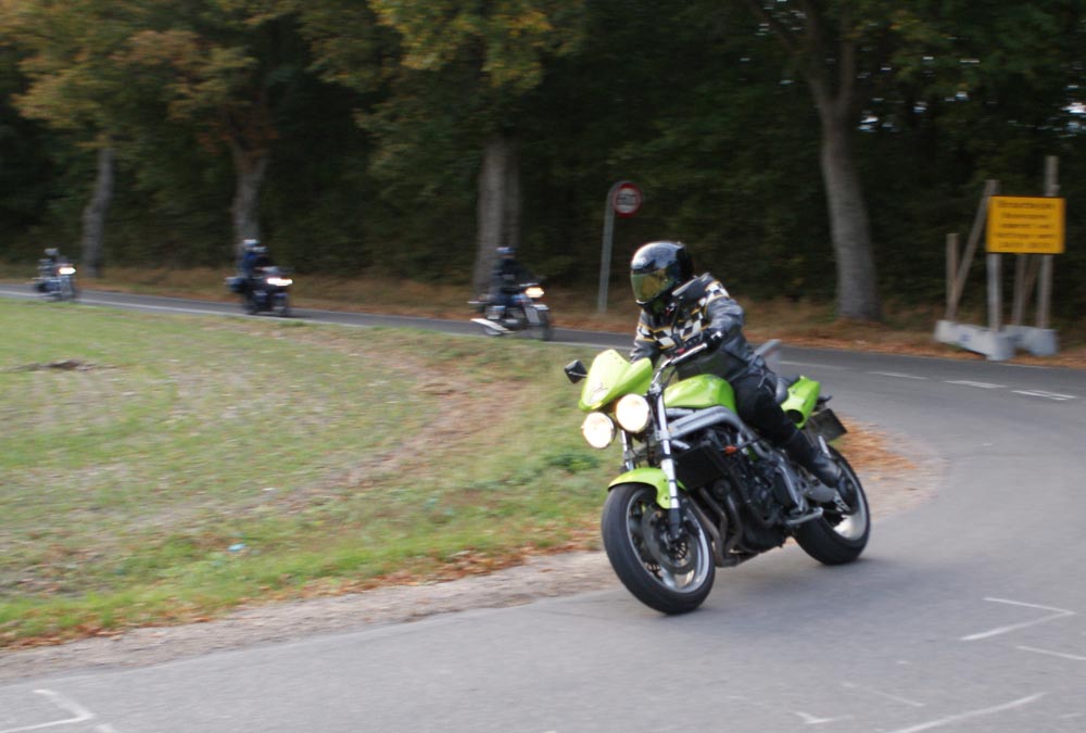 Speed Triple -01. I sidste sekund kommer Søren på en blå CB500 -77, ikke