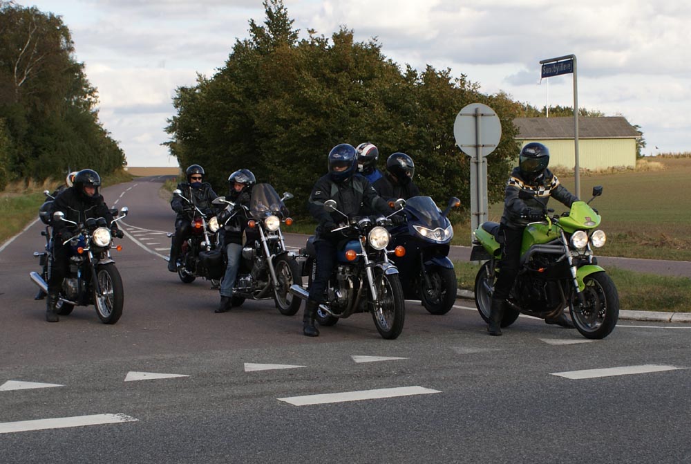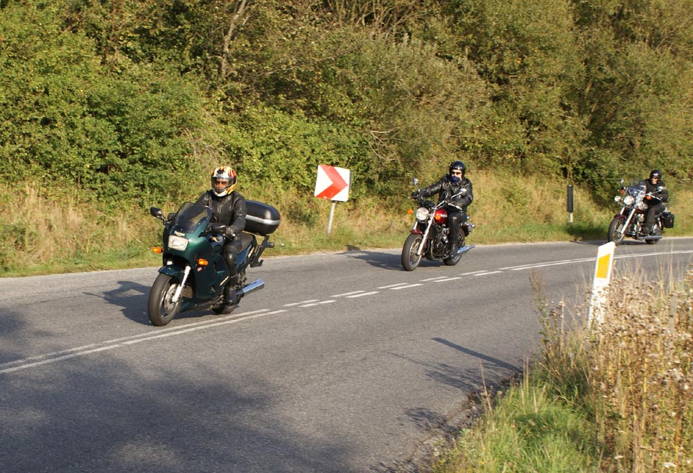 Poul på Virago 750 -94, Jan på den blå TT600 -02, og mig selv på den sort-gule