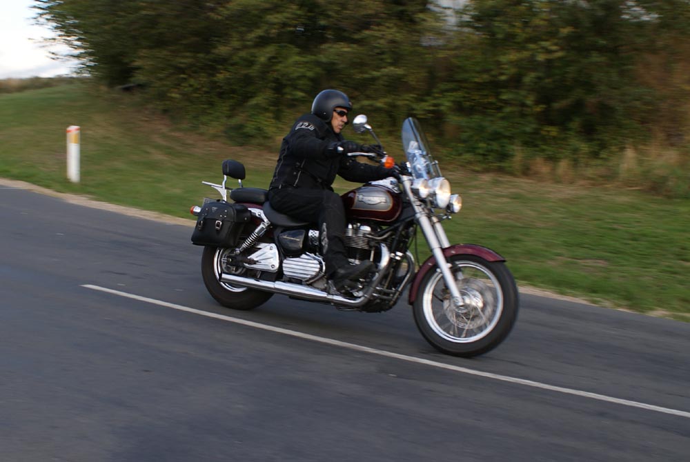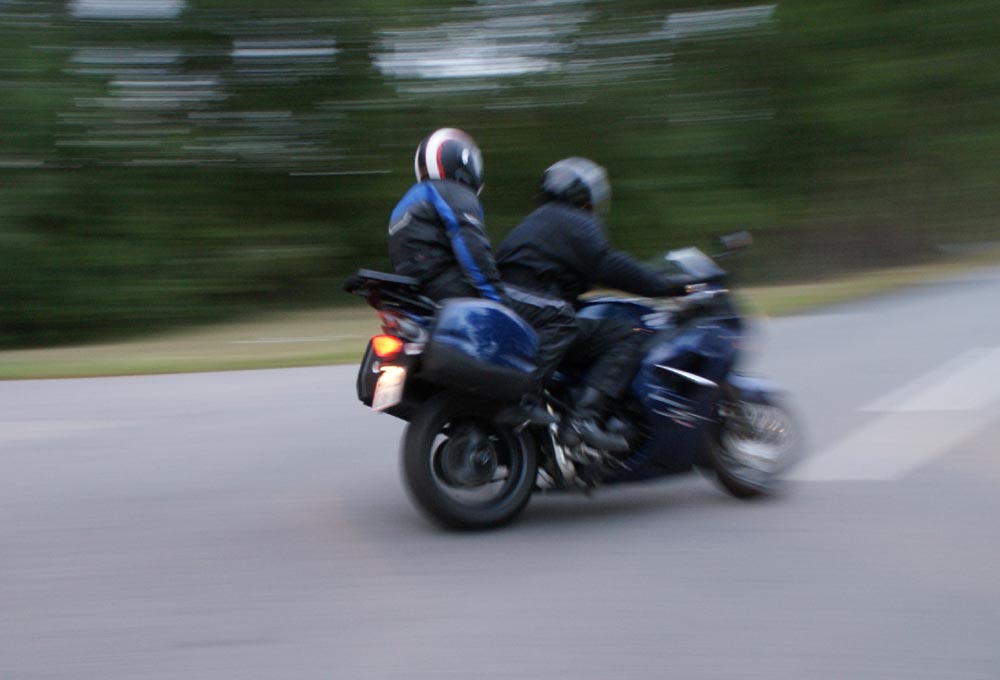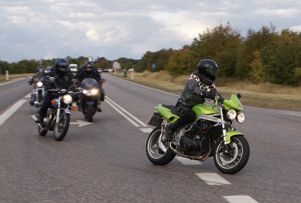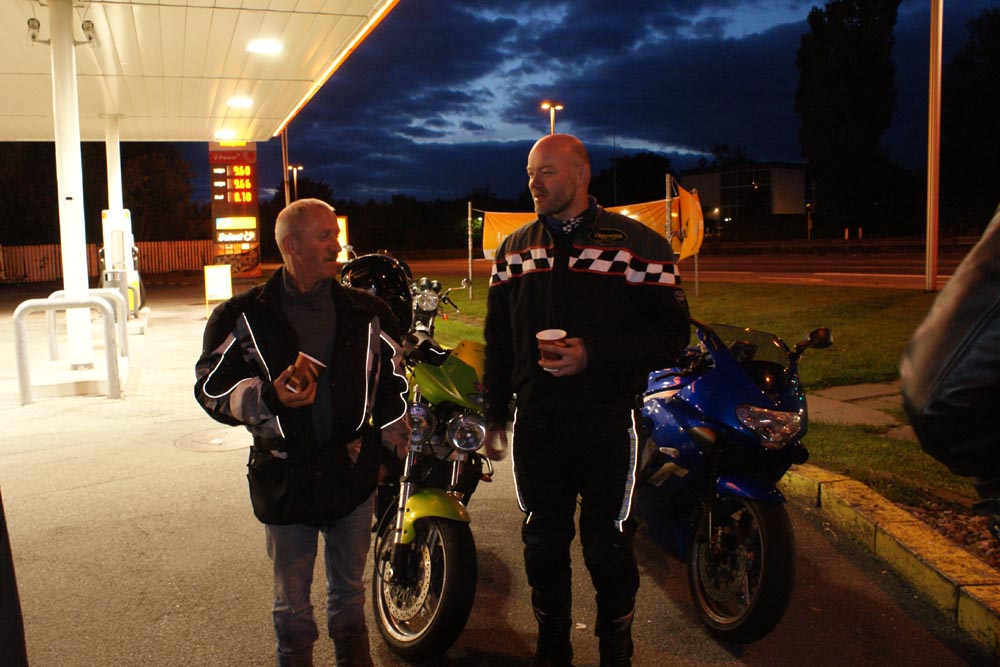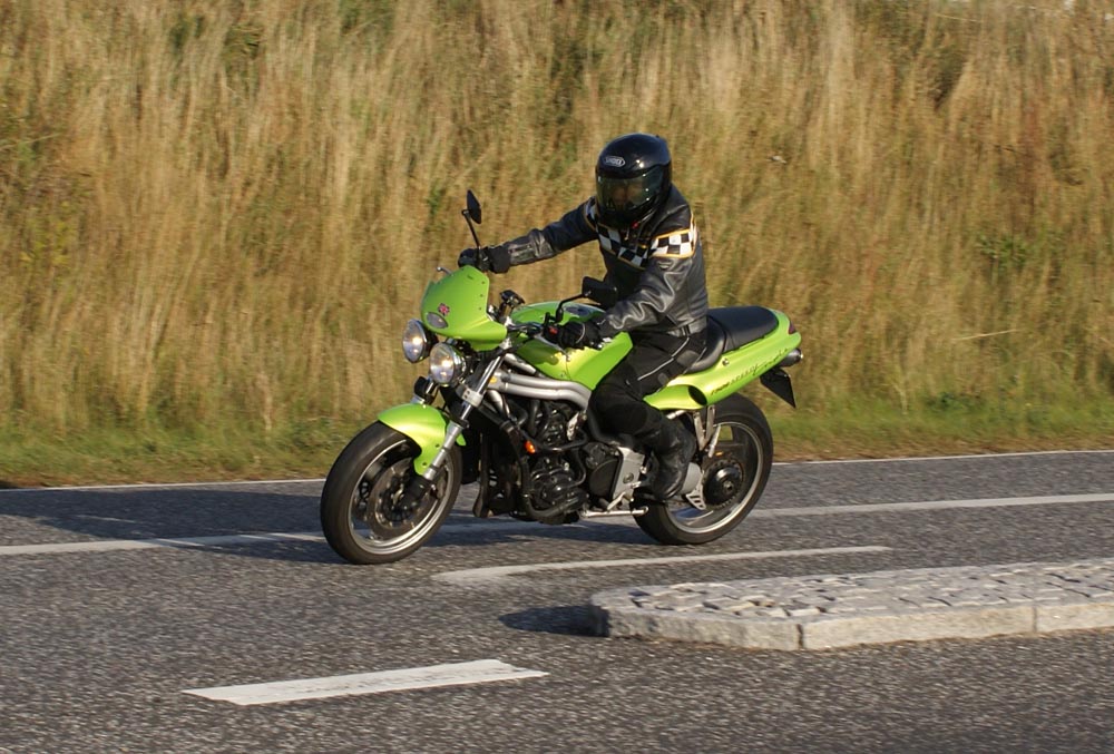 Peter på den røde America -05 og John på den grønne Speed Triple -98.