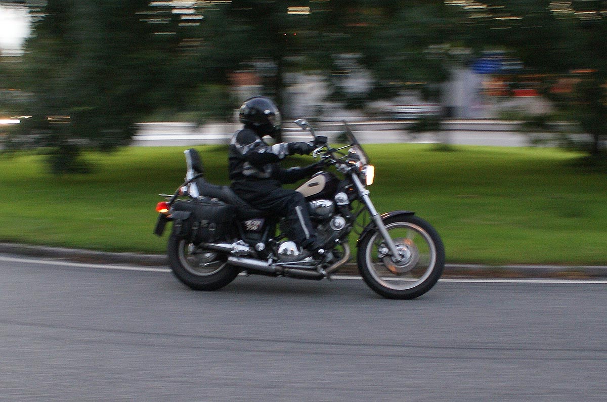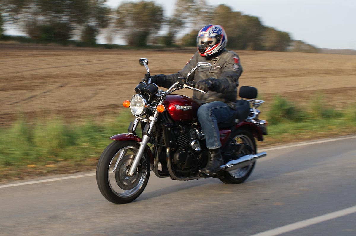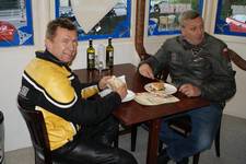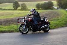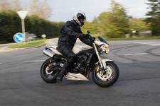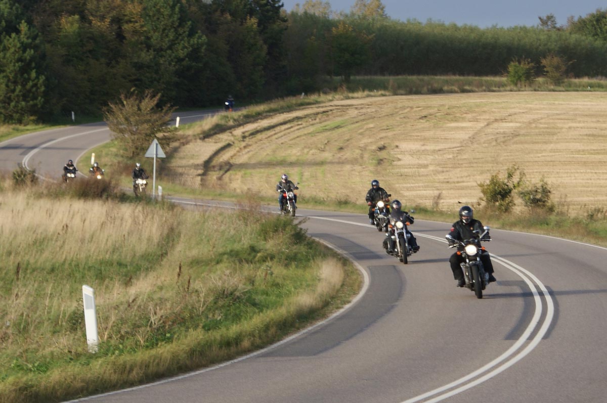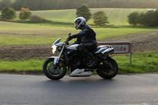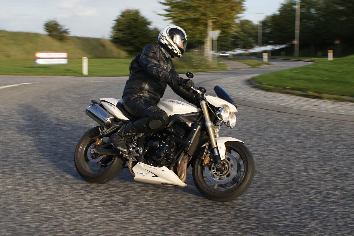 Klaus på en hvid Street Triple -08, Poul på en Virago 750 -94,