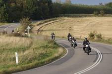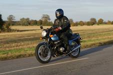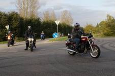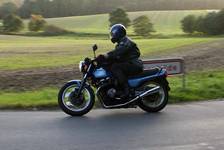 Søren på en blå CBX550 -84, Tom på en rød Legend -00, Jan på en blå TT600 -02,