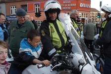Til med politiet var i godt humør og børn fik lov at prøvesidde på deres