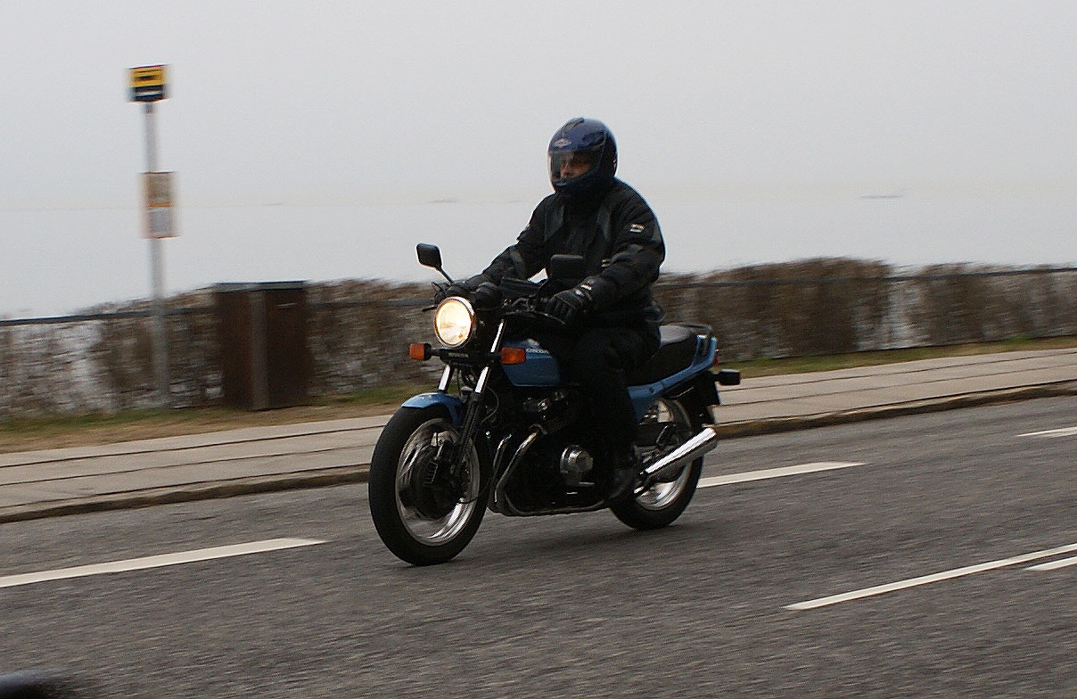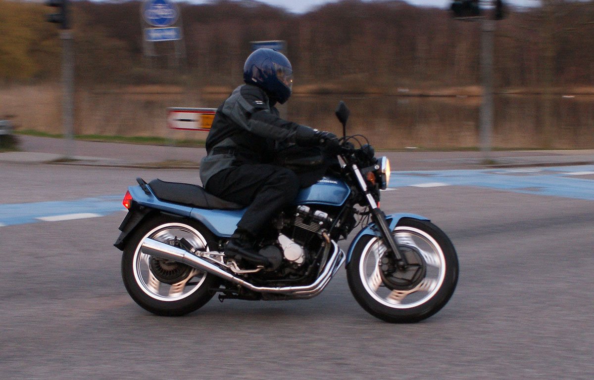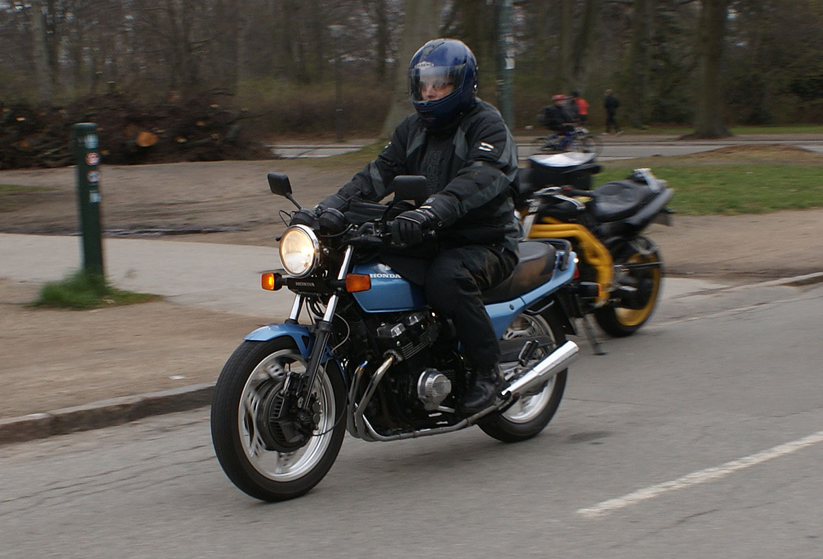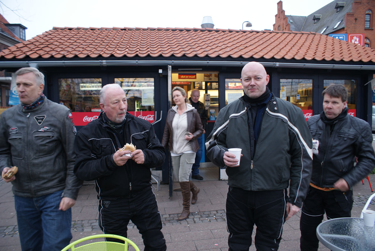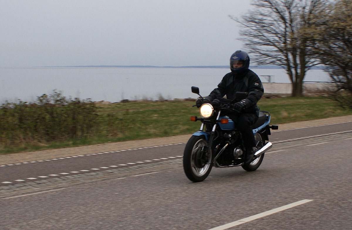 den sorte Bonneville -05, Søren på den blå CBX550 -84, Steen på den blå Thruxton -06,