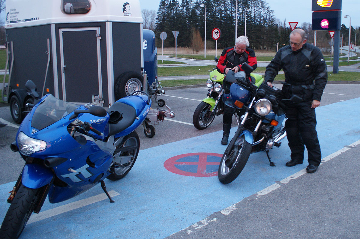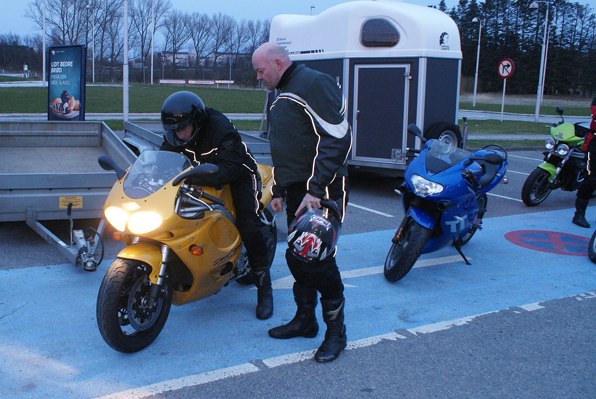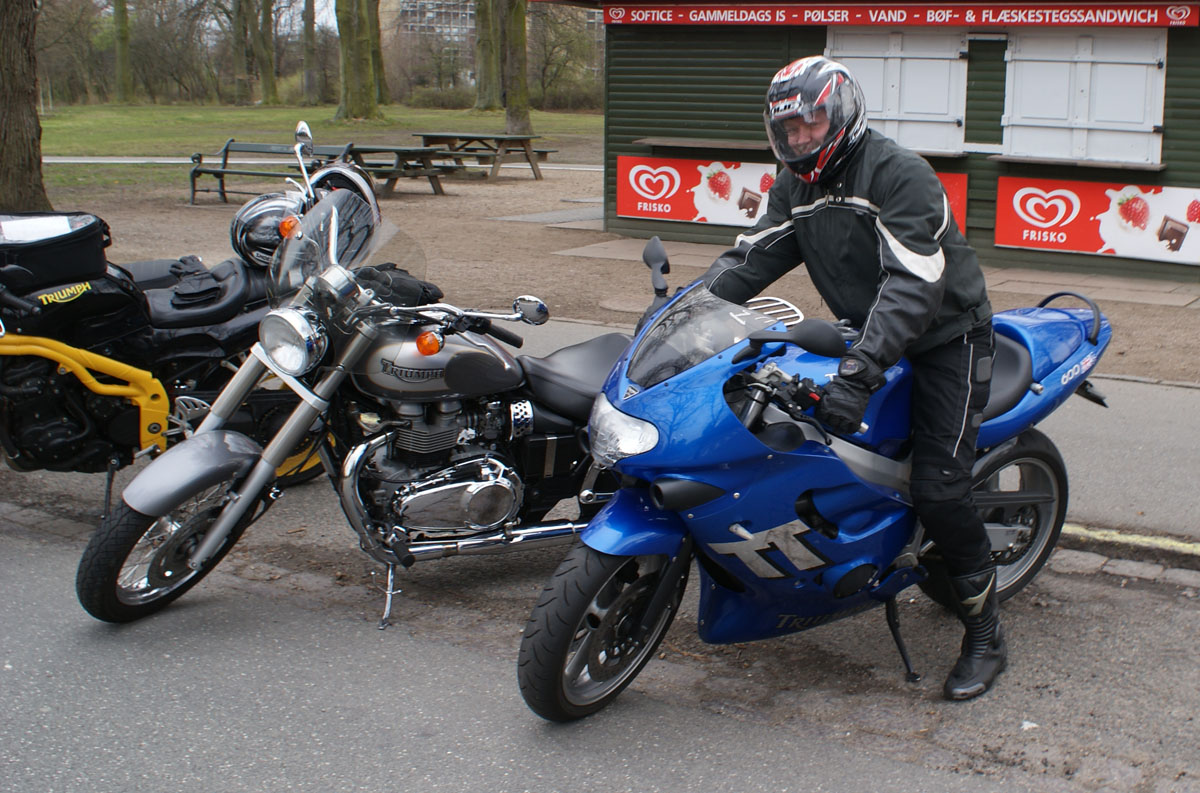 Tom på den røde Legend -00 og John på den grønne Speed Triple -98. Lidt efter så kom