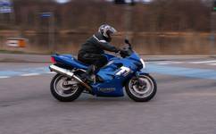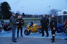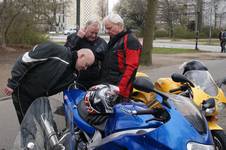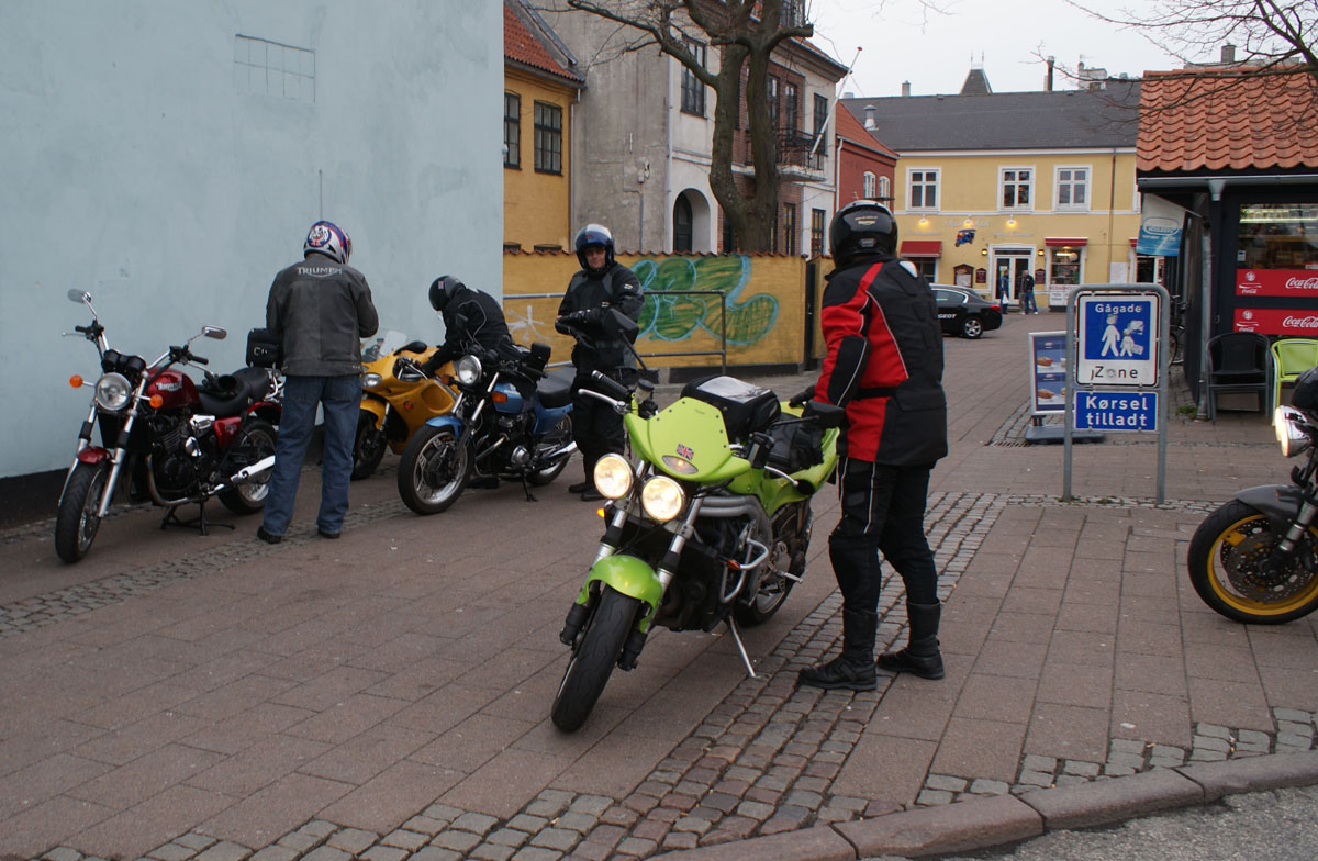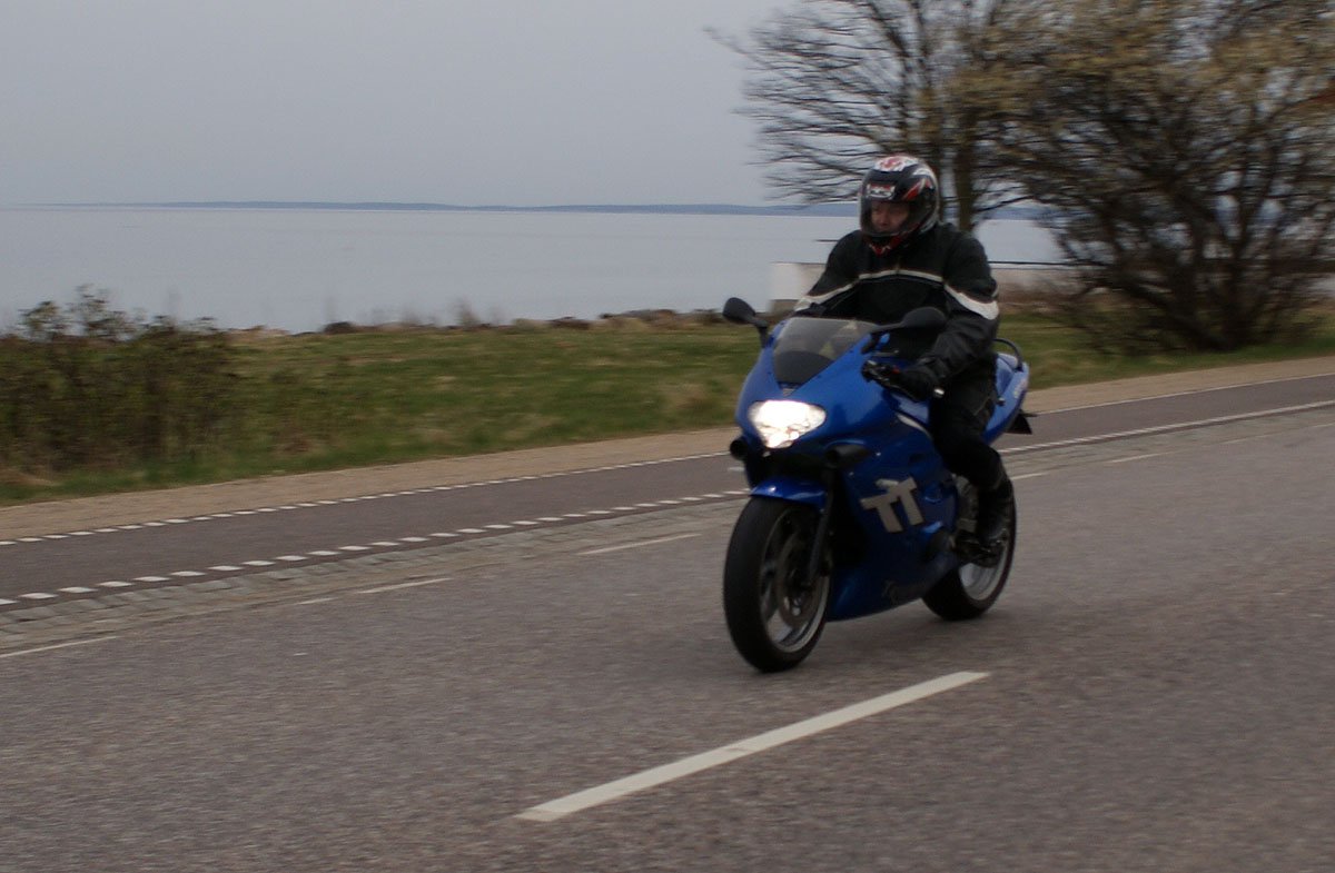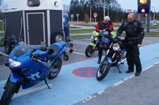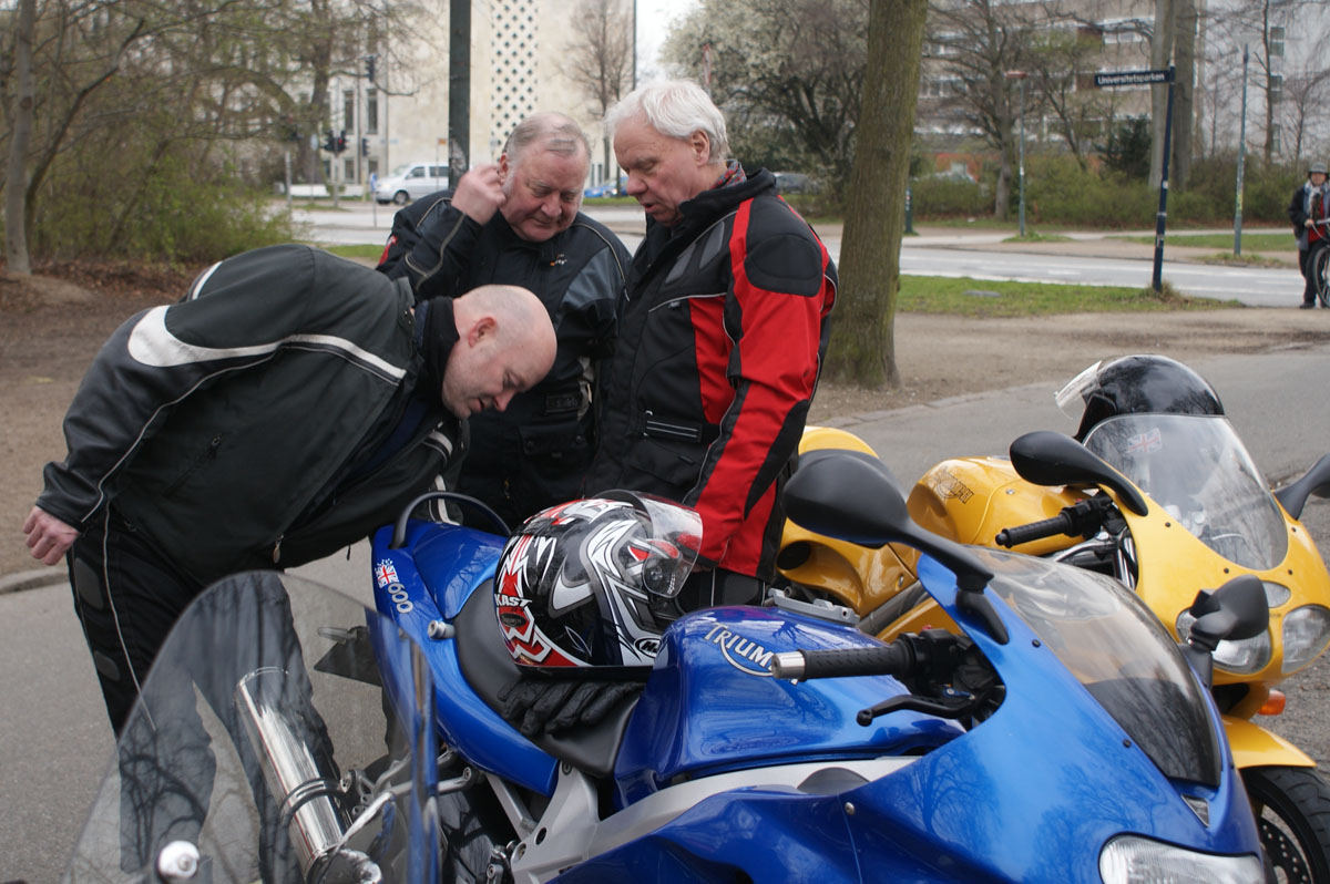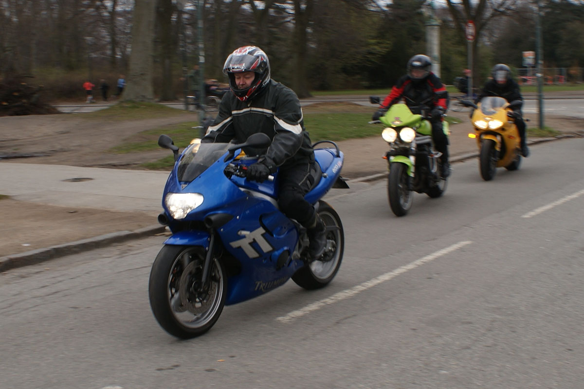 Kai på den sølv America -06, Jan på den blå TT600 -02 og Karl på den gule Daytona 955 -97.