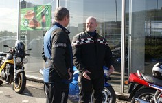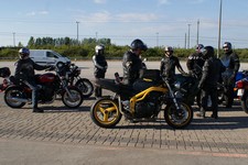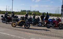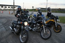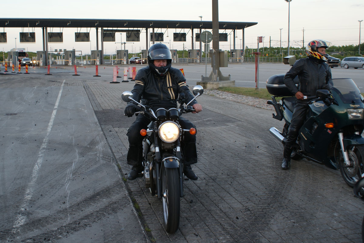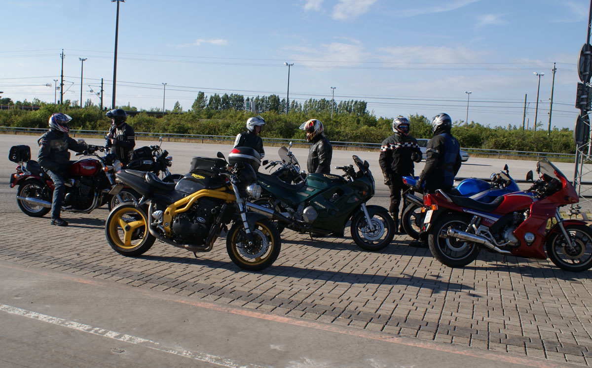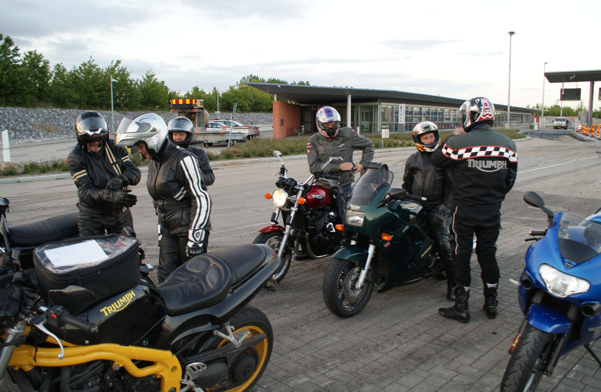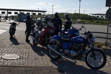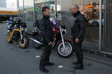 grønne Trophy 1200 -95, Steen på den blå Thruxton -06, Jan på den blå