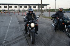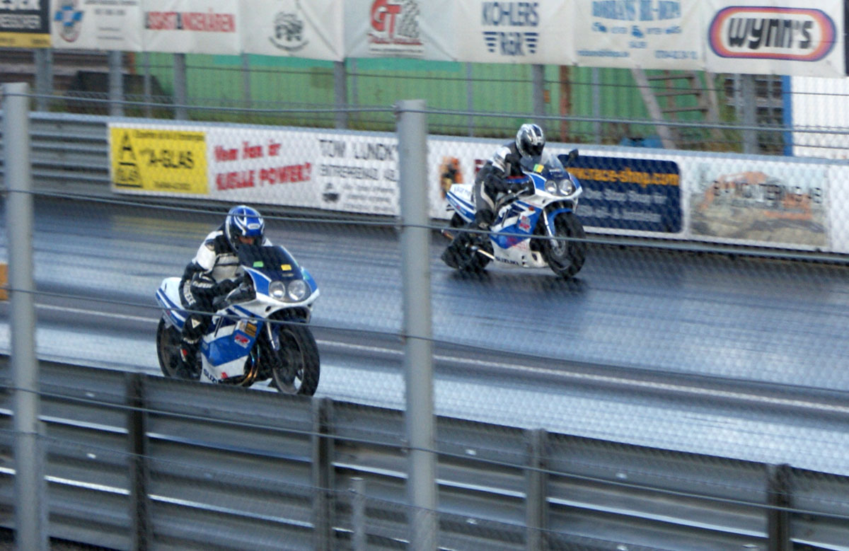 Annette på Suzuki Savage 650 -91, og mig selv på den sort-gule Speed