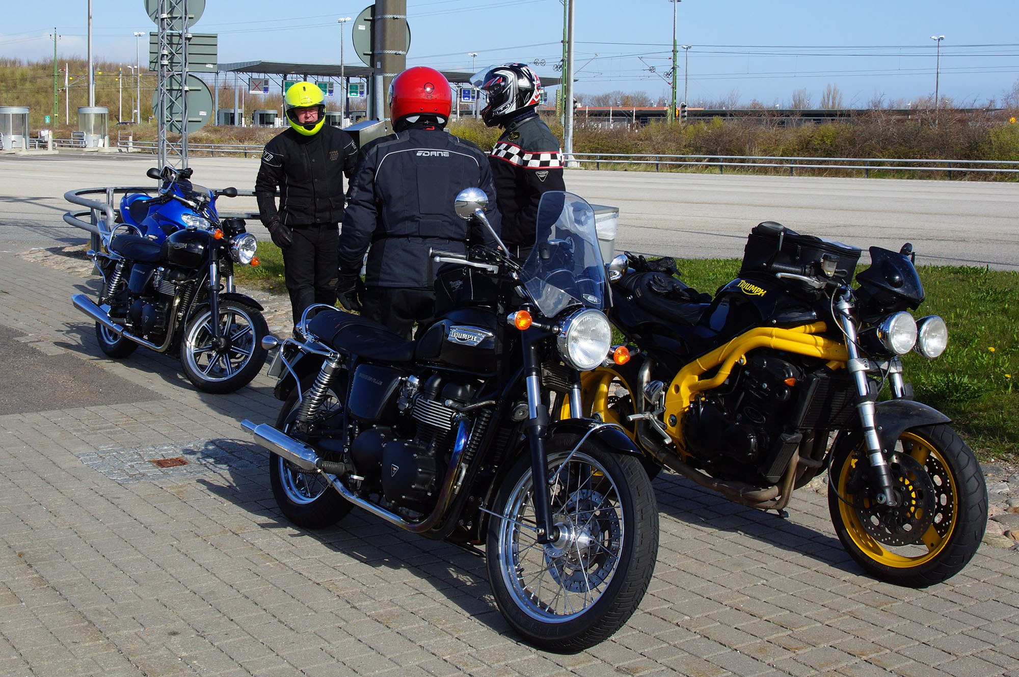 Jan & Ingela på en sort Tiger 955 -01, Leif på en sort Bonneville -04,