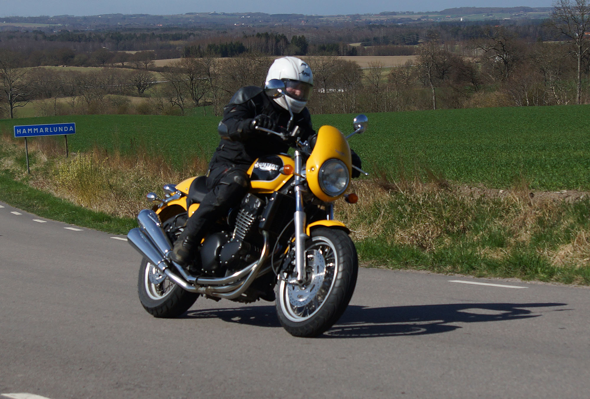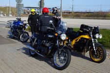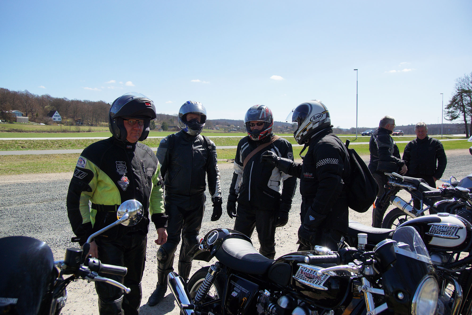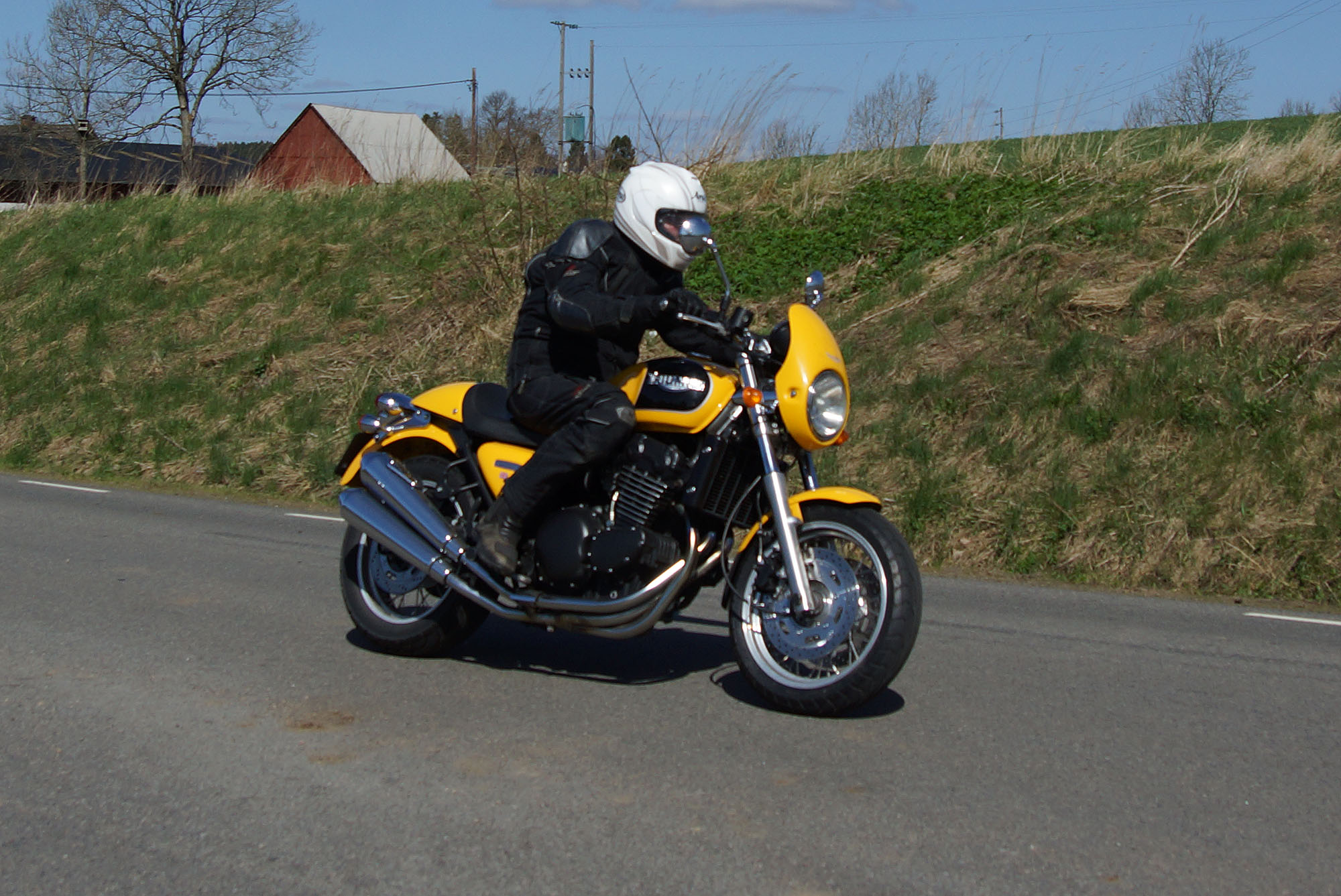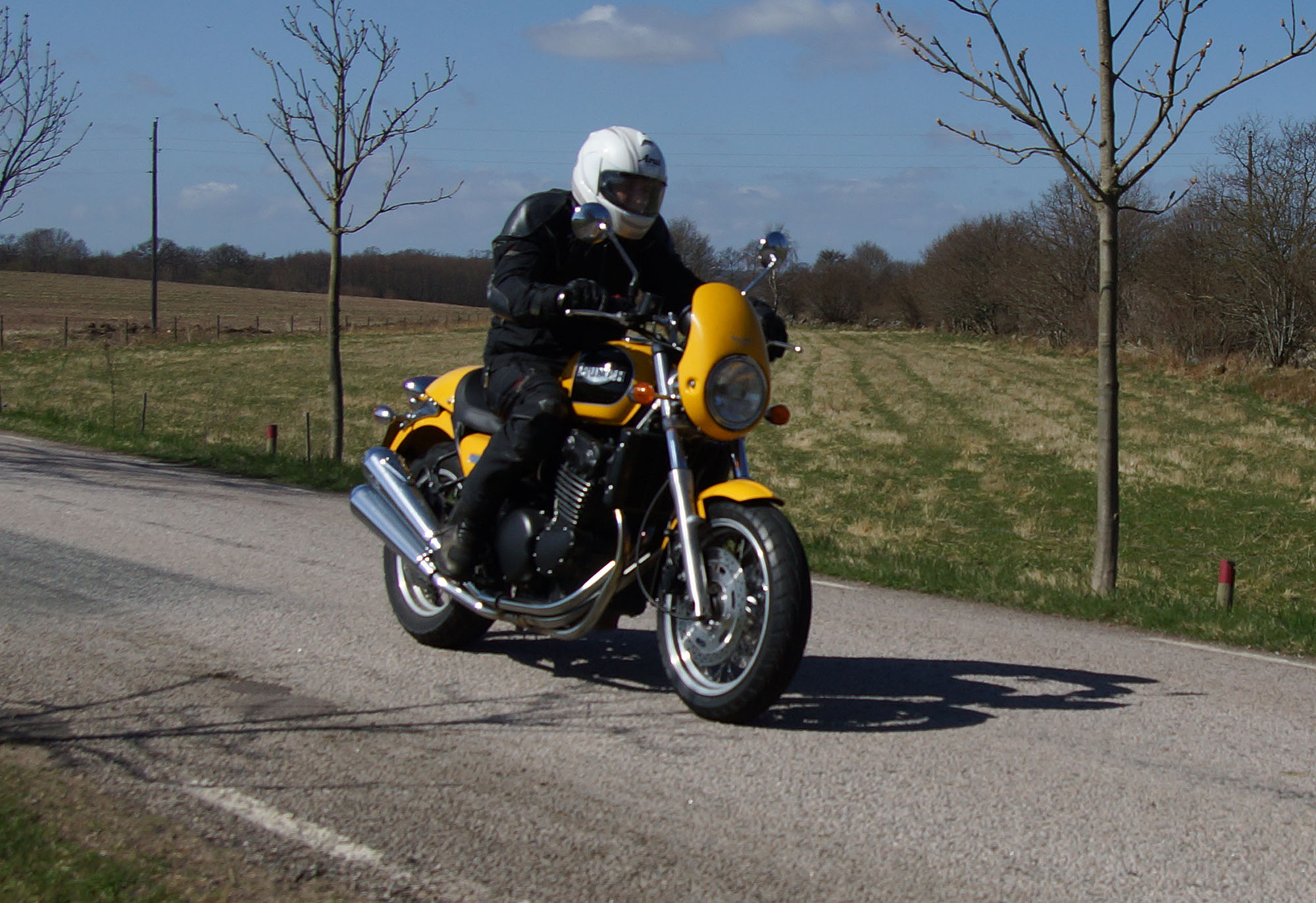 Der var Lennart på en gul Tiger 1050 -07, Ulf på en sort Thruxton -11 "Arrow edition",