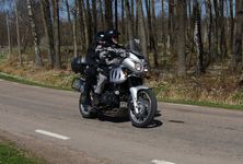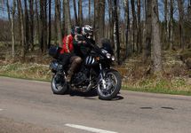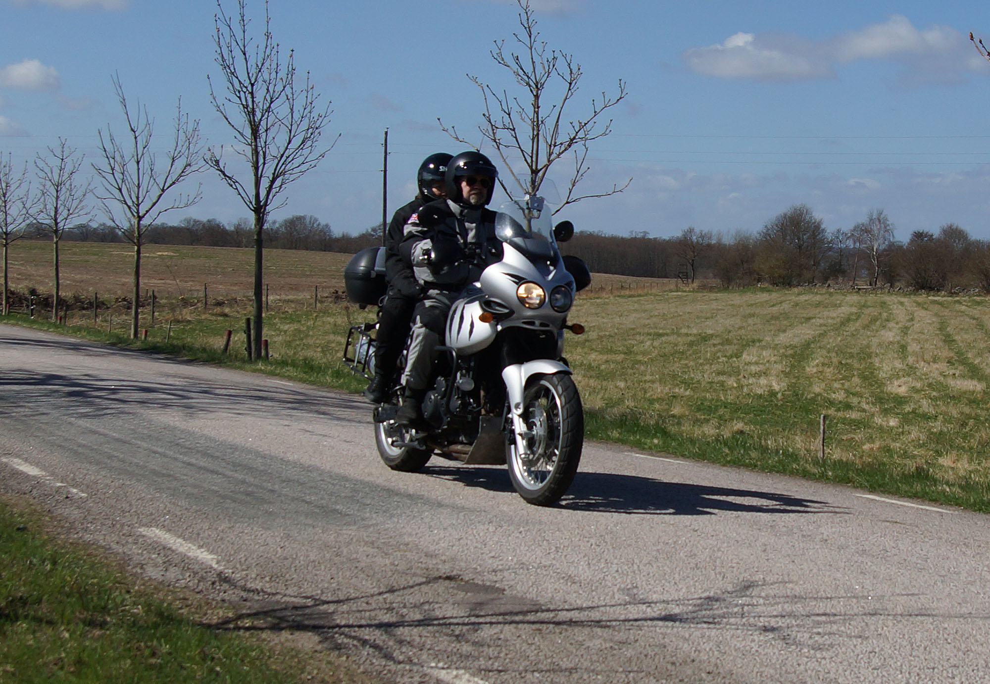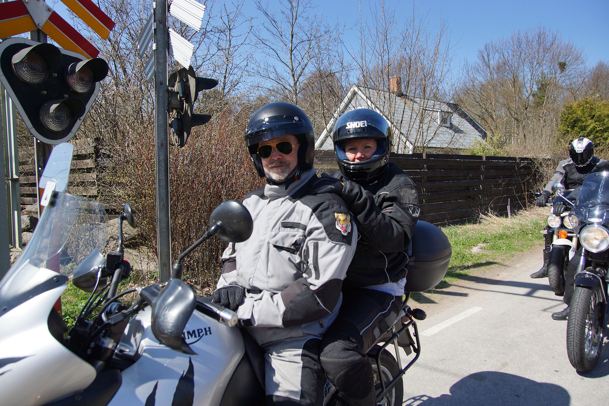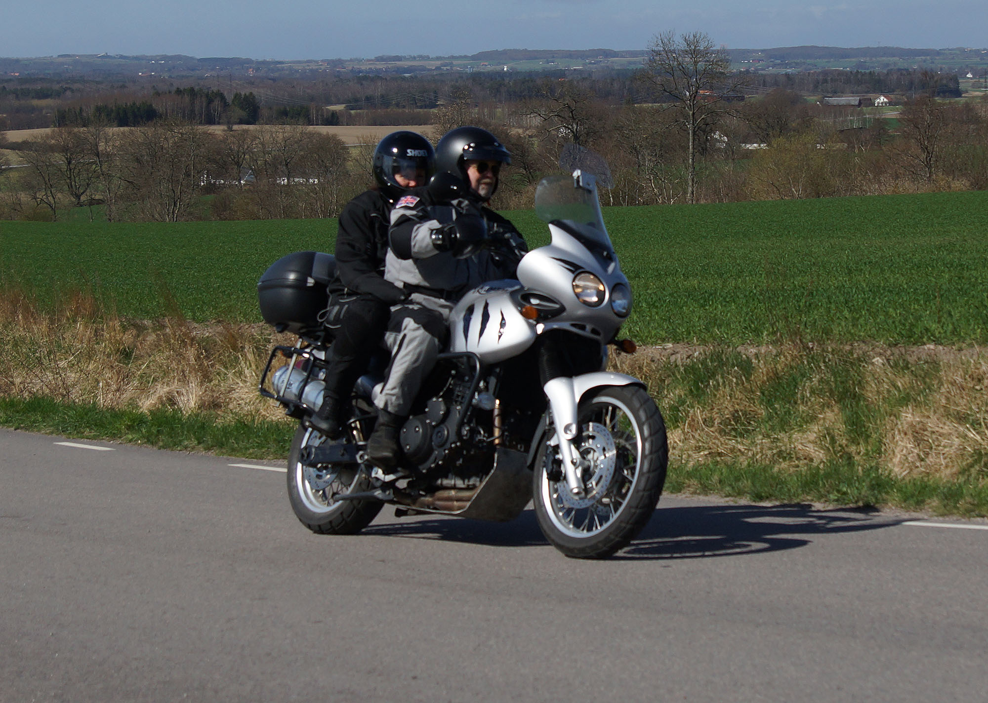 Magnus & Solveig på en grå Tiger 955 -03, Jonas på en grå Tiger Explorer -13,