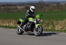 (med alu hjul og gul hjelm), Klaus på en hvid Street Triple -08,