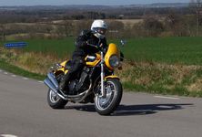 Bo på en sort "Nr 1" Thruxton -04, Peter på en gul Thunderbird -99,