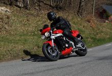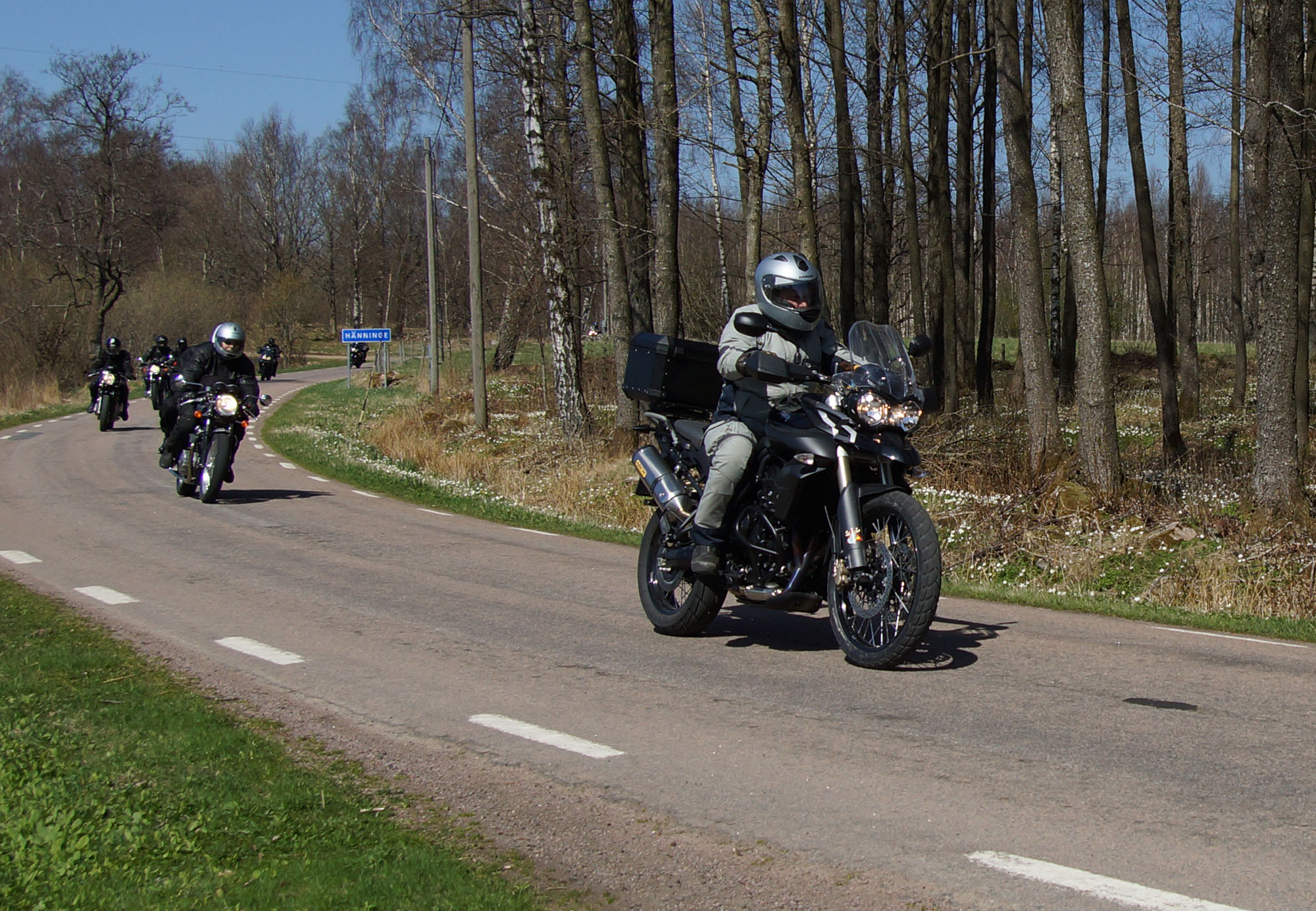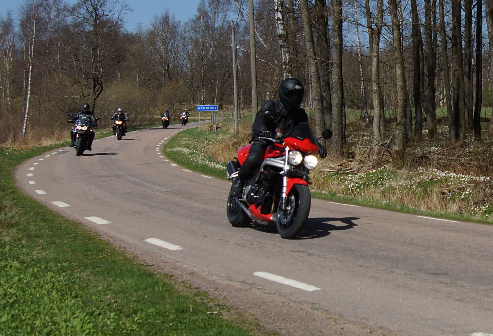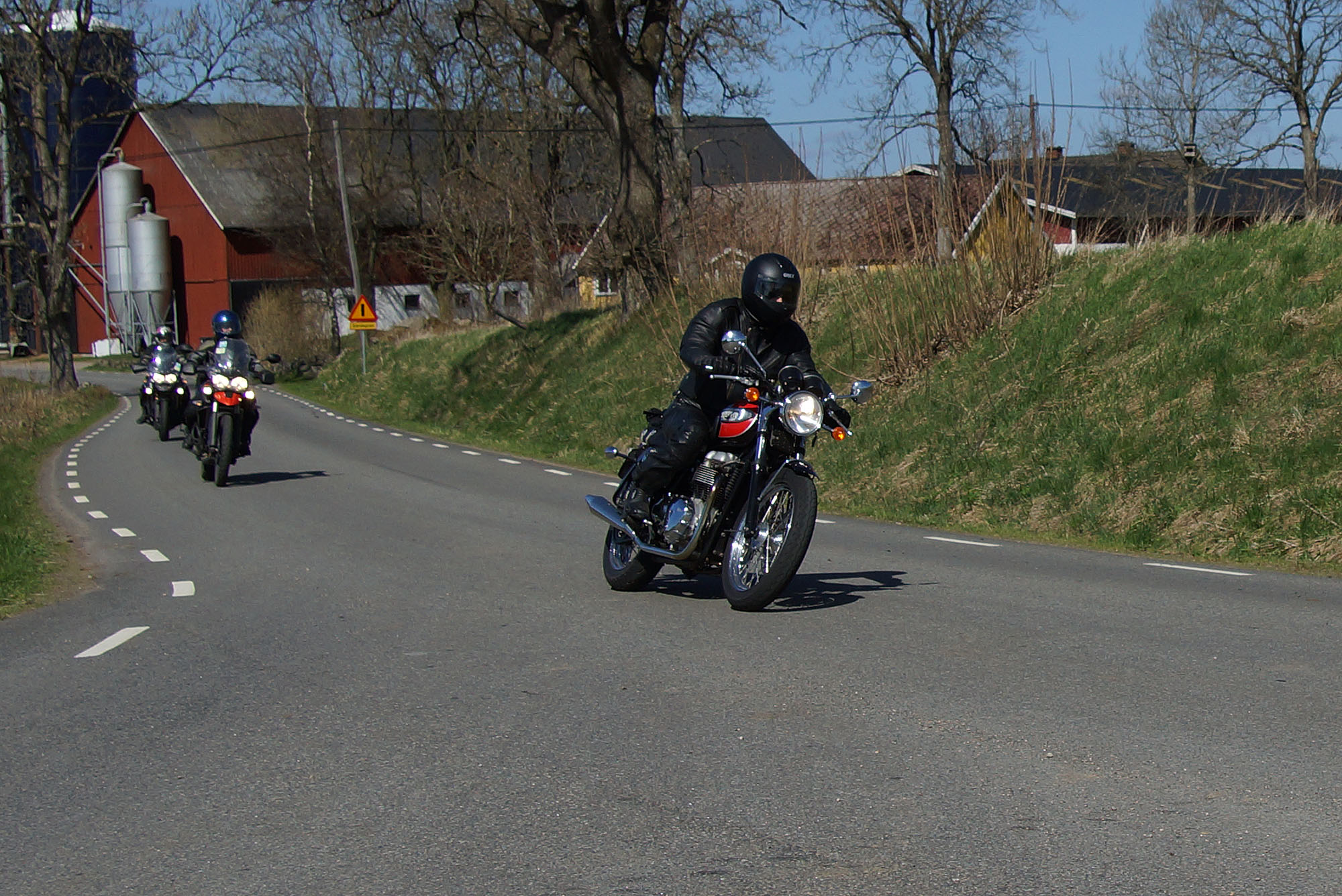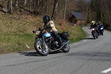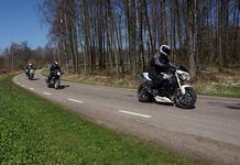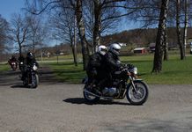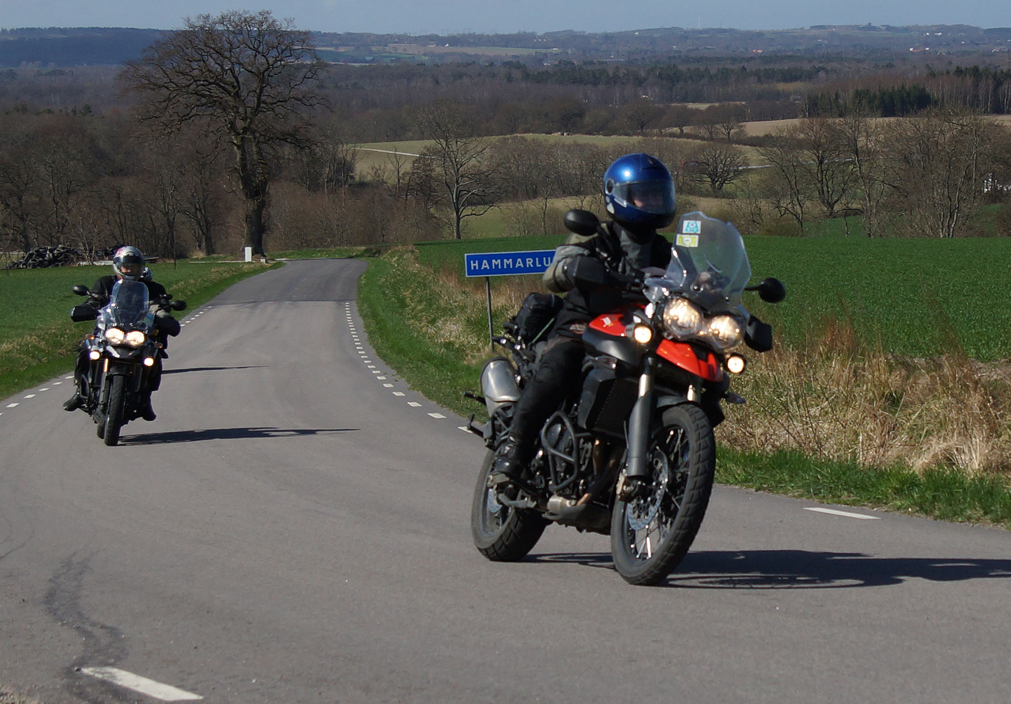 Mattias på en rød Speed Triple -04, Acke på en Tiger Explorer -12 og