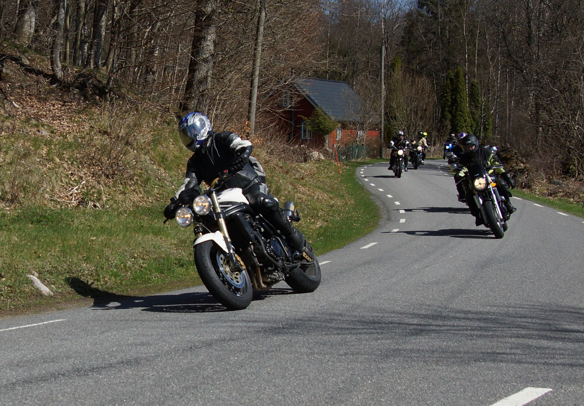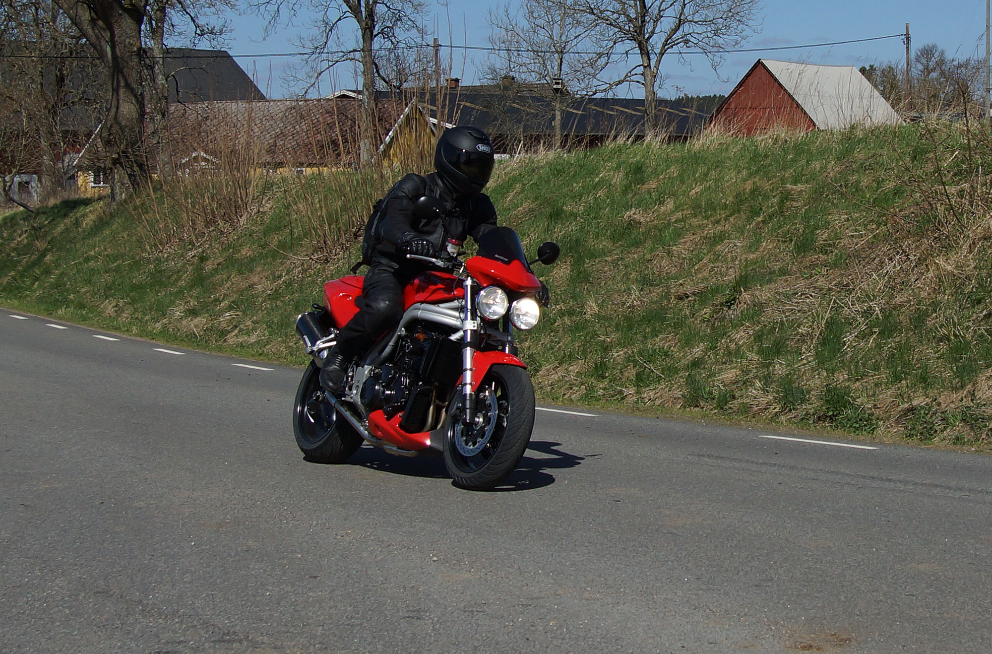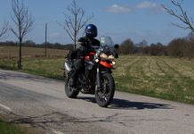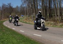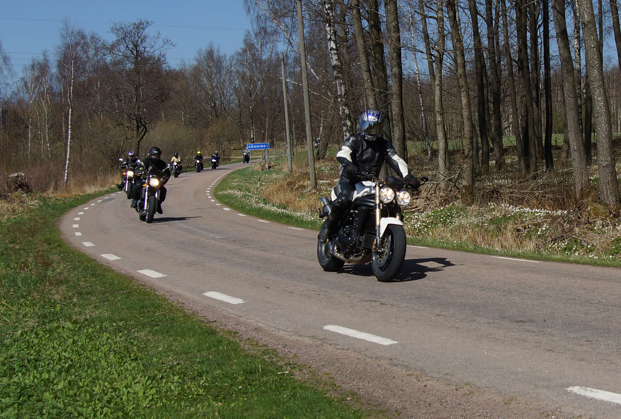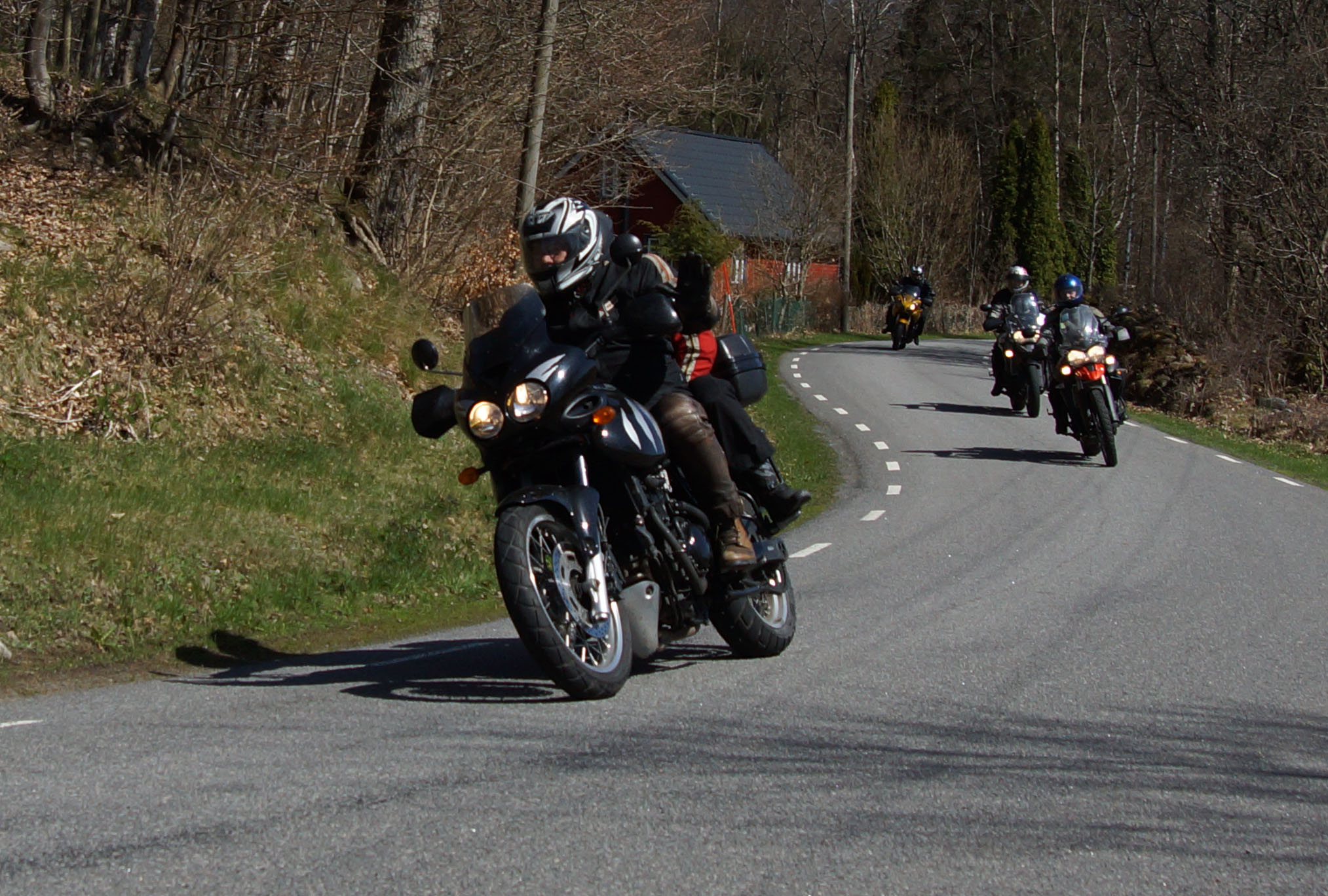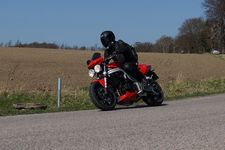 Mattias på en rød Speed Triple -04, Acke på en Tiger Explorer -12 og