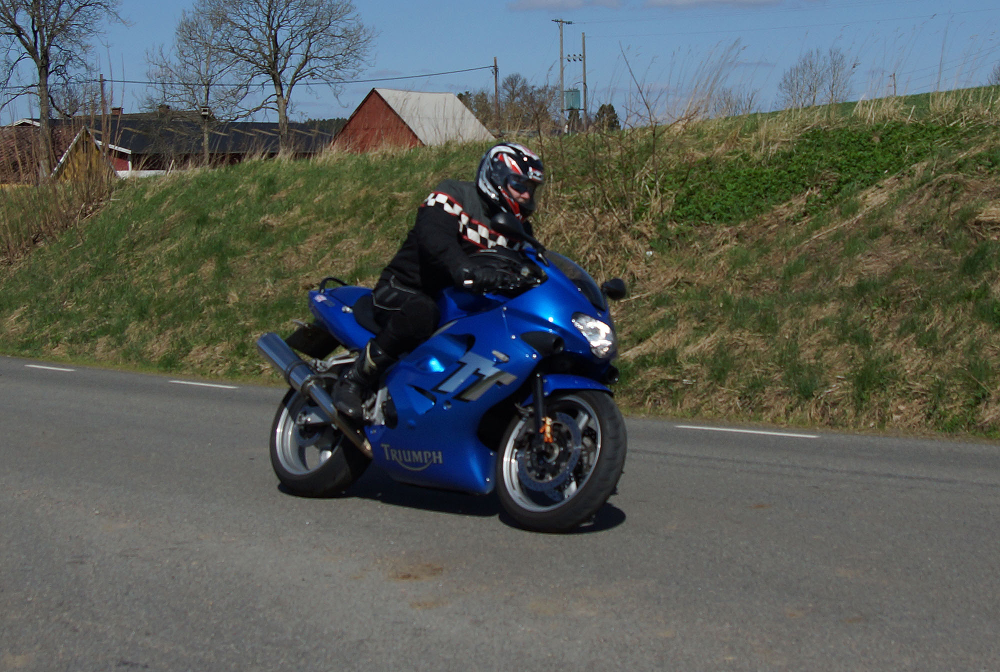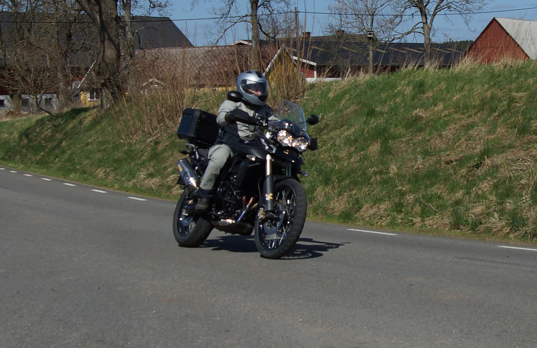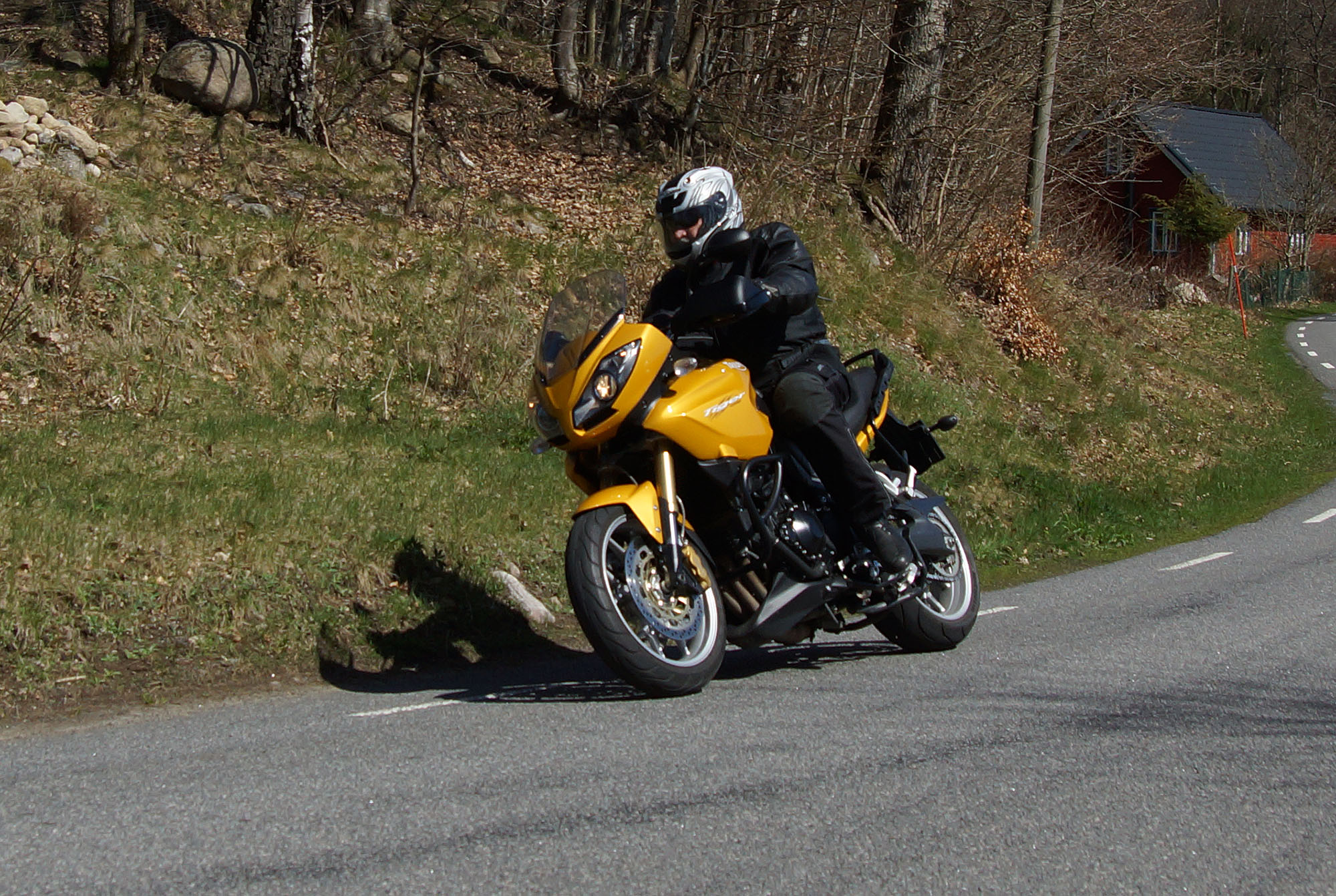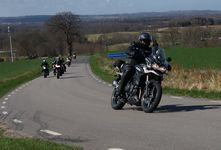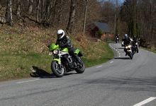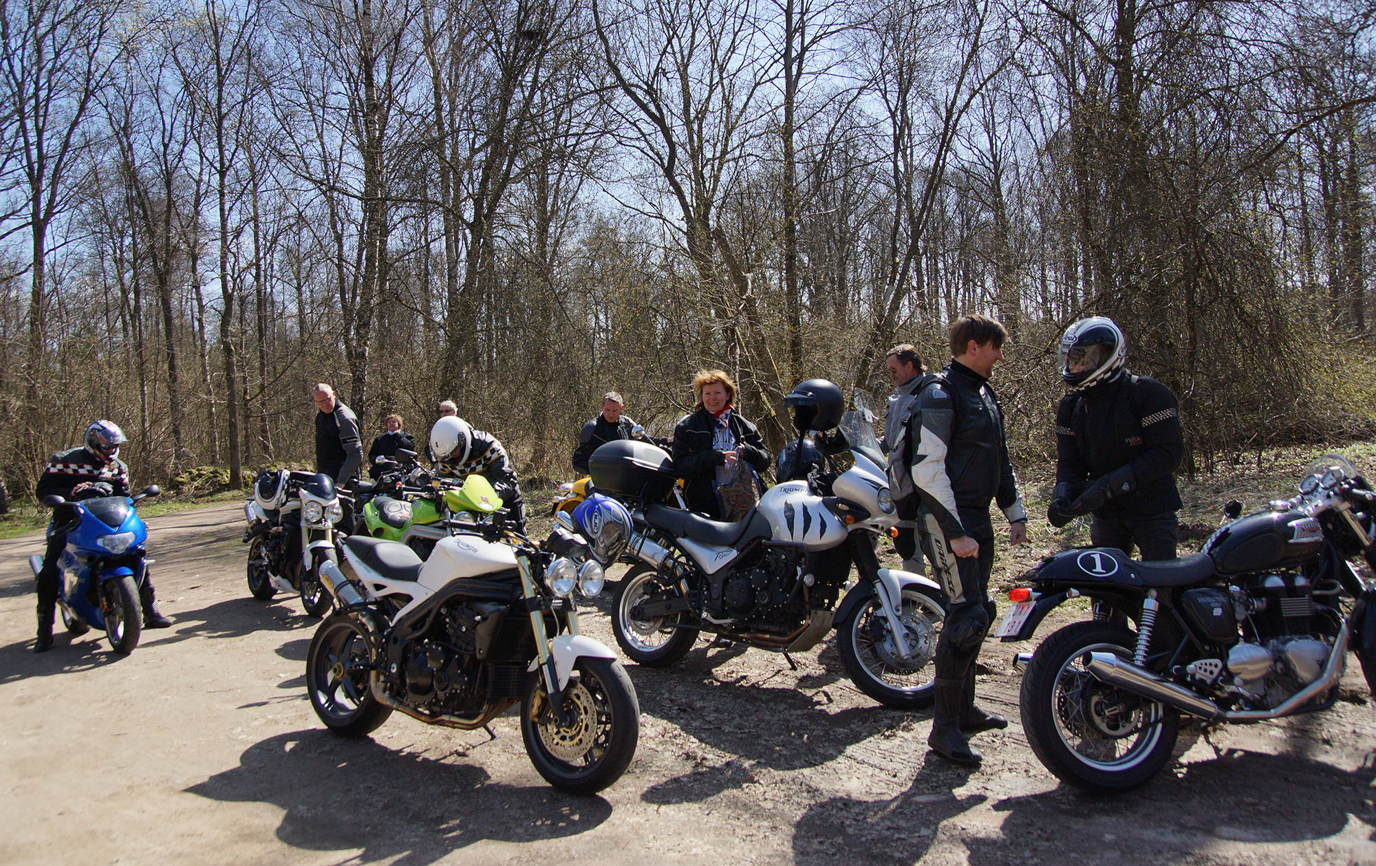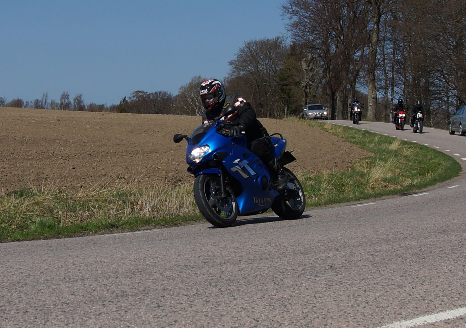 Mattias på en rød Speed Triple -04, Acke på en Tiger Explorer -12 og