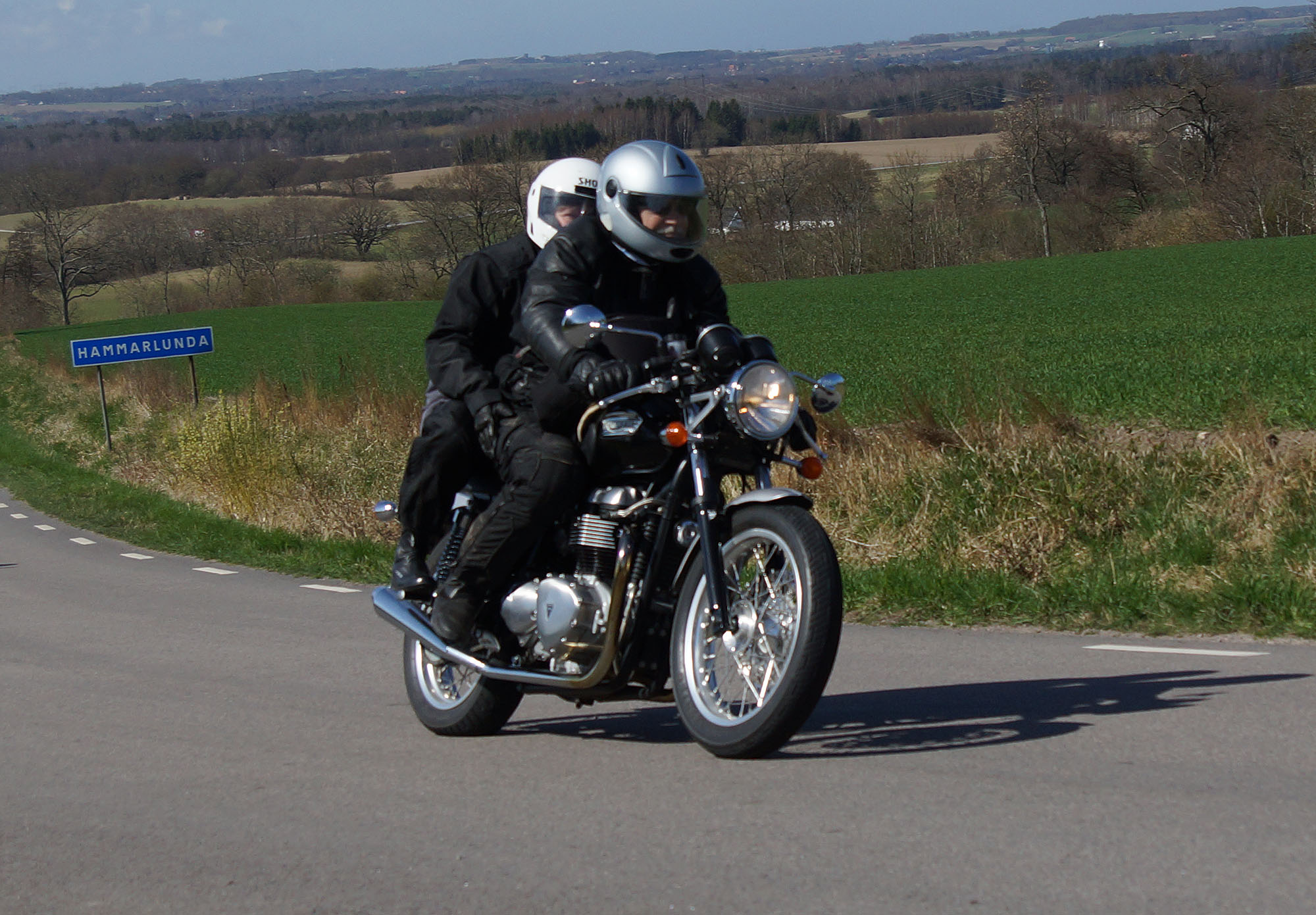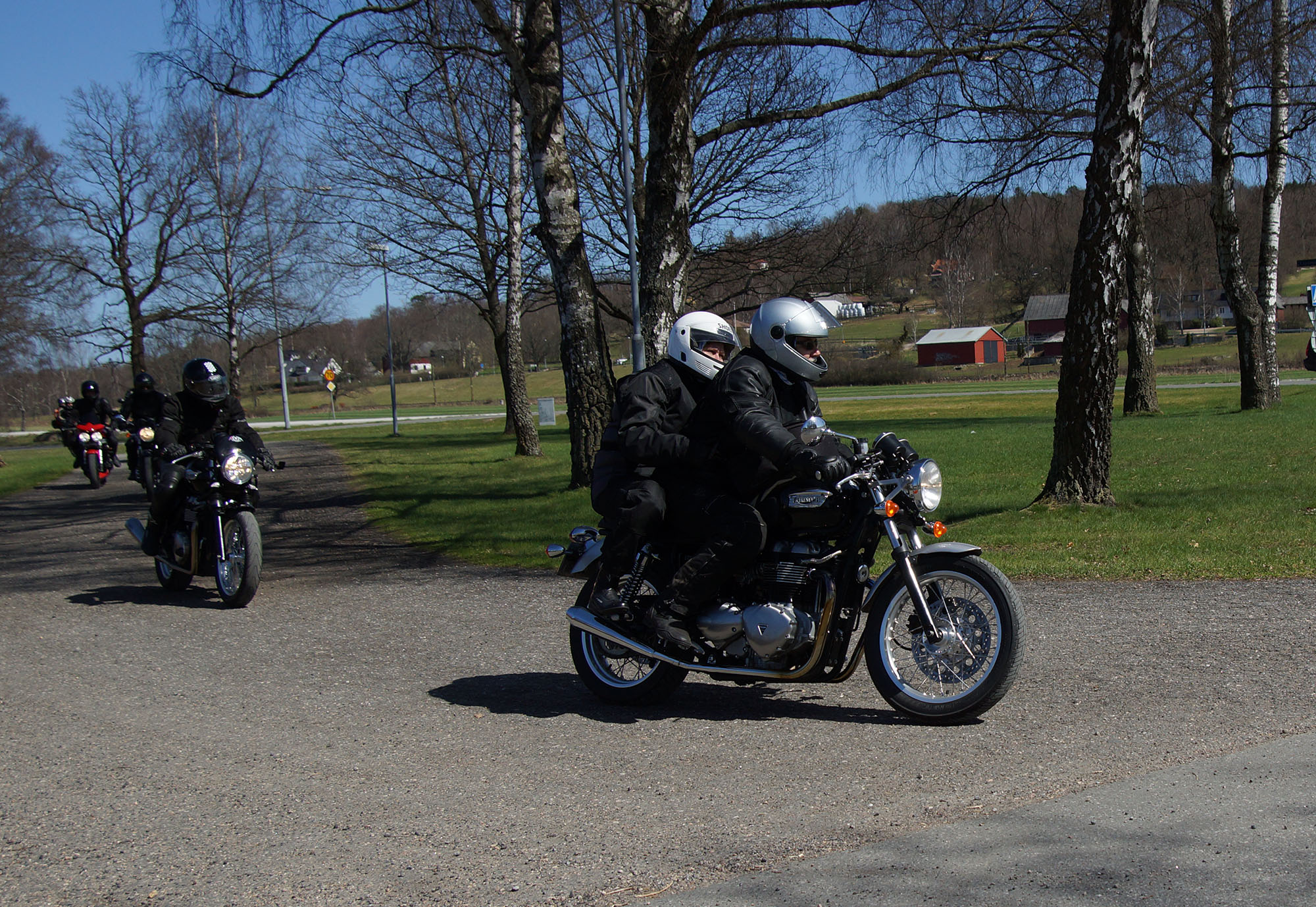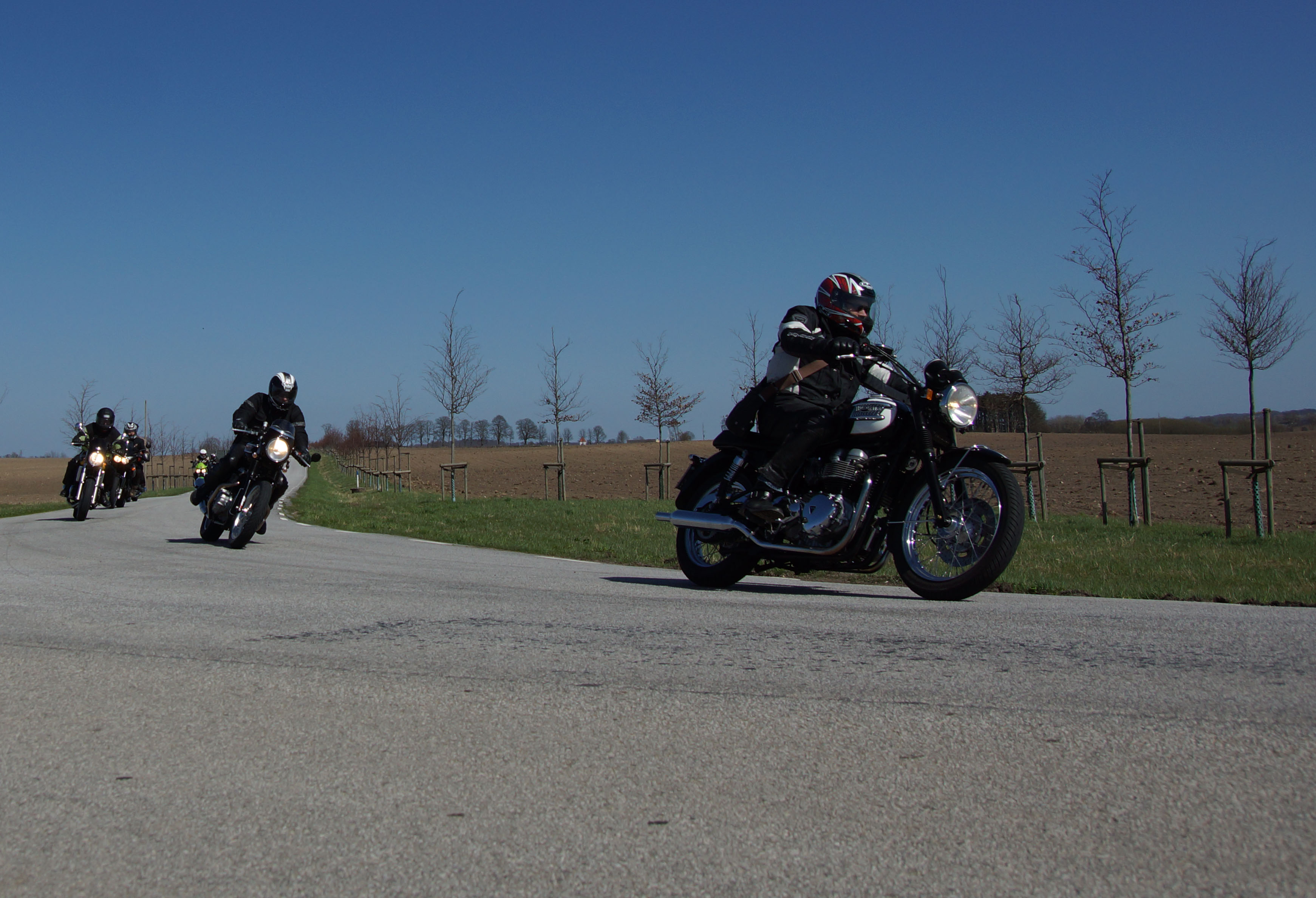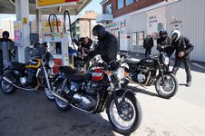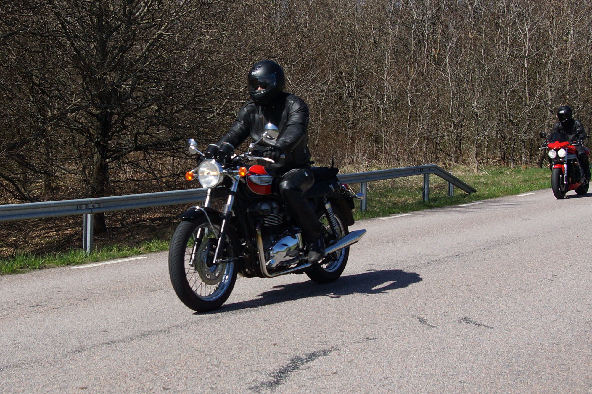 Lars på en sort/rød Bonneville -06, Thomas på en hvid Speed Triple -06,