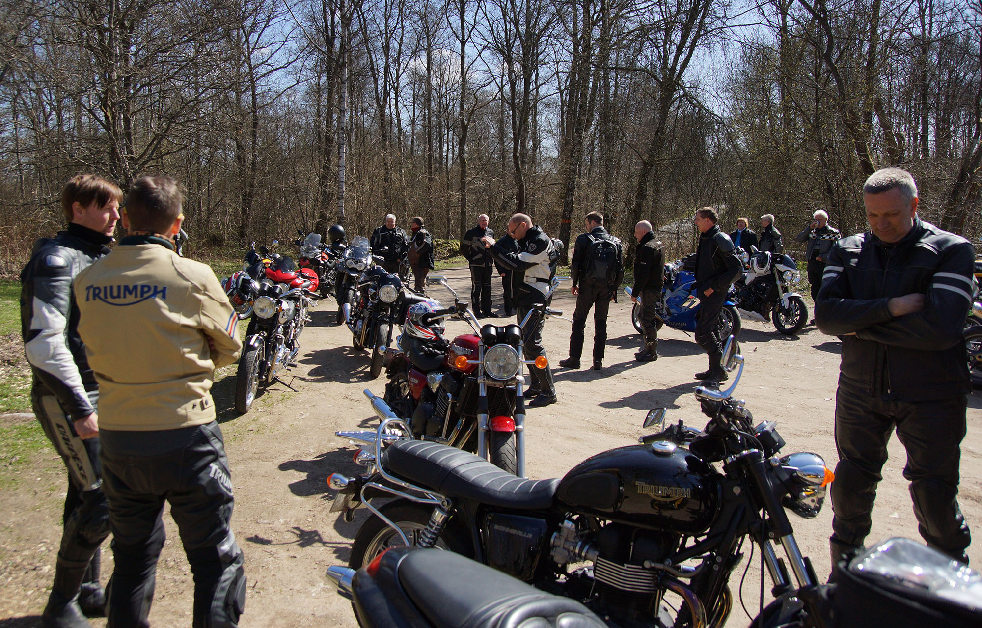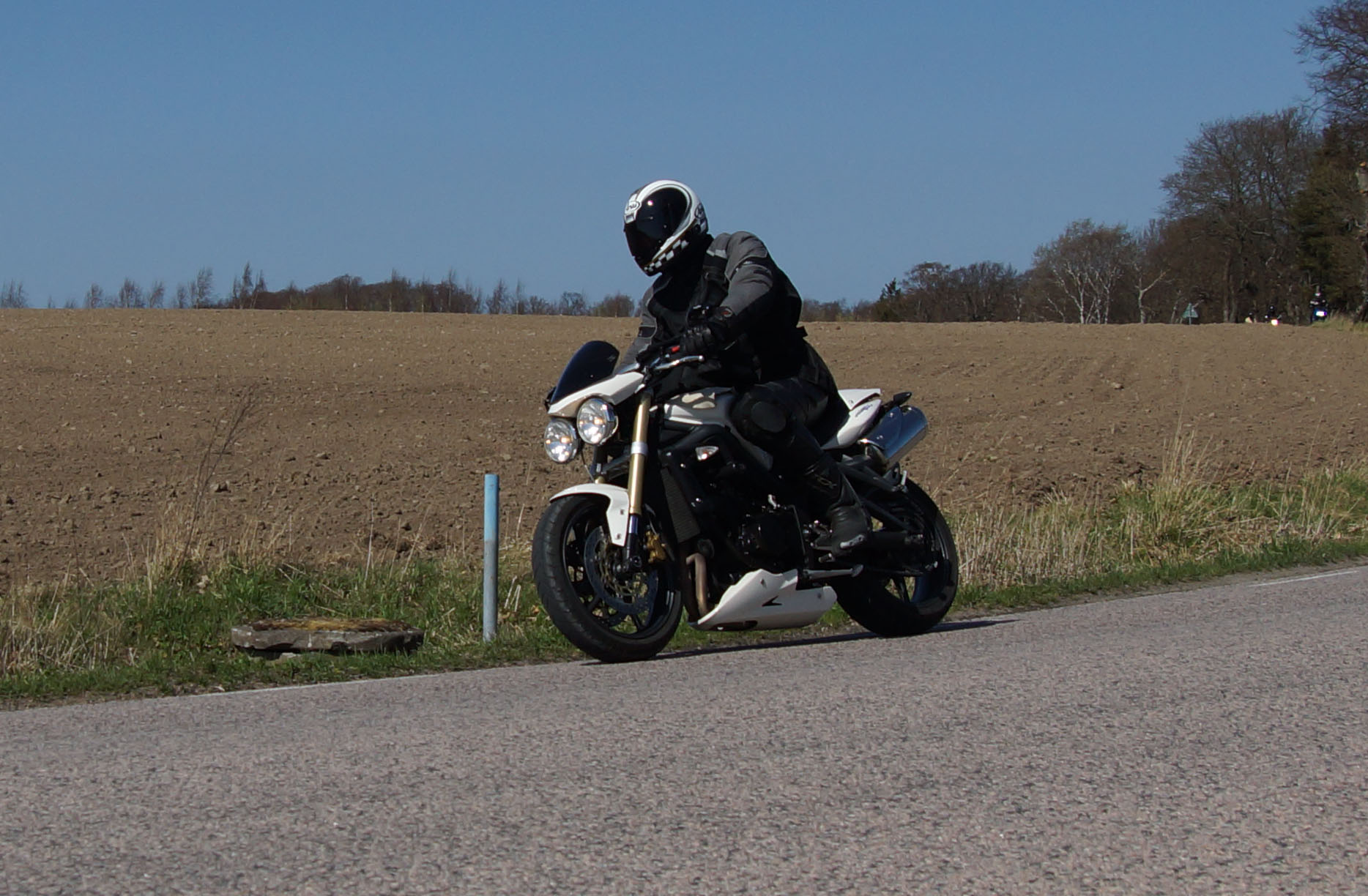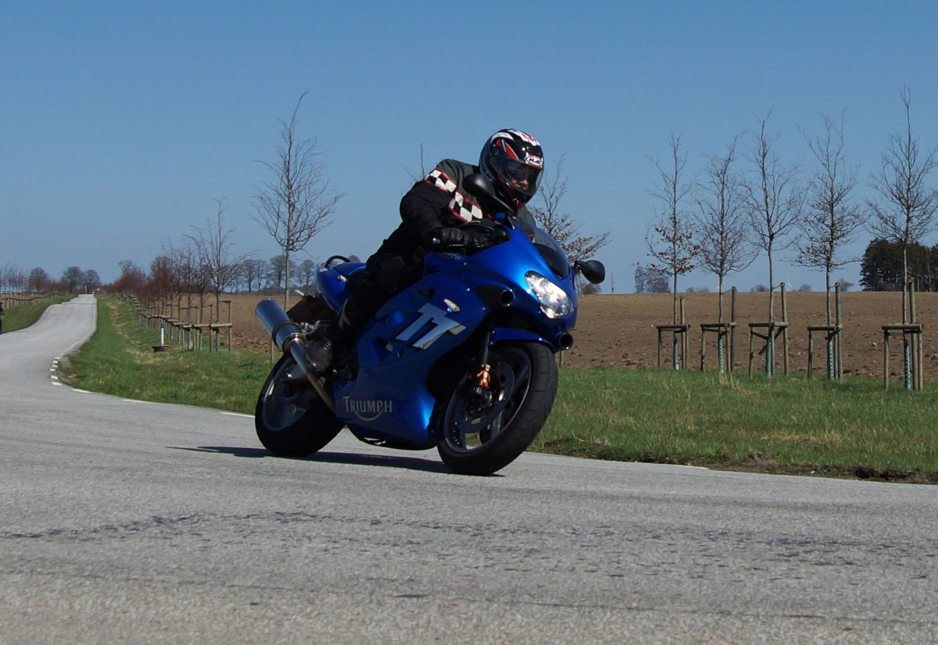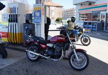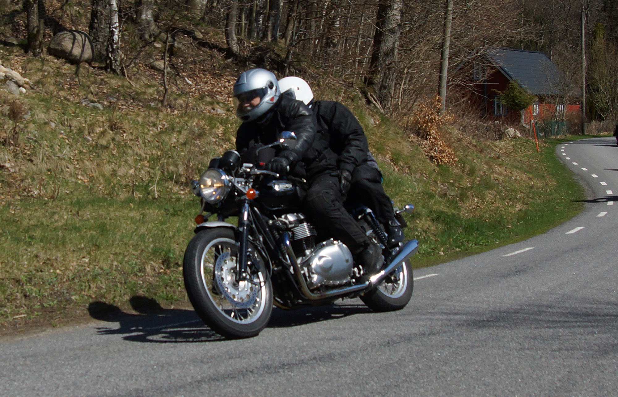 Lars på en sort/rød Bonneville -06, Thomas på en hvid Speed Triple -06,