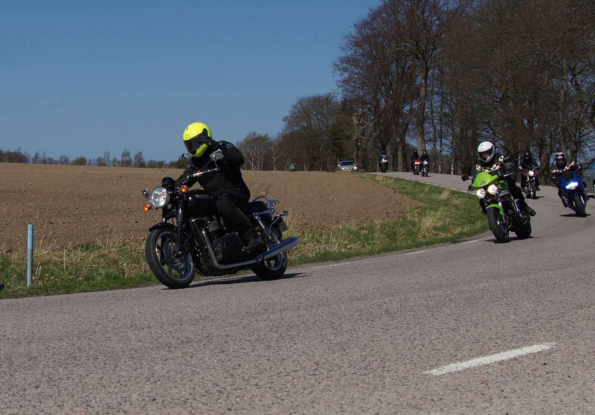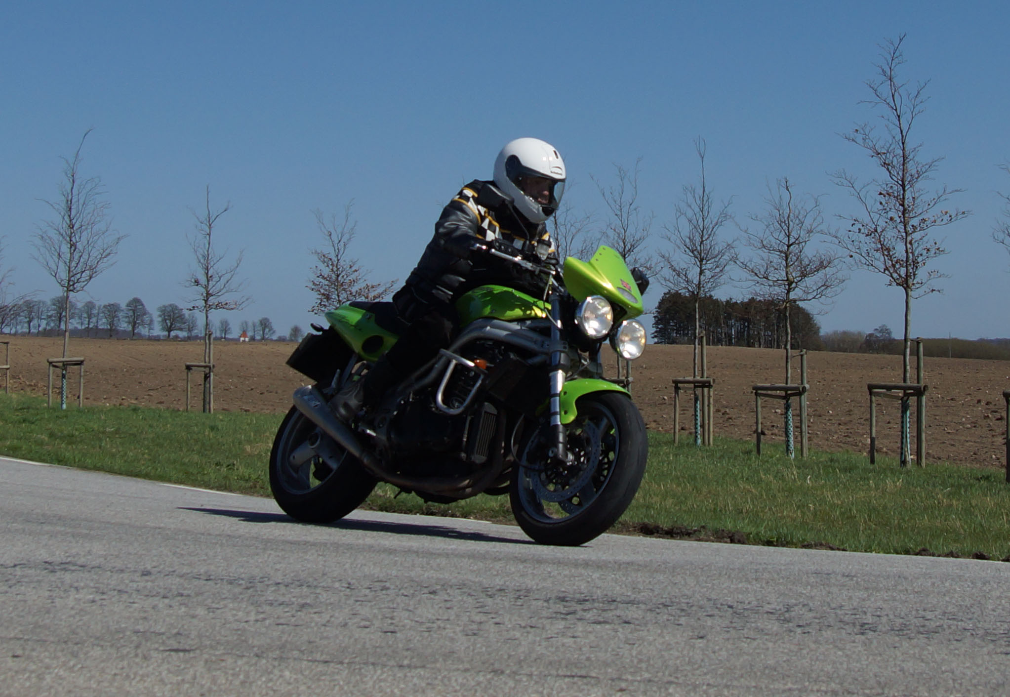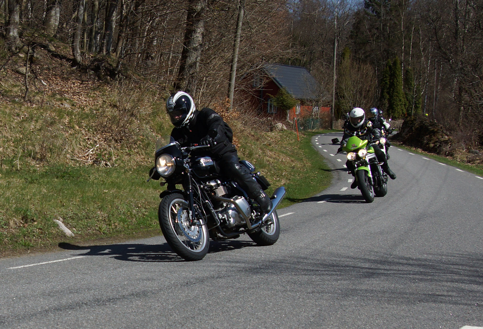 John på en grøn Speed Triple -98, mig selv (Kristoffer) på en sort-gul