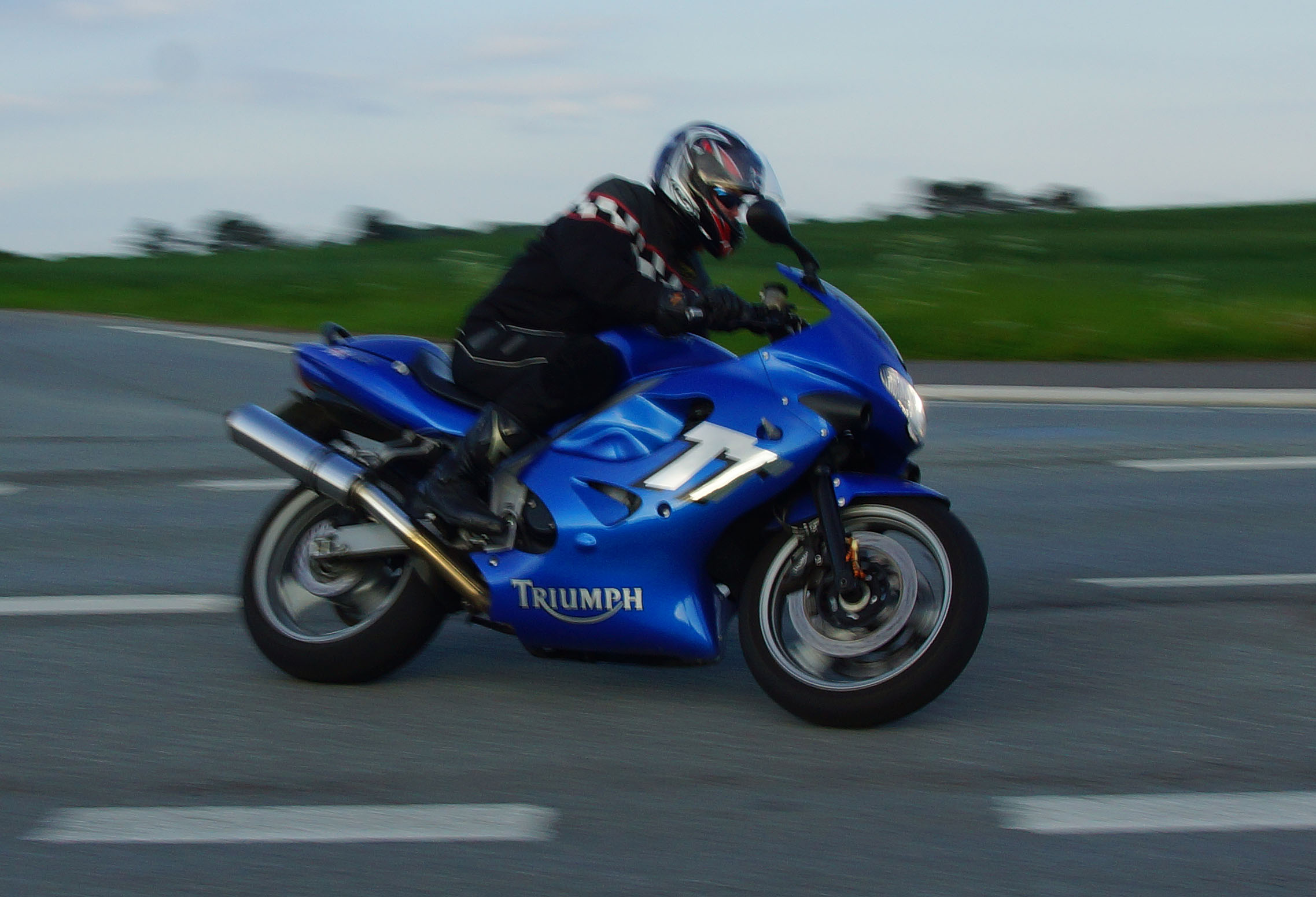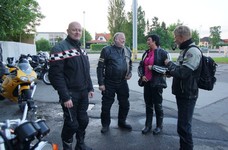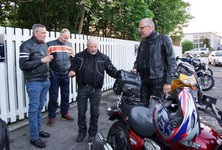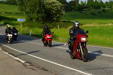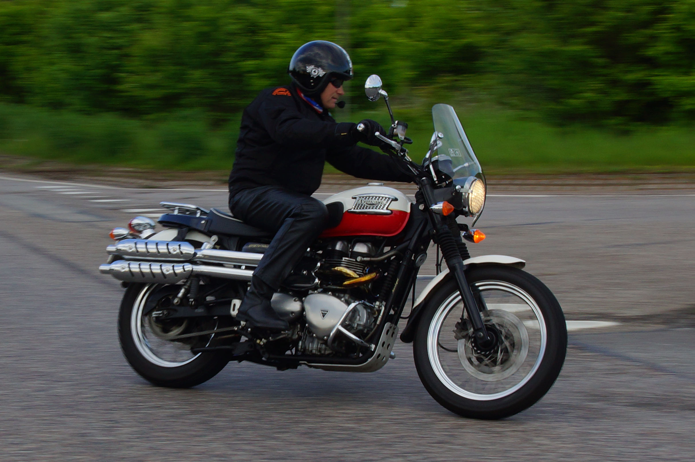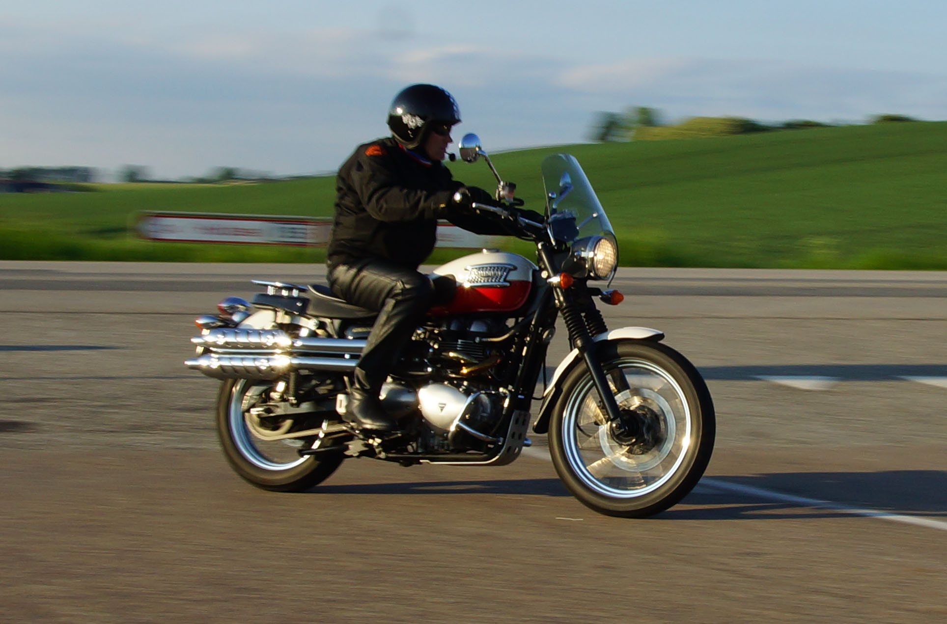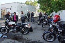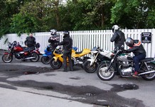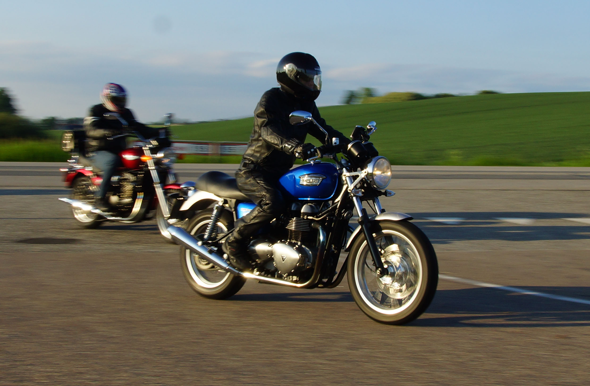 Richard på en rød-hvid Scrambler -07, Klaus på en hvid Street Triple -08,
