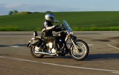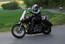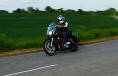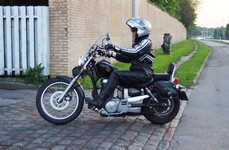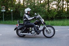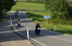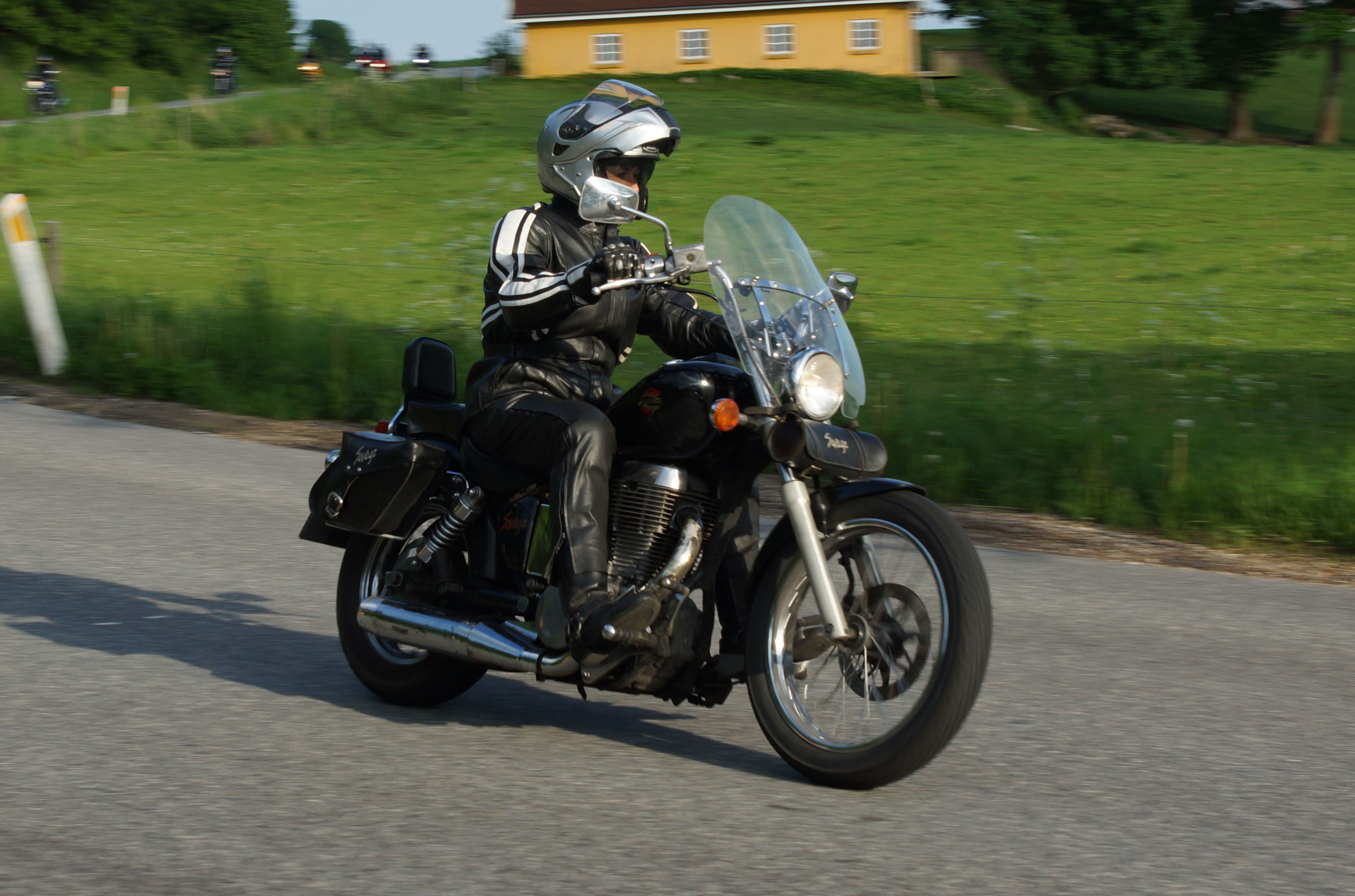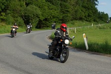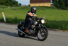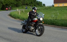 Tom på en Legend -00, Annette på en Suzuki Savage 650 -91, Steen på en blå Thruxton -06,
