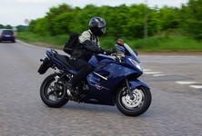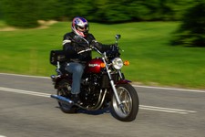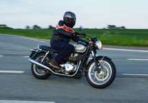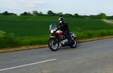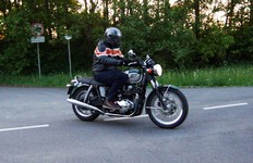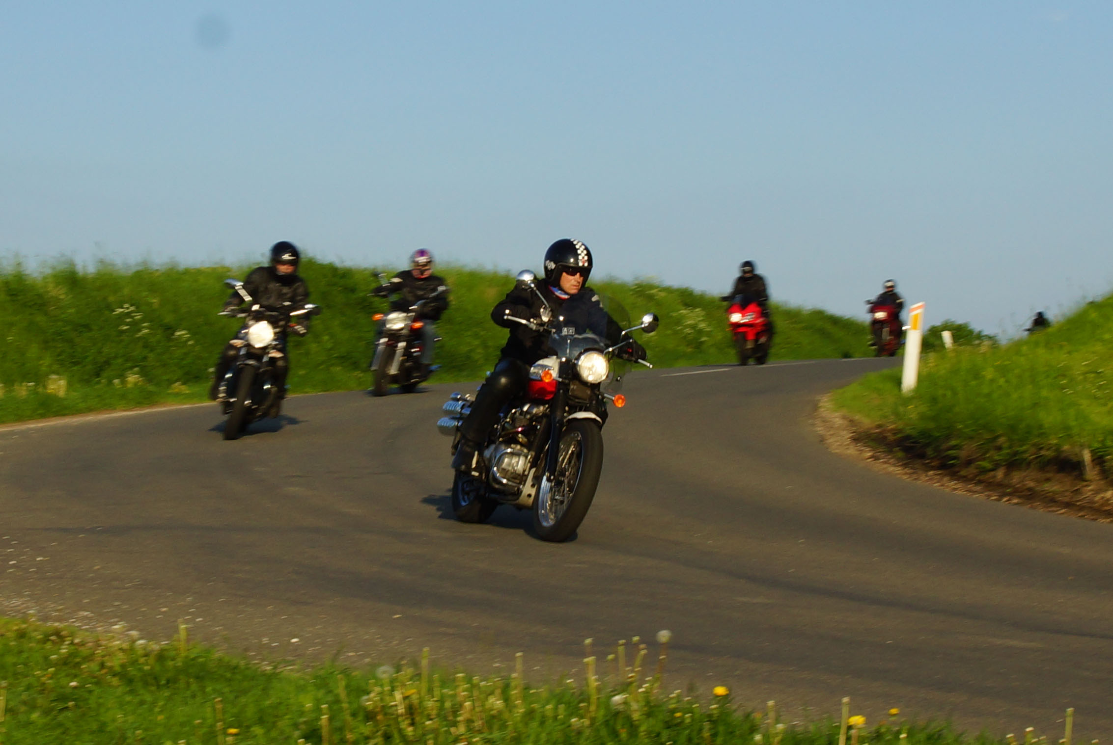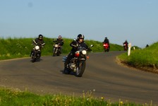 Mads-Peter på en grøn-sølv Bonneville -01, Jan på en blå TT600 -02, Carsten på