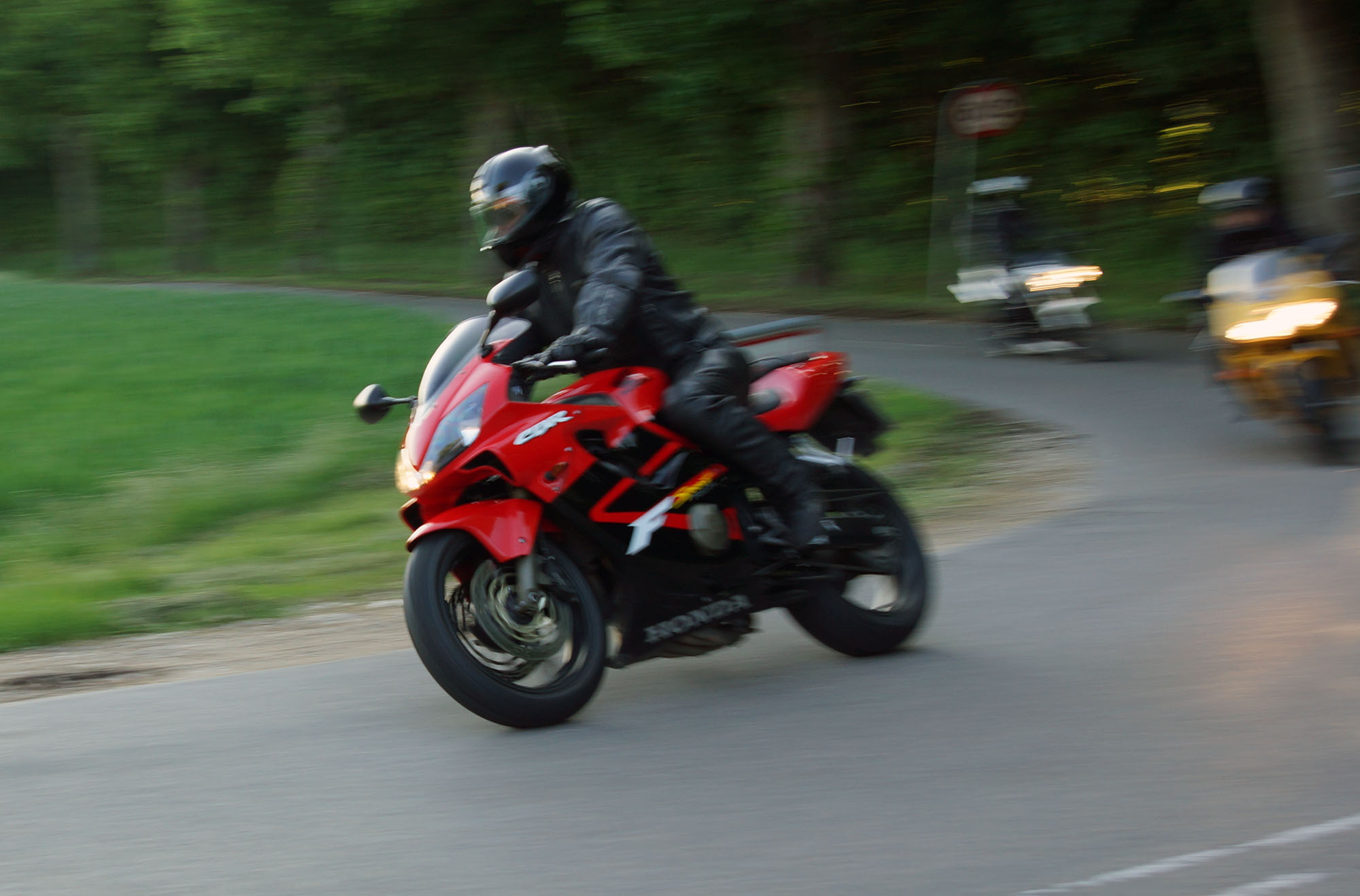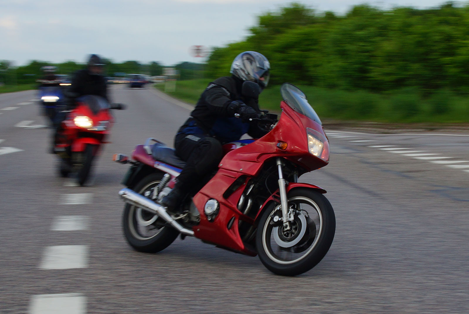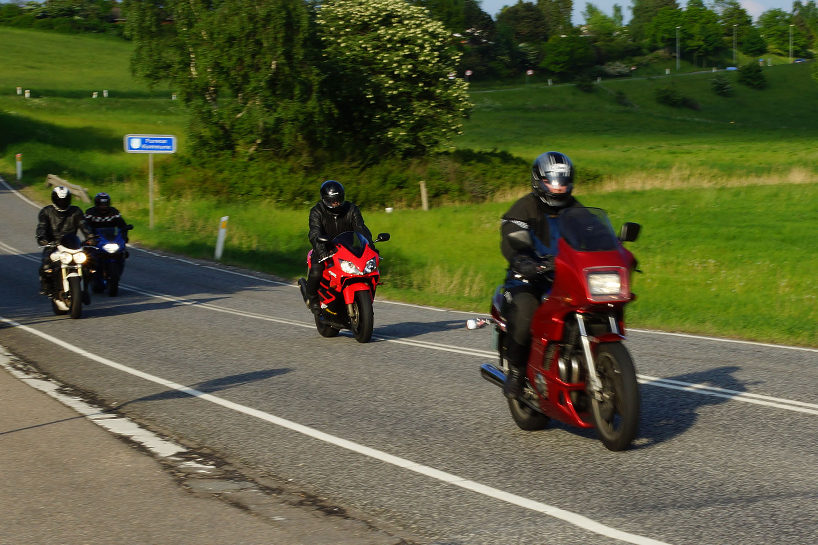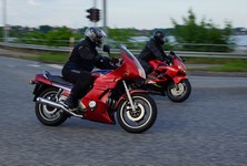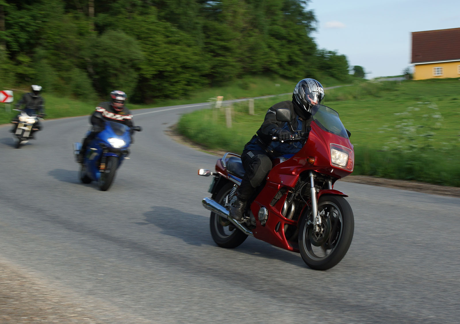 en rød Yamaha XJ900 -83, og Lars på en rød CBR600F -01. Lars er ny, velkommen Lars!
