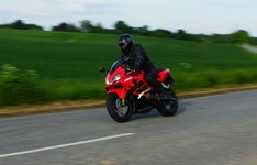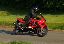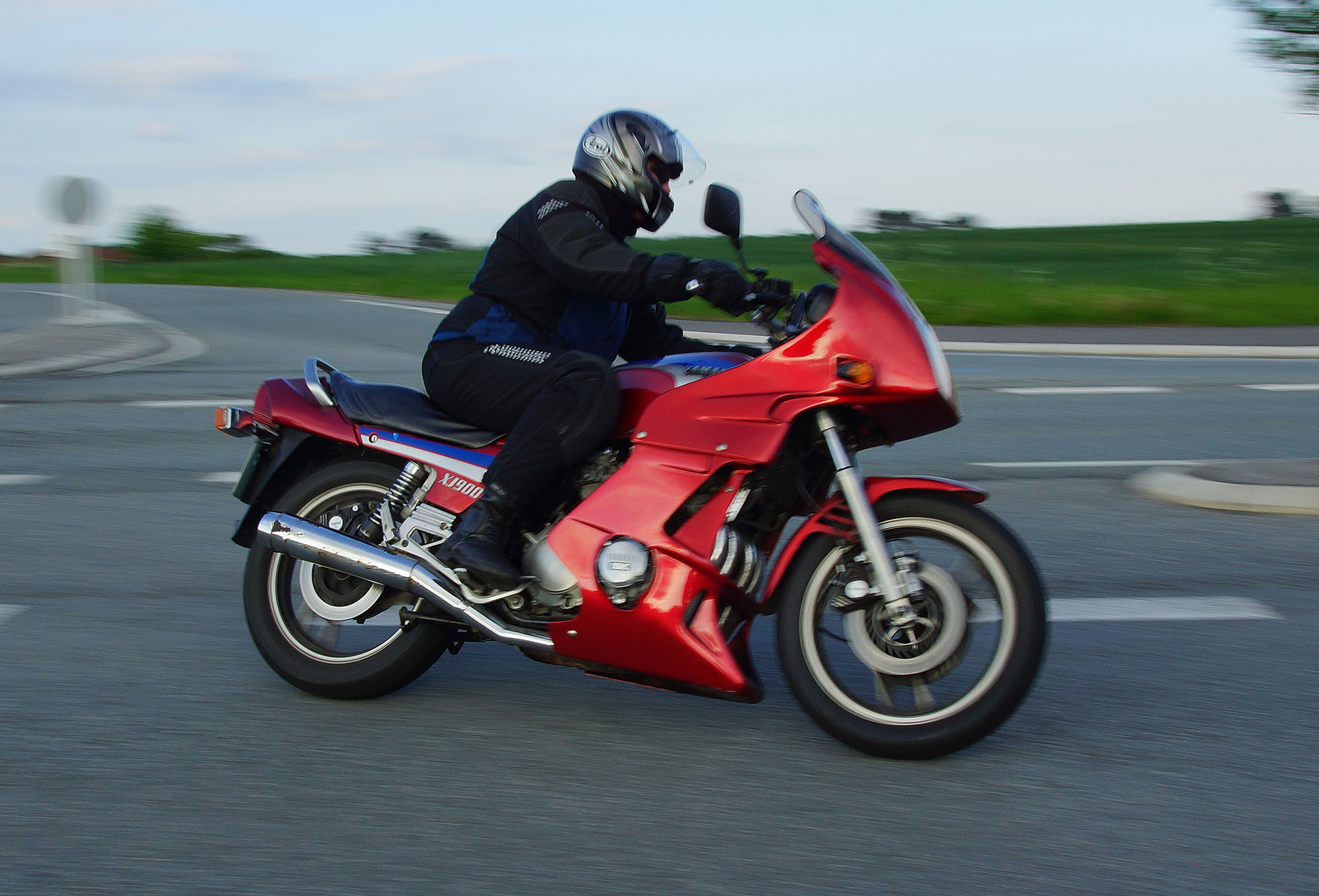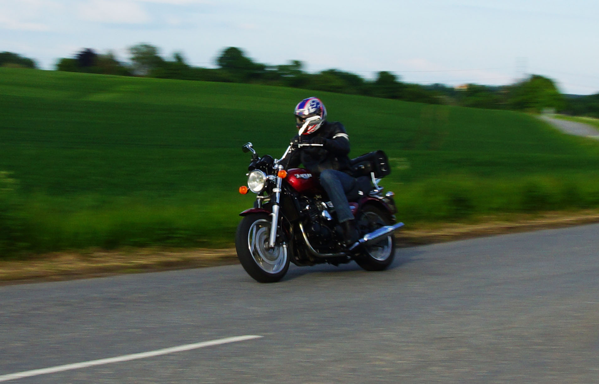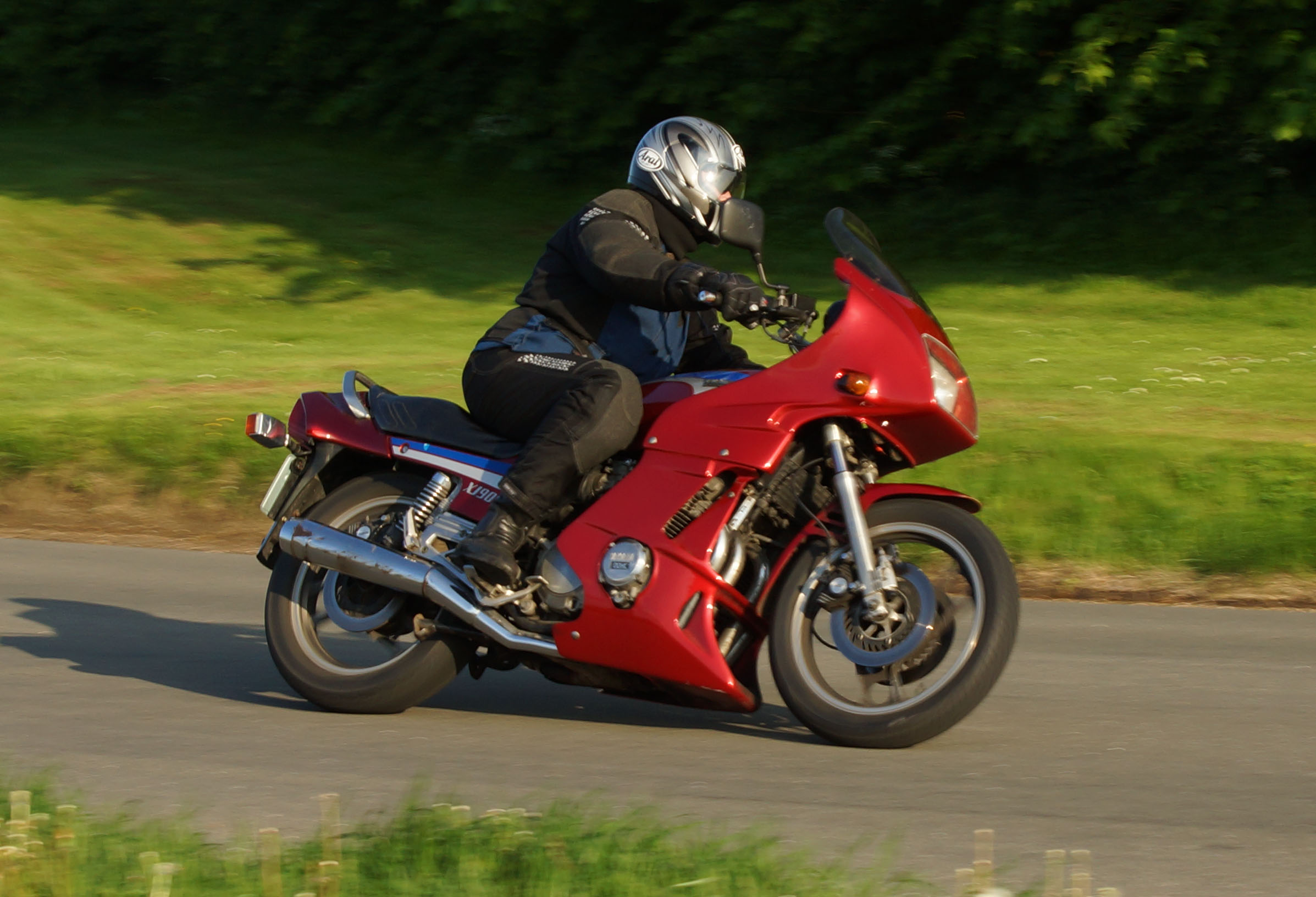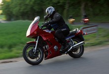 en rød Yamaha XJ900 -83, og Lars på en rød CBR600F -01. Lars er ny, velkommen Lars!