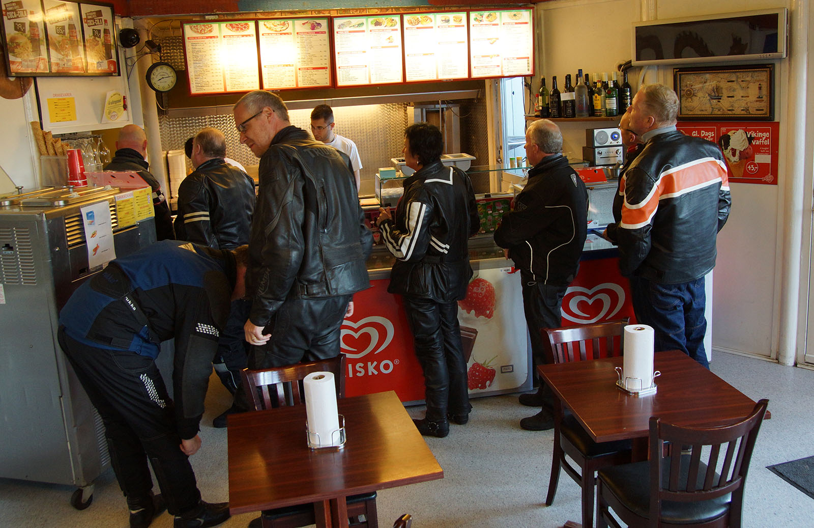 I Roskilde standsede ved Viking Grill lige før havnen. Vi trøngte til