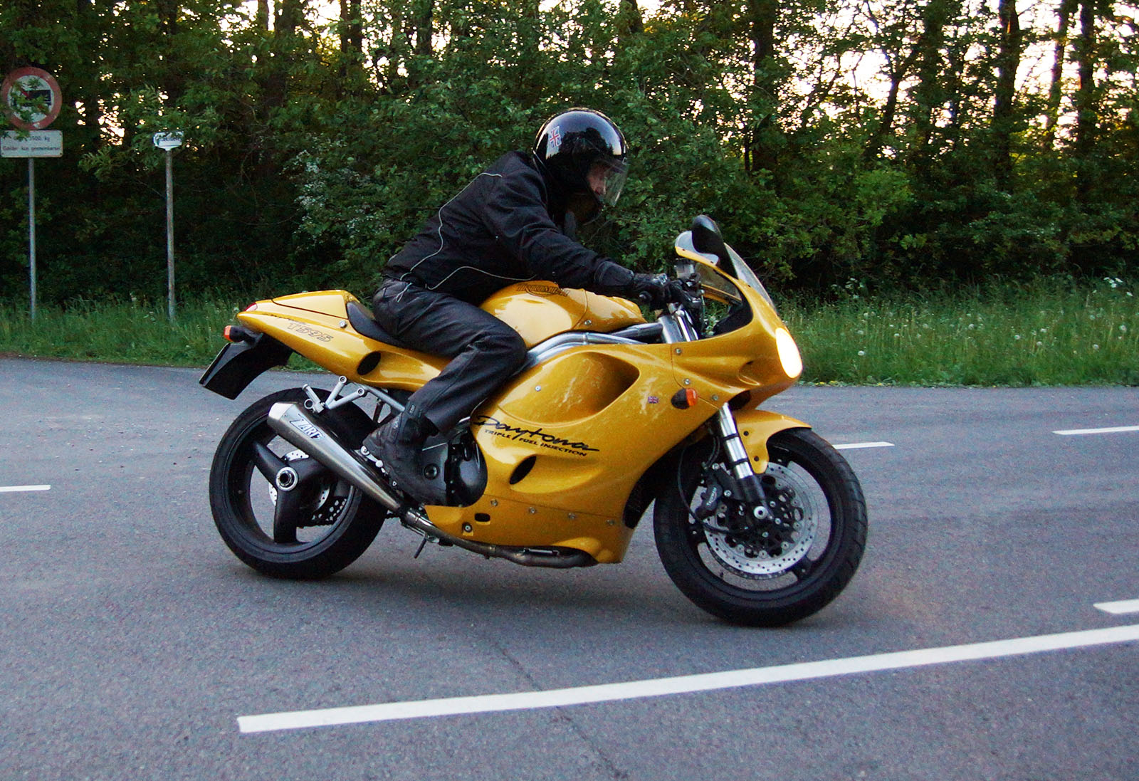 Så var der Karl på en gul Daytona 955 -98 og mig selv på en sort-gul Speed Triple -01.