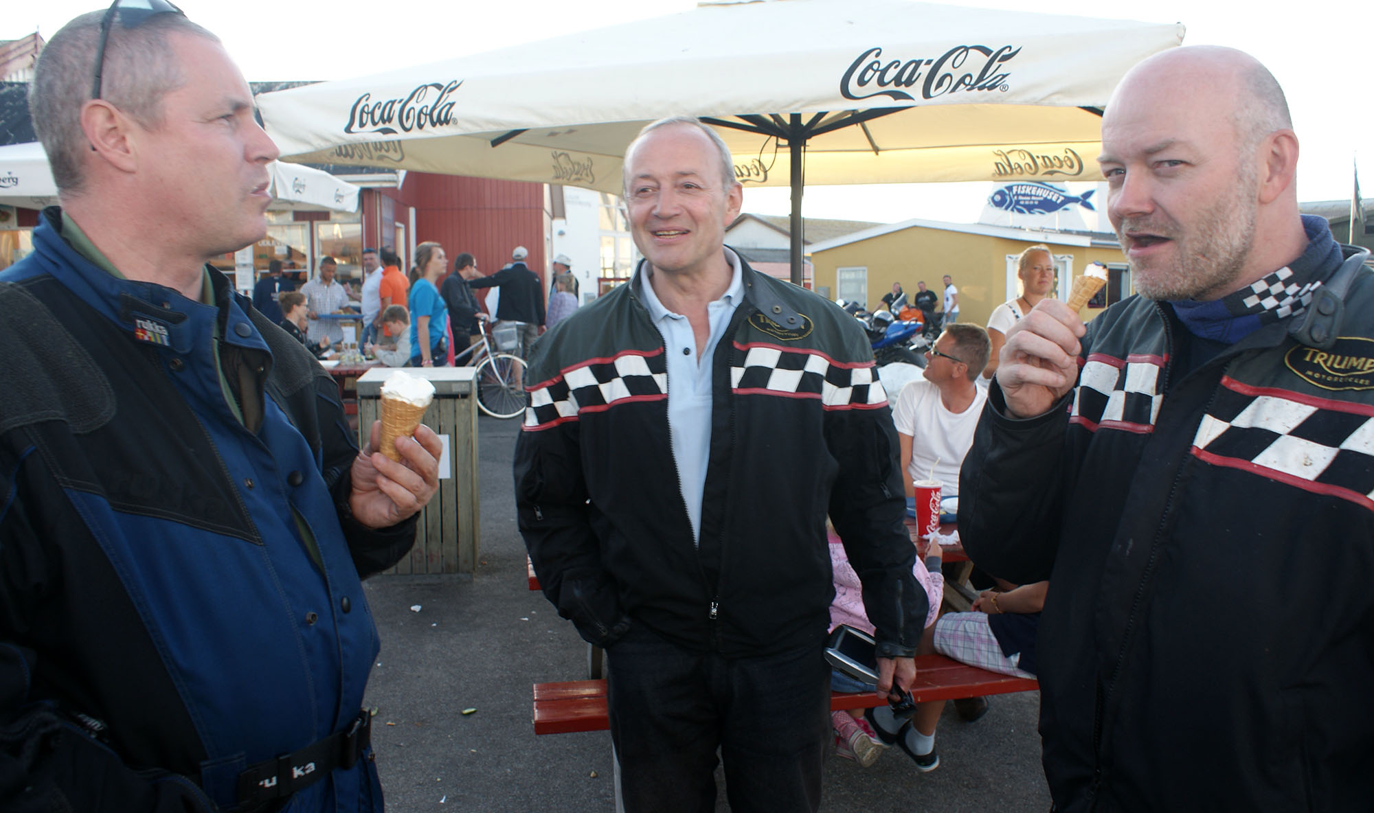 Ib på en sort Daytona 955-04, Jan på en blå TT60002,Carsten på en rød Yamaha XJ900-83,